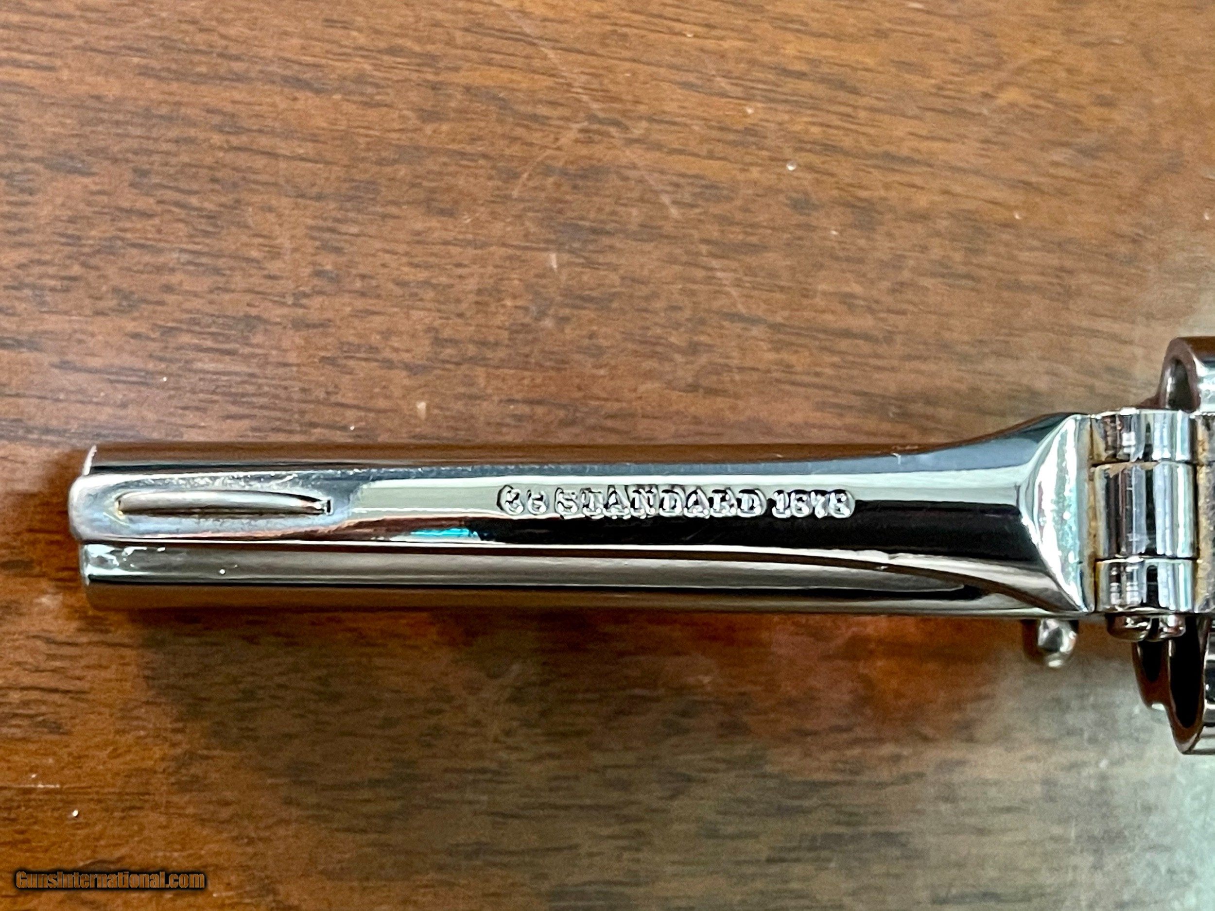 Description: RARE CONDITION, LOW PRODUCTION (12,000) Antique Marlin Model 1878 .38 S&W Double Action Top Break Revolver, manufactured from 1878 to 1887! Features include a 3 1/4" barrel with an EXCELLENT SHINY BORE, S/N: 2375, 5 Shot fluted cylinder, tip up action with spur trigger, 2 piece checkered S&W plastic grip, and original, near impossible to find, almost perfect factory nickel finish! This is the finest of these rare and highly collectible pistols we have ever seen! We are always buying guns and militaria. Contact us about your estate or if wanting to buy, sell, or trade. NO PAYPAL! PAYMENT: -Payment must be recieved within 10 days of purchase. 3% additional charge for credit card processing. SHIPPING & HANDLING: -$30 for handguns and $45 for long guns SHIPPING FIREARMS: -Firearms shipped to FFL dealer only -We will ship upon receipt of payment and signed legible copy of dealer's FFL via Fax, Mail or E-mail. SALES TAX: -Florida residents add 7.5% sales tax. PRODUCT: -We operate a gun shop which means that every item is for sale in our store and it may have already been sold when you contact us. NEW GUNS: -On new Firearms we may use file photos instead of the actual gun. CONTACT: -Contact me with any and all questions. We want you to be happy with your purchase. PHONE #: (904) 271-5270 STORE HOURS: Mon-Fri: 11p-6pm Sat: 9a-3p BUYER: -It is Buyer's responsibility to ensure that the weapon is LEGAL to own in your city/state. SOLD Handgun Caliber: .38 S&W (.38 Colt New Police, .38 Super Police) Manufacturer: Marlin Model: 1878 Condition: Very Good |