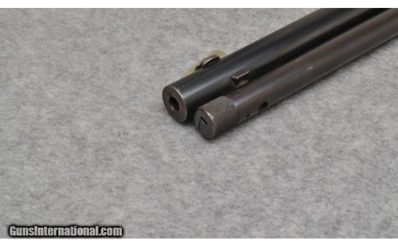 Description: Rare takedown model manufactured in 1906. SOLD Curio/Relic: Yes Manufacturer: S/N 347XXX Caliber Info: .25-20 Win. Metal Condition: Strong case color, bluing very good for age. Wood Condition: No cracks but with age appropriate handling marks. Bore Condition: Good rifling. Barrels: 24" with sights. Triggers: Single triger, lever action. Stock: Plain walnut, straight grip. Stock Dimensions: 13 1/4" LOP Fore End: Plain walnut. Butt Pad: Crescent metal. Weight: 7 lbs. Sights: Blade front with adjustable semi-buckhorn rear. Item Location: Columbus, OH |