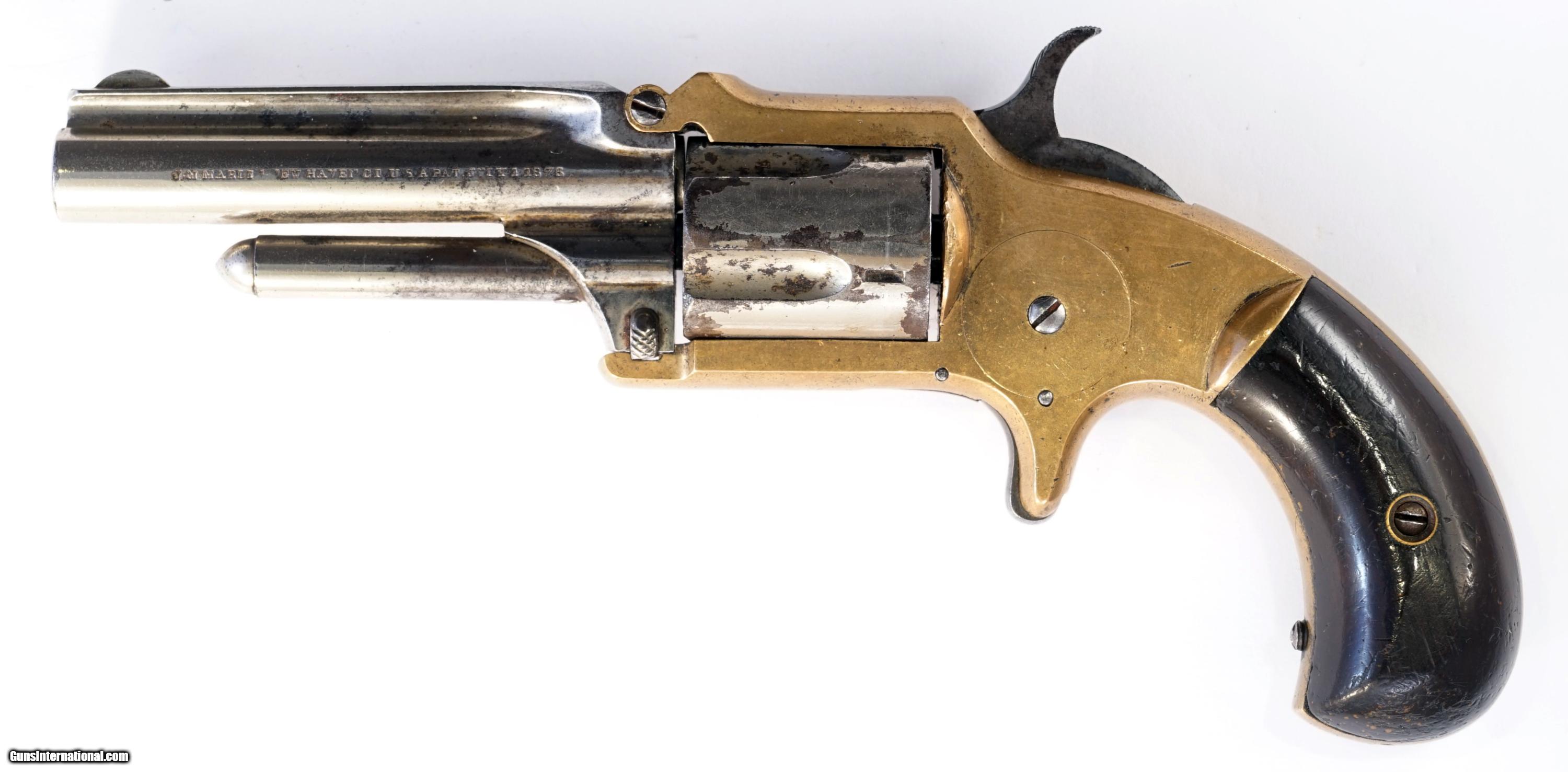 Description: Inv. 5724 Marlin Mdl. #32 Standard. Cal. 32rf. Ser. 78XX. For the Marlin collector this little S&W lookalike is really somewhat scarce. While it has seen years of use it still makes a descent appearance. The brass frame has gained a soft patina. The cylinder and barrel group still have about 70-75% of the original nickle plate. All parts match, the frame, cylinder and barrel group. The rosewood grips which are little unusual and have retained about 95% of the original lacquer with no splits or dings. The bore is really quite nice. The rifling is sharp and well pronounced with a slight hint of graying. A nice find for the price...... $325. *REDUCED* to $275 To purchase this firearm or if you want to request more information contact us at: Email ckgunsymail Phone 201-512-0002 Cell 201-575-6838 FAX 201-215-4759 We accept most major credit cards. Prices shown are Discounted 3% for Cash or Check. The buyer must be familiar with all the laws governing the purchase and the ownership of firearms in their own city and state. The Yankee Armorer, Inc is not responsible for any failure to comply with or observe these laws. The Yankee Armorer, Inc will only ship after full payment and receipt of all required documents. Shipping: Add $35.00 for handguns, $45.00 for long guns. New Jersey buyers are subject to a 7% sales tax. The Yankee Armorer, Inc offers a 3 day inspection period with full refund upon return of intact firearm and in the original condition. The Yankee Armorer, Inc offers a no interest lay away program - 25% down; 25% in 30 days; 25% in 60 days; and full payment in 90 days. Any violation of this policy is subject to restocking and forfeiture of all payments. Any variation from this policy must be agreed to in advance. Unshipped Cancelled sales are subject to a 20% restocking fee. Be advised that all firearms sold by The Yankee Armorer, Inc. or the Gun Exchange, LLC (SELLER) are sold as collector’s items. They have not been fired or tested for safety and must be examined by a license gunsmith prior to use. By purchasing any item from the (SELLER), you are agreeing to hold the (SELLER) free from any damages or lawsuits of any nature. Any item left for transfer or storage will be charged to $25.00 per month, per item from the day of its receipt. Any variation from this policy must be agreed to in advance. Store hours 10:00 am to 5:00 pm Tuesday -Saturday. It's always best to call for appointment. Store 201-512-0002, cell 201-575-6838. SOLD Curio/Relic: Yes Antique: Yes Manufacturer: Marlin Model: 32 Serial Number: 78XX Caliber Info: .32 rf |