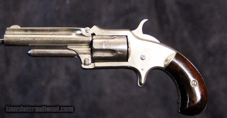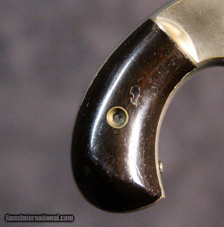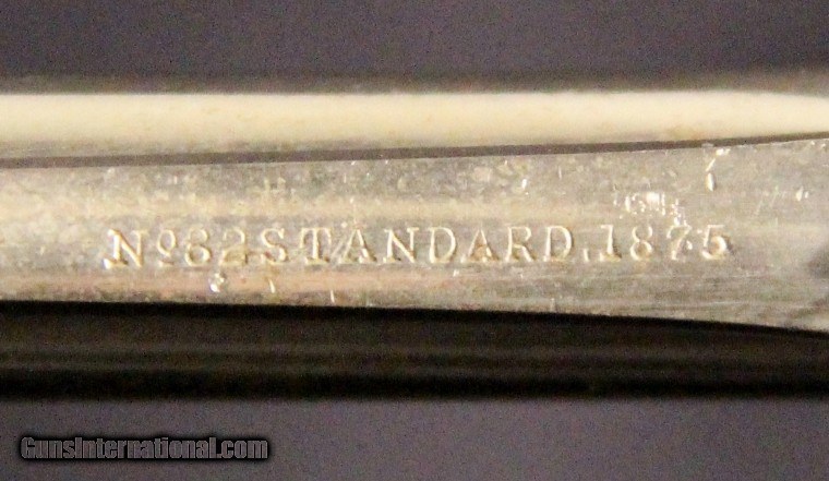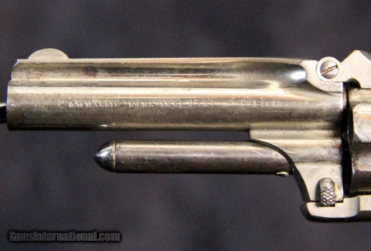 Description: .32rf, #5469, 3 inch barrel, nickel finish, rosewood grips, circa 1876. Condition: excellent bore, 95% nickel overall, excellent grip, excellent mechanically, excellent marks. SOLD Antique: Yes |