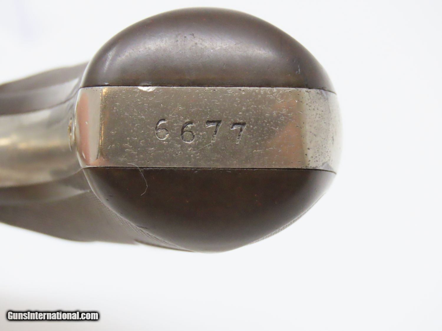 Description: NICKEL & GOLD Antique J.M. MARLIN “38 Standard 1878” SPUR TRIGGER Revolver Early 1880s Sidearm from JM Marlin! Here we present an antique Inscribed Marlin .38 Standard 1878 Spur Trigger Pocket Revolver, made circa 1880 in New Haven, Connecticut with a production run from 1878 through 1887 with a total of 9,000 being manufactured. This 1878 model is different than its Marlin predecessors. It features a steel frame and flat bottom butt, with hard rubber monogram grips with “JMM” imprints on the tops. It is chambered for a .38 centerfire cartridge. The revolver bears much resemblance to Smith & Wesson’s pioneer top-hinge cartridge revolvers. During a time when many, if not most people carried a firearm, these were small enough to conceal and carry, yet provide some level of protection or peace of mind, even when the town did not allow firearms within its limits. The overall condition is Very Fine. Fantastic nickel finish with gold accents on the hammer, cylinder and the extractor rod under the barrel as well as the small parts. The action is excellent. Great bore. The trademarked “JMM” grips are in great shape. A gorgeous piece from Marlin! Own the original! This is a legitimate antique and not a reproduction. Barrel is 3-1/4 inches. Caliber: .38 S&W Overall condition as seen in photos. Very Fast. Very Safe. FREE SHIPPING WORLDWIDE. Delivered directly to your door by express mail! Guaranteed AUTHENTIC & Includes CERTIFICATE OF AUTHENTICITY. ancestryguns $1195 #20061 SOLD Antique: Yes |