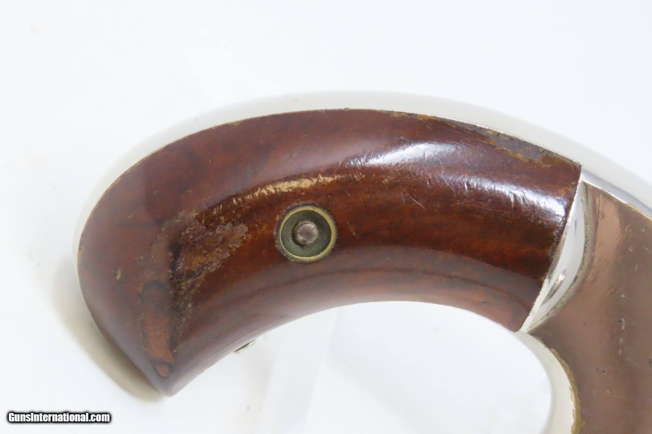 Description: SCARCE Antique MARLIN FIREARMS No. 32 Standard 1875 Spur Trigger REVOLVER WILD WEST Self Defense Concealed Carry! Here we present an antique Marlin No. .32 Standard 1875 Spur Trigger Pocket Revolver, made circa 1880 in New Haven, Connecticut with a production run from 1875 through 1887. This variant features a round-ribbed barrel and short cylinder flutes with only about 19,500 of these revolvers produced. The revolver bears much resemblance to Smith & Wesson’s pioneer top-hinge cartridge revolvers. During a time when many, if not most people carried a firearm, these affordable little revolvers were small enough to conceal and carry, yet provide some level of protection or peace of mind, even when the town did not allow firearms within its limits. The overall condition is very fine. Original nickel finish. The action is excellent. The bore is clean with sharp rifling. The grips are in fine shape. Own the original! This is a legitimate antique and not a reproduction. Barrel is 3 inches. Caliber: .32 Rimfire Overall condition as seen in photos. Very Fast. Very Safe. FREE SHIPPING WORLDWIDE. Delivered directly to your door by express mail! Guaranteed AUTHENTIC & Includes CERTIFICATE OF AUTHENTICITY. ancestryguns $1200 #220405 SOLD Antique: Yes |