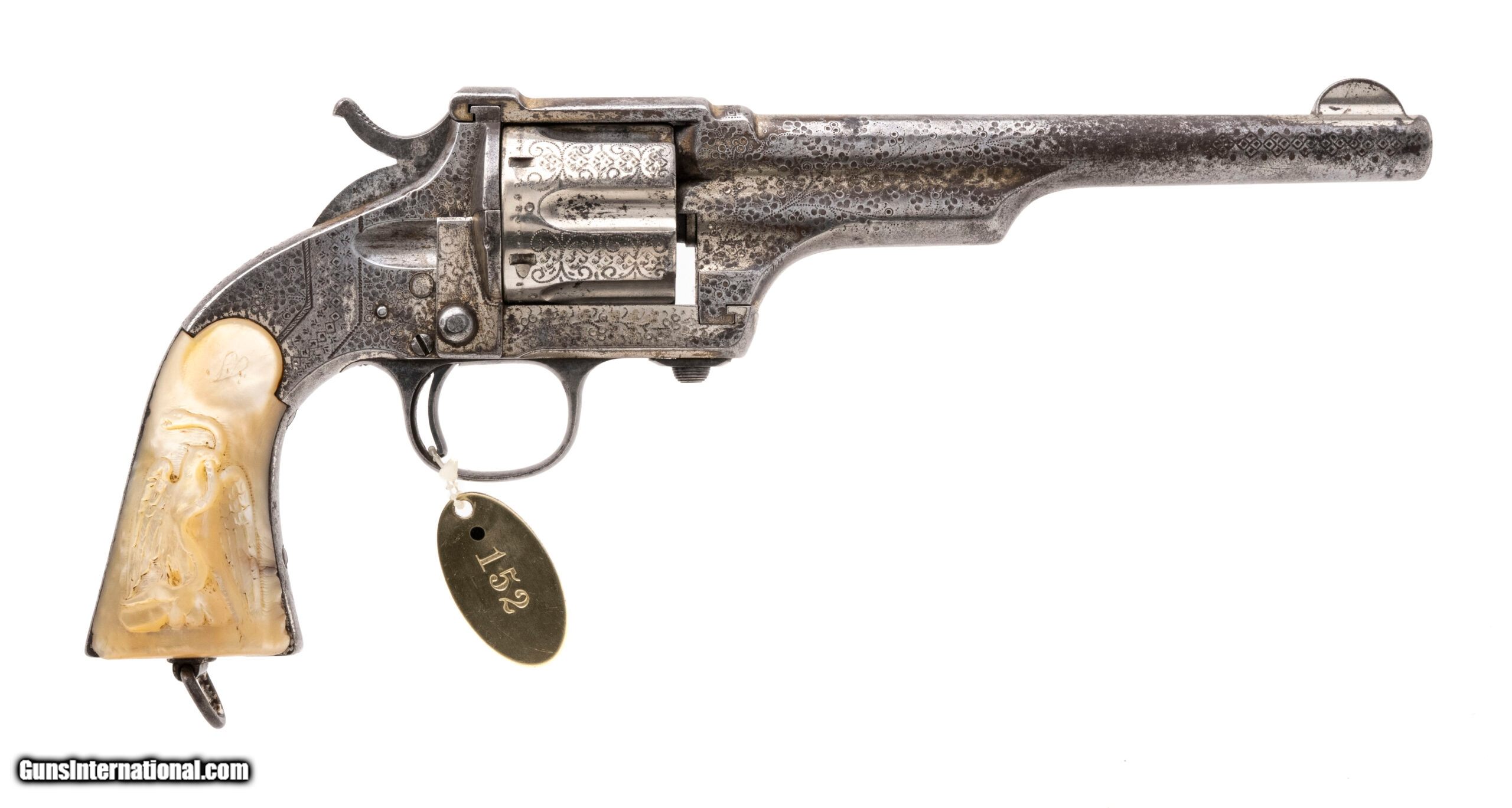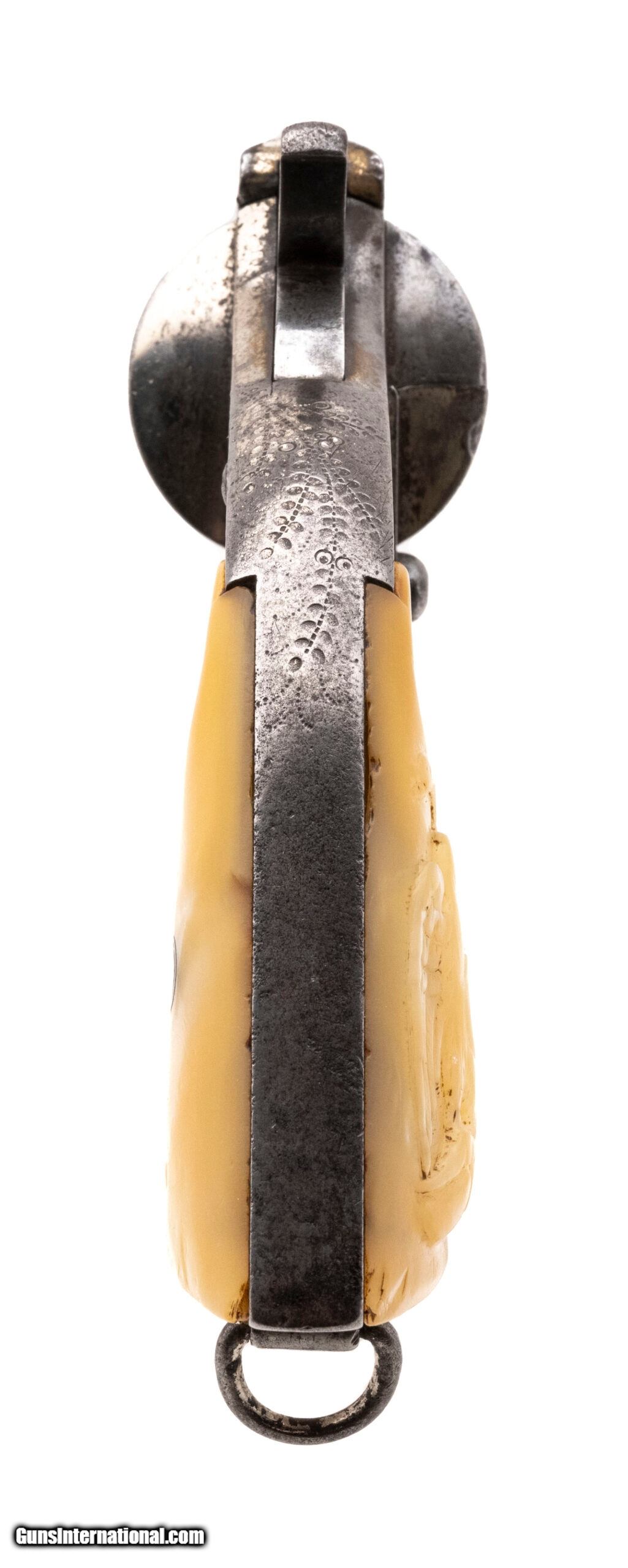 Description: "Serial No. 15917, circa 1876-1880’s, .44-40, 7" round barrel. 35% nickel finish remains present with some areas thinning to a brown patina. Factory markings on barrel and frame remain sharp. A deer scene has been engraved on the side plate. Mother of Pearl have been carved with Mexican Eagle. Light chips are noted along the edges, overall, very good condition. Action indexes correctly with a tight lock up. Consignment Antique: Yes Price: $7,000.00 Contact Seller |