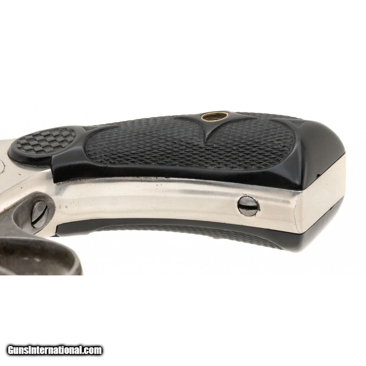 Description: " SN: 18655. Manufactured circa 1880, .32 S&W with 3"" barrel. Bore is excellent. Antique nickel double action revolver with folding hammer, 5rd cylinder and checkered hard rubber grips. Overall excellent condition. (Consignment) SOLD Antique: Yes |