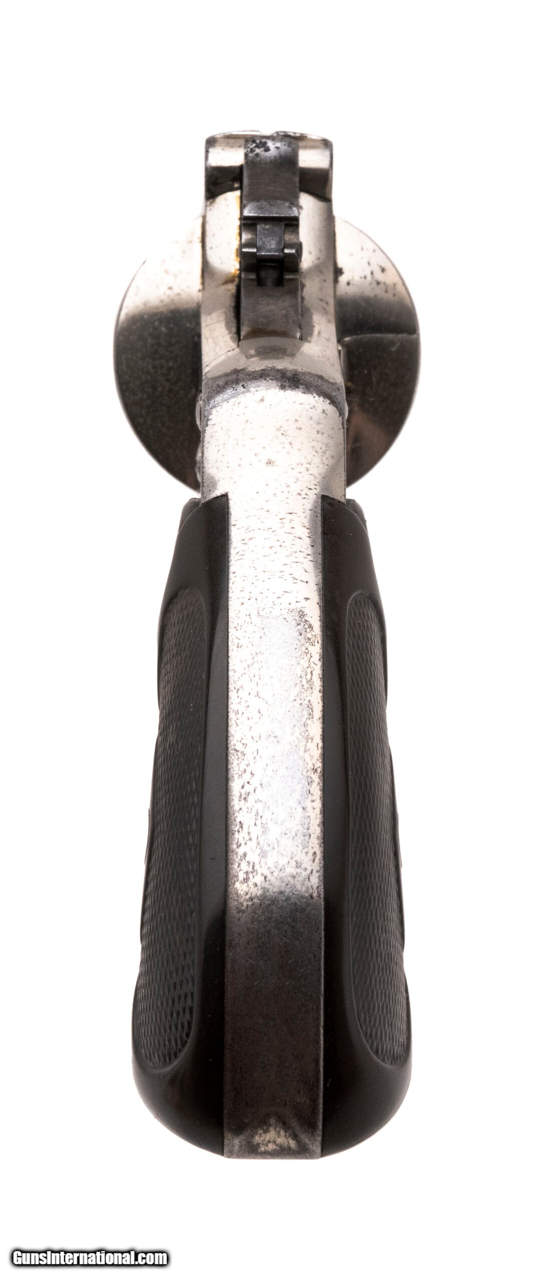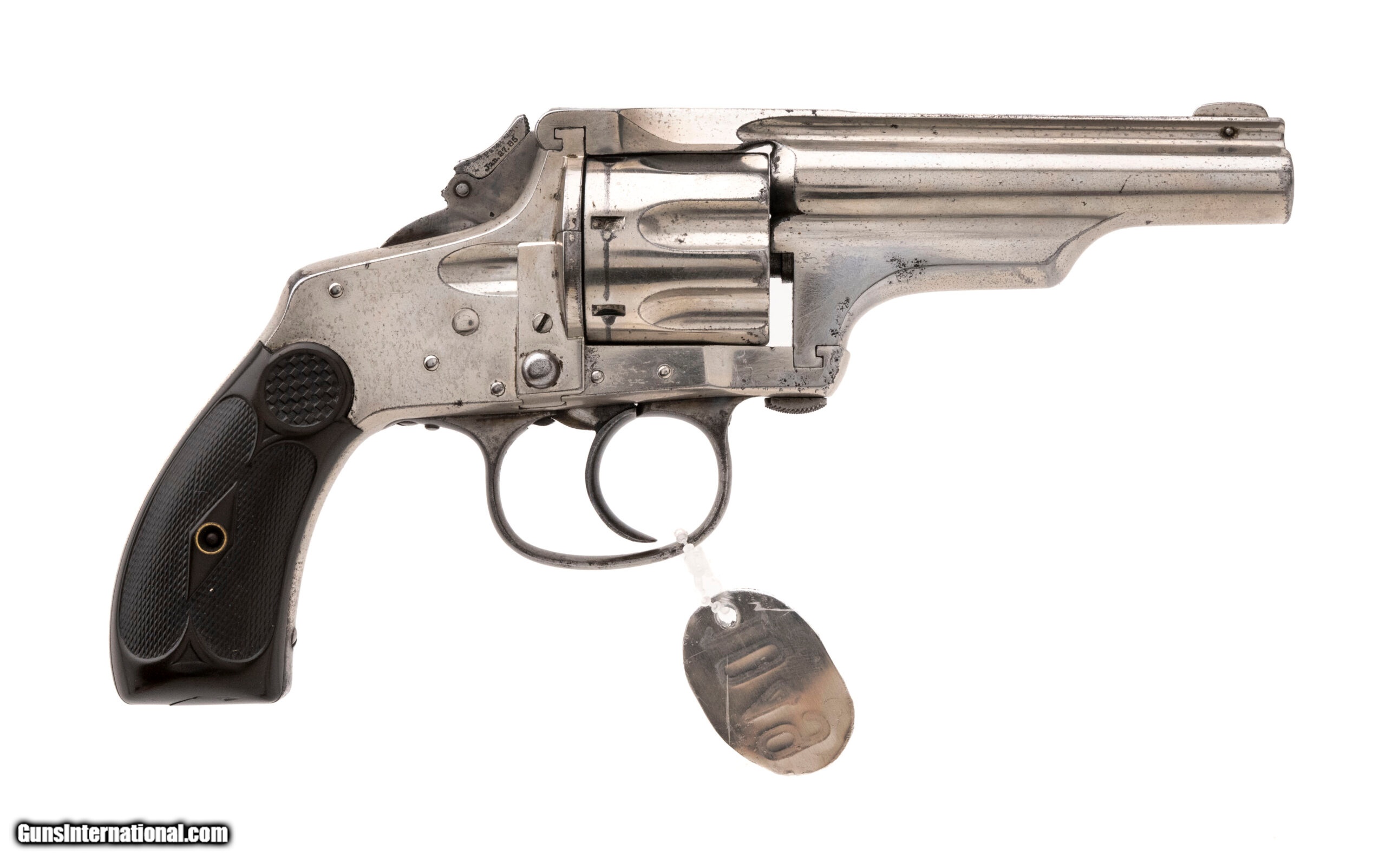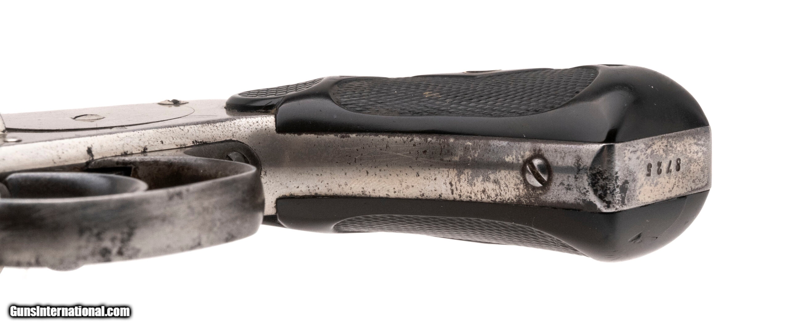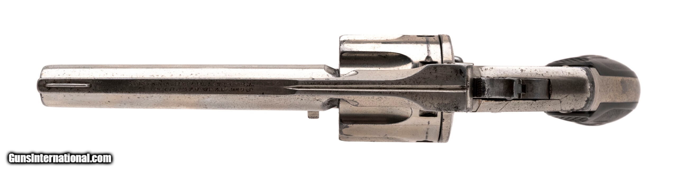 Description: "Serial No. 8725, circa 1880’s, .32 long, 3 ½" round ribbed barrel. 95% nickel finish remains with traces of case colors noted on the folding hammer. Two-piece checkered rubber grips are in excellent condition. Action indexes correctly with a tight lock up. Consignment SOLD Antique: Yes |