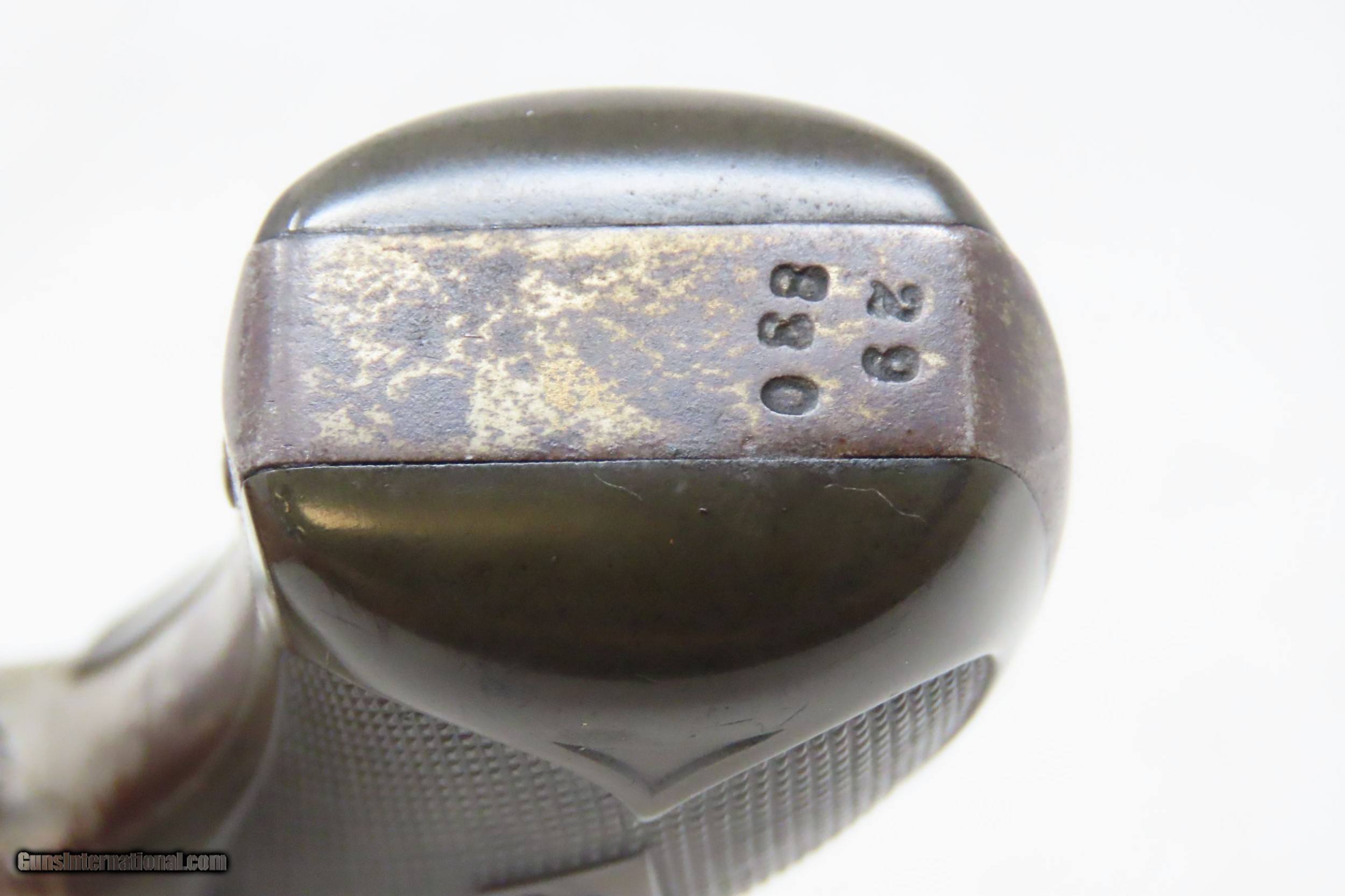 Description: Antique MERWIN, HULBERT & Co. Medium Frame .38 Cal. DOUBLE ACTION Revolver VERY NICE Revolver From the 1880s w/FOLDING HAMMER Here we present an antique Medium Frame Merwin, Hulbert & Company Double Action Revolver, made circa the 1880s exclusively by Hopkins & Allen in Norwich, Connecticut. A plus feature of this revolver was the method of ejection. Loading was achieved by placing the hammer at half-cock and sliding down the loading gate to single feed cartridges. If one wanted to unload the gun, they could simply push the latch back on the bottom of the gun, twist the barrel and cylinder assembly and pull forward. Only the empty brass would come out as the space created was shorter than a loaded cartridge, enabling the shooter to top off his gun and keep rounds available. An ingenious method was designed to achieve this that included a machined cut on the cylinder axis pin and a ledge on the breech face that kept the cartridge rims underneath. This system was also advantageous for forcefully removing stuck cartridges, providing lots of mechanical advantage. These revolvers are considered today to be some of the best made of the late 19th Century and the Wild West, even better in some minds than similar Colts and Smith & Wessons. These pistols certainly tended to have different, very well-thought features than their competition, and they were extremely well-made. Interestingly, Bruno Kirby carried a Merwin, Hulbert & Co. revolver during his role in “The Godfather Part II” back in 1974. The overall condition is fine. Original finish. Excellent action. The bore is in good shape for its age. Both grips are in good shape with average handling. Numbers match. Clear and legible markings. Own the original! This is a legitimate antique and not a reproduction. Barrel is 3-1/2 inches. Caliber: .38 S&W Overall condition as seen in photos. Very Fast. Very Safe. FREE SHIPPING WORLDWIDE. Delivered directly to your door by express mail! Guaranteed AUTHENTIC & Includes CERTIFICATE OF AUTHENTICITY. ancestryguns $1700 #220252 SOLD Antique: Yes |