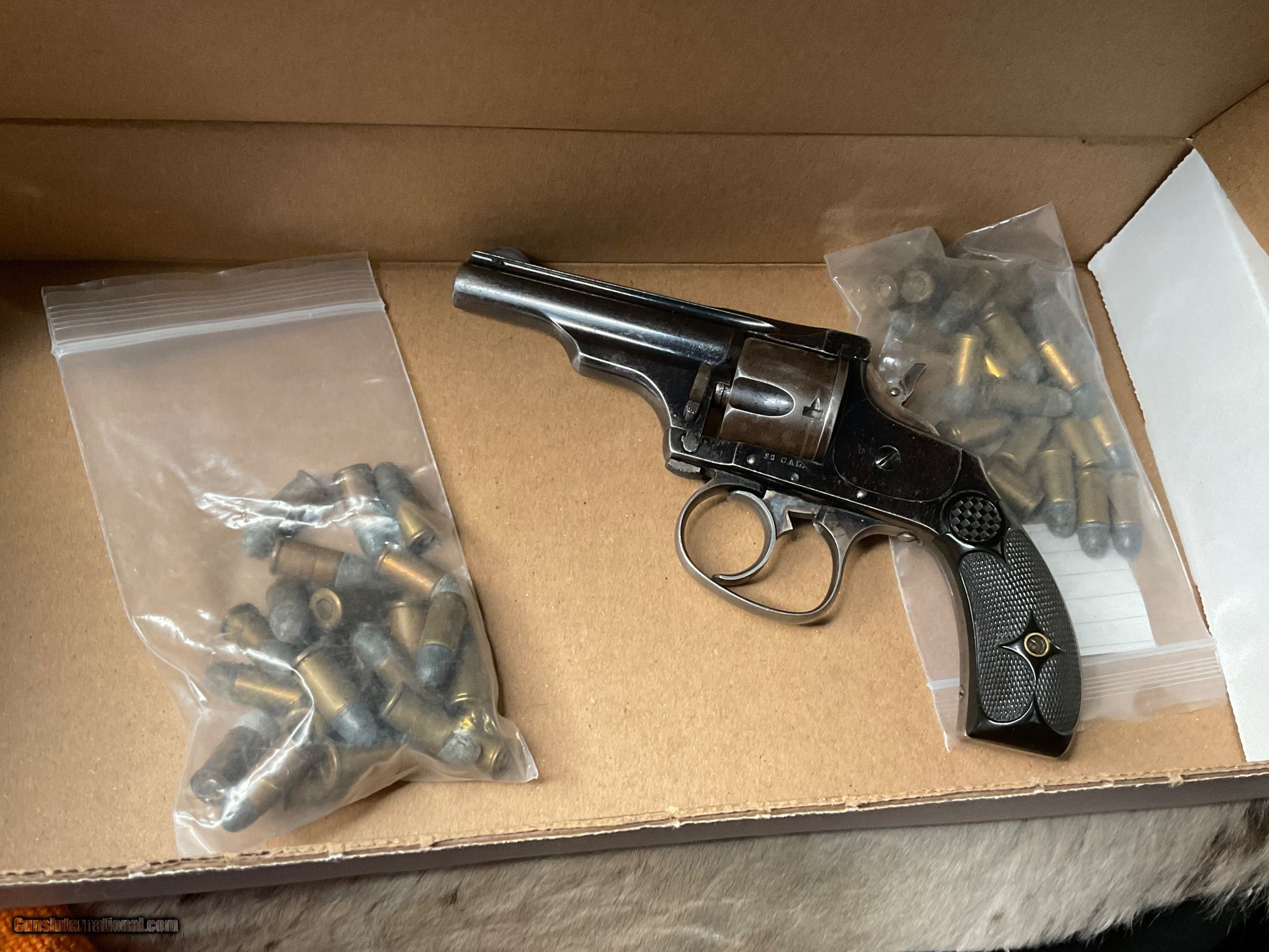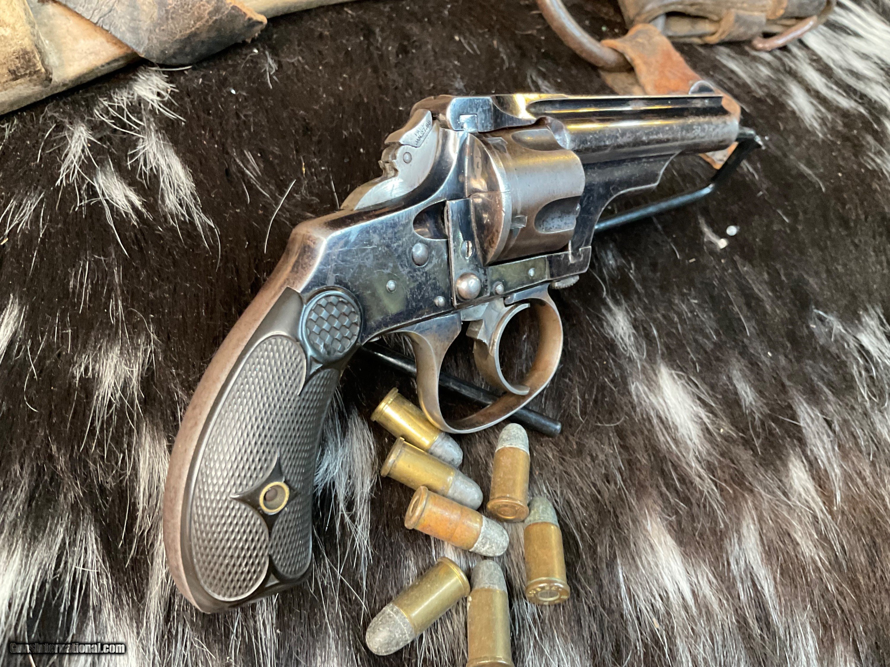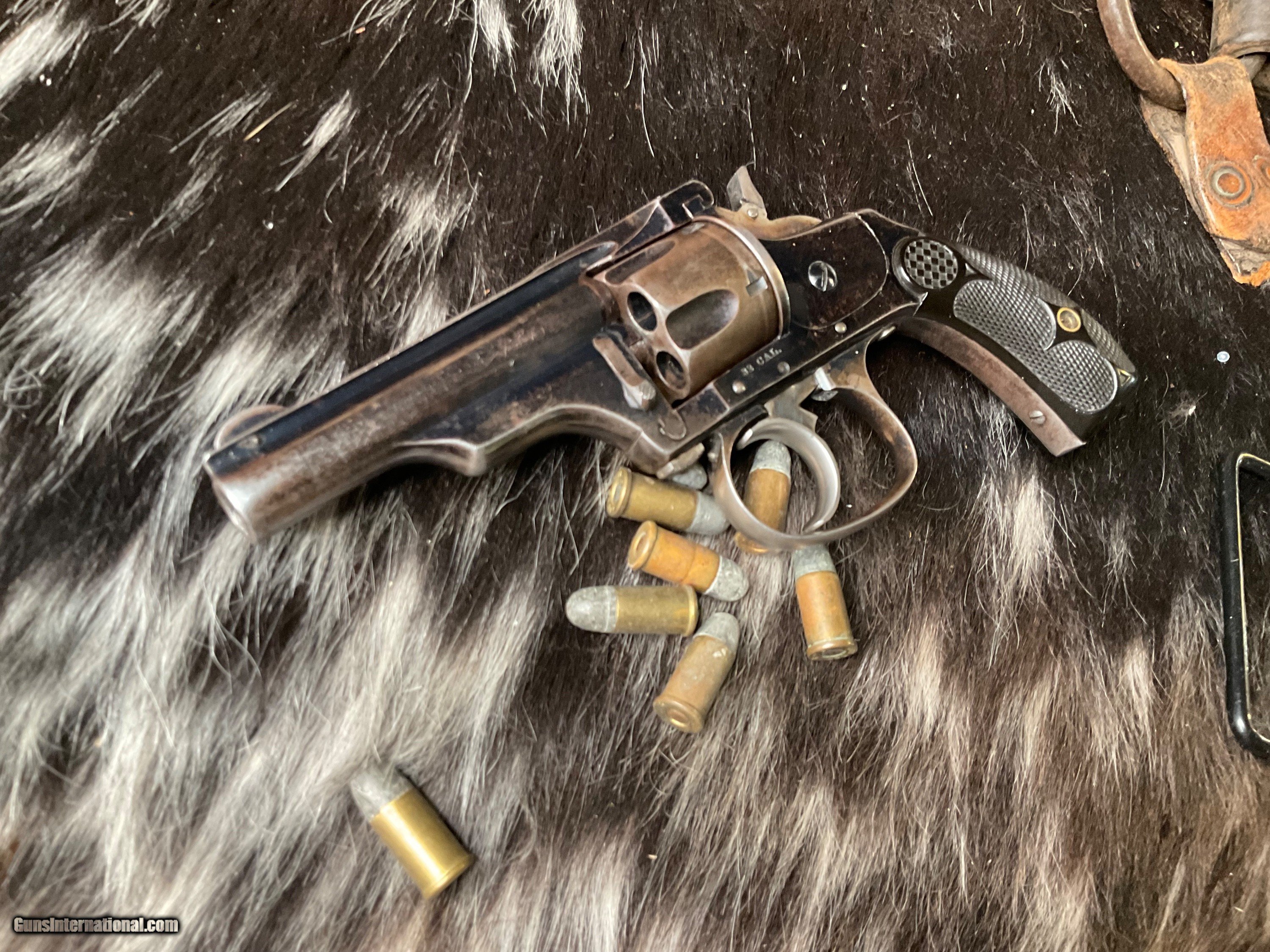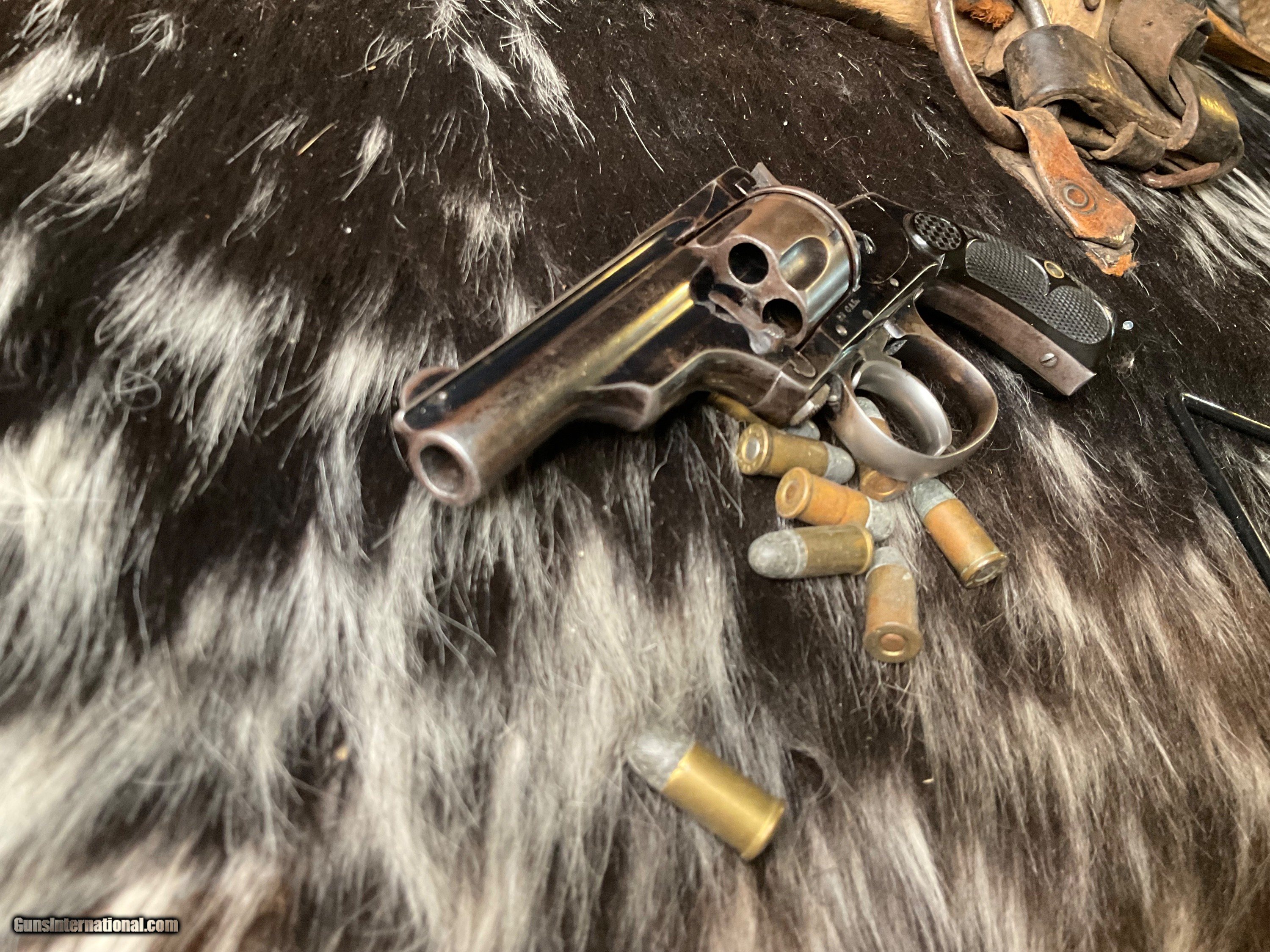 Description: Antique Merwin & Hulbert .32 pocket revolver with folding hammer! A key innovation was a rotating barrel design which allowed the user to rotate the barrel 90 degrees in order to pull the barrel and cylinder forward to remove the fired cartridge cases. During the twisting motion, the empty case could be extracted. Any intact cartridge would remain in the chamber due to the additional length of the bullet. The tight machining tolerances would create a vacuum when the barrel and cylinder were pulled forward, literally causing the assembly to 'snap back' closed when released. In addition to this unique case extraction system, pressing an additional lever control when the frame was 'open' for extraction allowed the owner to completely remove the barrel. Note: early models also required pushing out a barrel wedge similar in function to Colt percussion revolvers. This not only facilitated cleaning, but allowed the owner to swap barrels, allowing for a shorter 'concealed carry' and longer 'field' weapon in one. The combination of extraction and barrel removal required very precise manufacturing tolerances—incredible considering the tools of the day. This revolver is in .32 Black powder rimfire cartridge, approx twenty five live cartridges go with the revolver. Action functions as intended and remains in tight ready to shoot condition. Original Blued finish remains at 50 %. A rare pocket model in excellent working condition with ammo to star in your Mouse gun lineup! Antique firearm may be shipped direct with no ATF transfer needed in most states where allowed. God Bless America from a proud American, and a Viet Nam Vet , thankful for our freedoms.. paid for by the Blood ,Sweat and Tears of our brave men and women in uniform. Ten Below Firearms is a Veteran owned and operated business. We specialize in out of production models of high quality firearms. We love to ship! We ship to all states where legal, just give us a call! Handguns normally ship for $35 and Long guns for $50 and up for extra length long guns. That's 2-3 day USPS Priority shipping, Delivery conformation and with tracking number. Optional Postal insurance is additional $1.85 per $100 and highly recommended. We are OPEN BY APPOINTMENT ONLY FOR IN PERSON VISITS, We trade, sometimes. All payments sent via USPS Priority mail must be received within FIVE DAYS of date of purchase or item will be relisted for sale. **PROPS MAY BE USED FOR PHOTOS, PROPS ARE NOT INCLUDED WITH THE SALE OF THIS FIREARM** Thank you! Layaway:If needed we offer a 60 day layaway program. We offer FREE 60-day layaway. Buyer must pay at least 1/3 down, 1/3 Due in thirty days and the final balance due in sixty days. On all uncompleted layaways, all payments made will be non-refundable. The 60 days begins the day the buyer commits to buying the gun. 90 day layaway is available with 1/2 down, via phone. All layaway sales are final. Layaway is not available on negotiated prices. SOLD Antique: Yes Handgun Caliber: .32 Rimfire Manufacturer: Merwin & Hulbert Model: Pocket Model .32 Serial Number: 12912 Barrel Length: 3.5 inch Chambers: 5 Condition: Very Good Metal Condition: Very Good Bore Condition: Very Good Barrel Type: Solid Rib Action: DA Triggers: DA Finish: Blued Sights: Fixed Manufacture Date: 1886 Extras: Ammo Black Powder Case: Case black plastic Item Location: Mn |