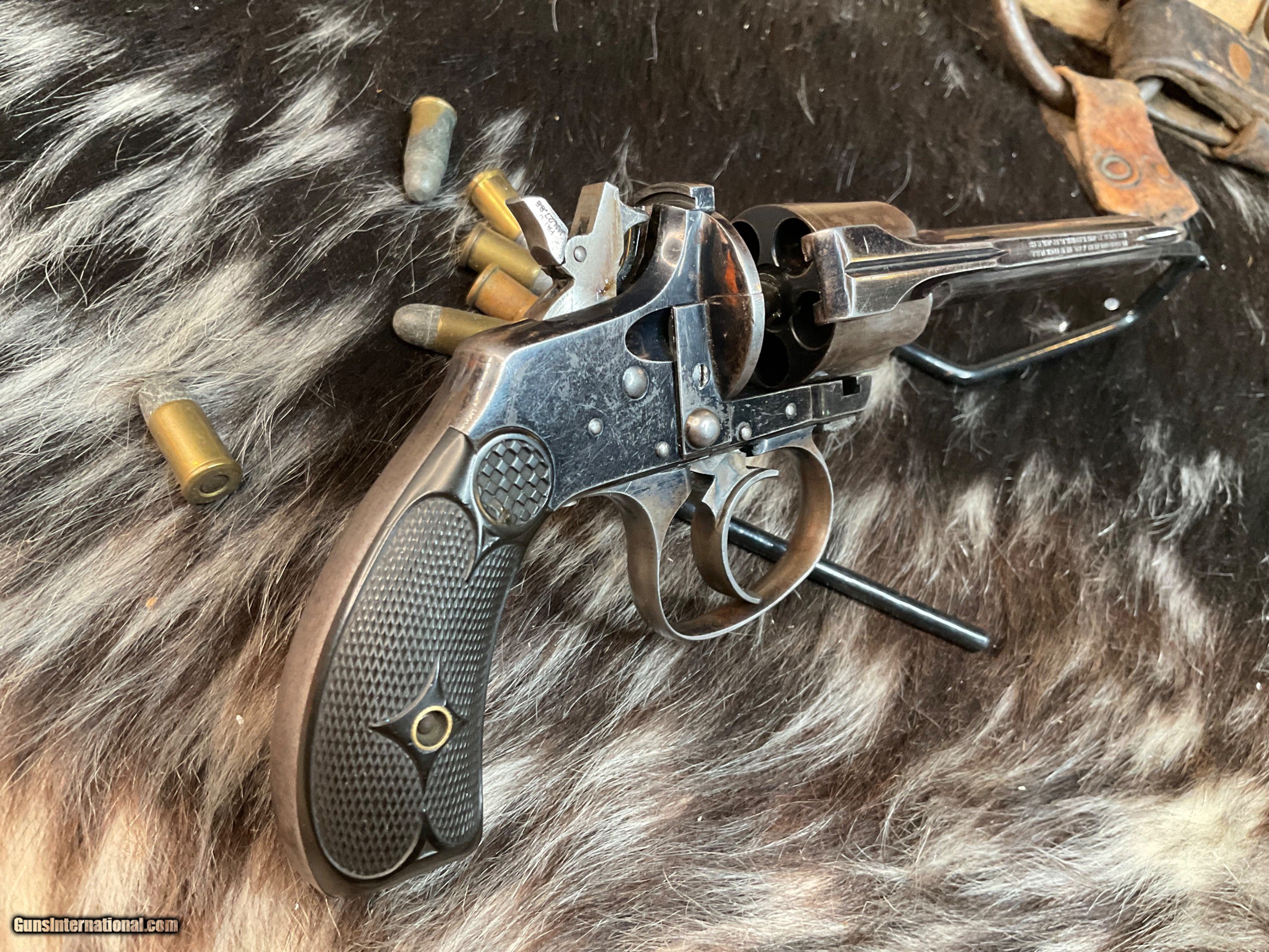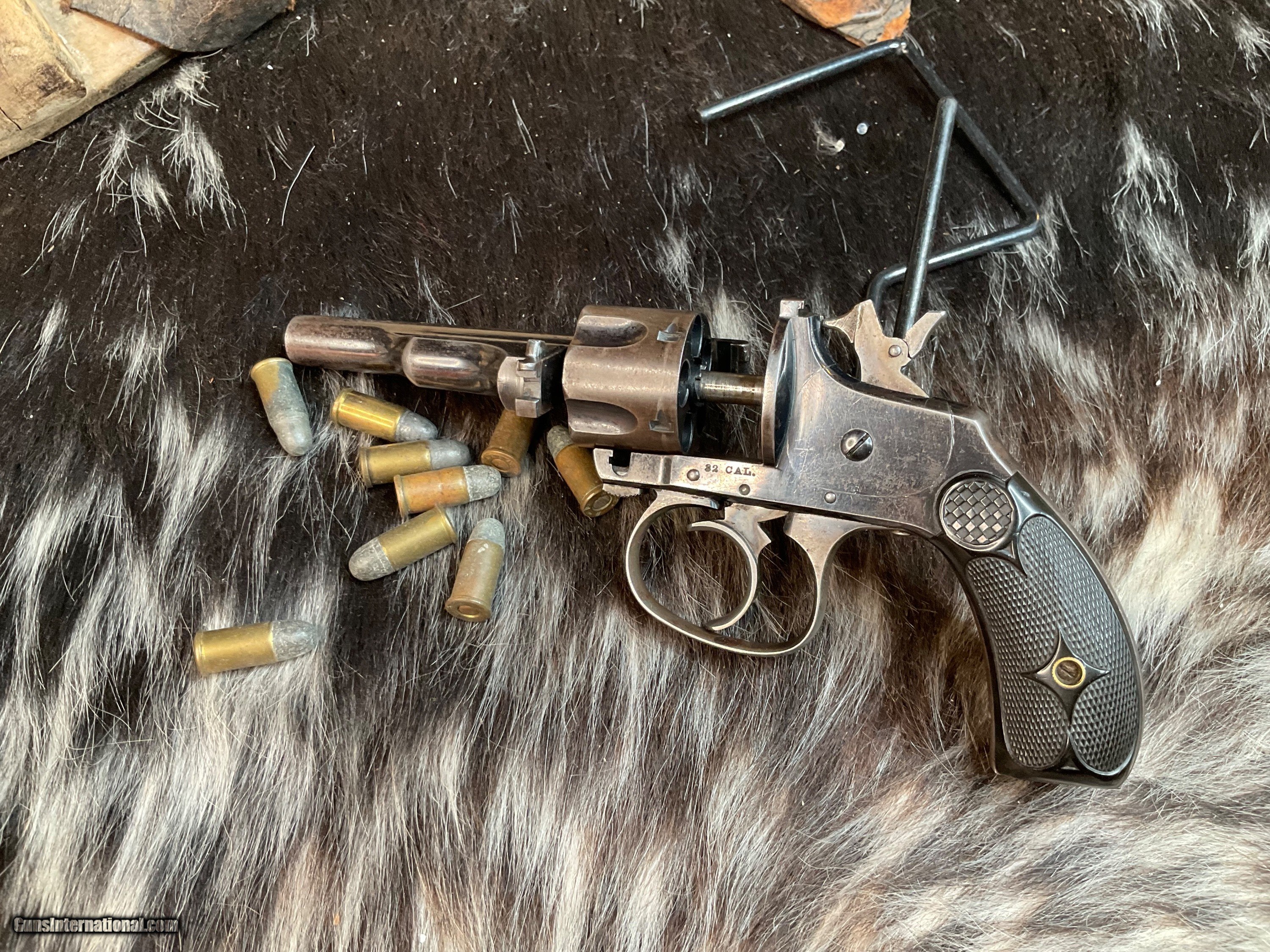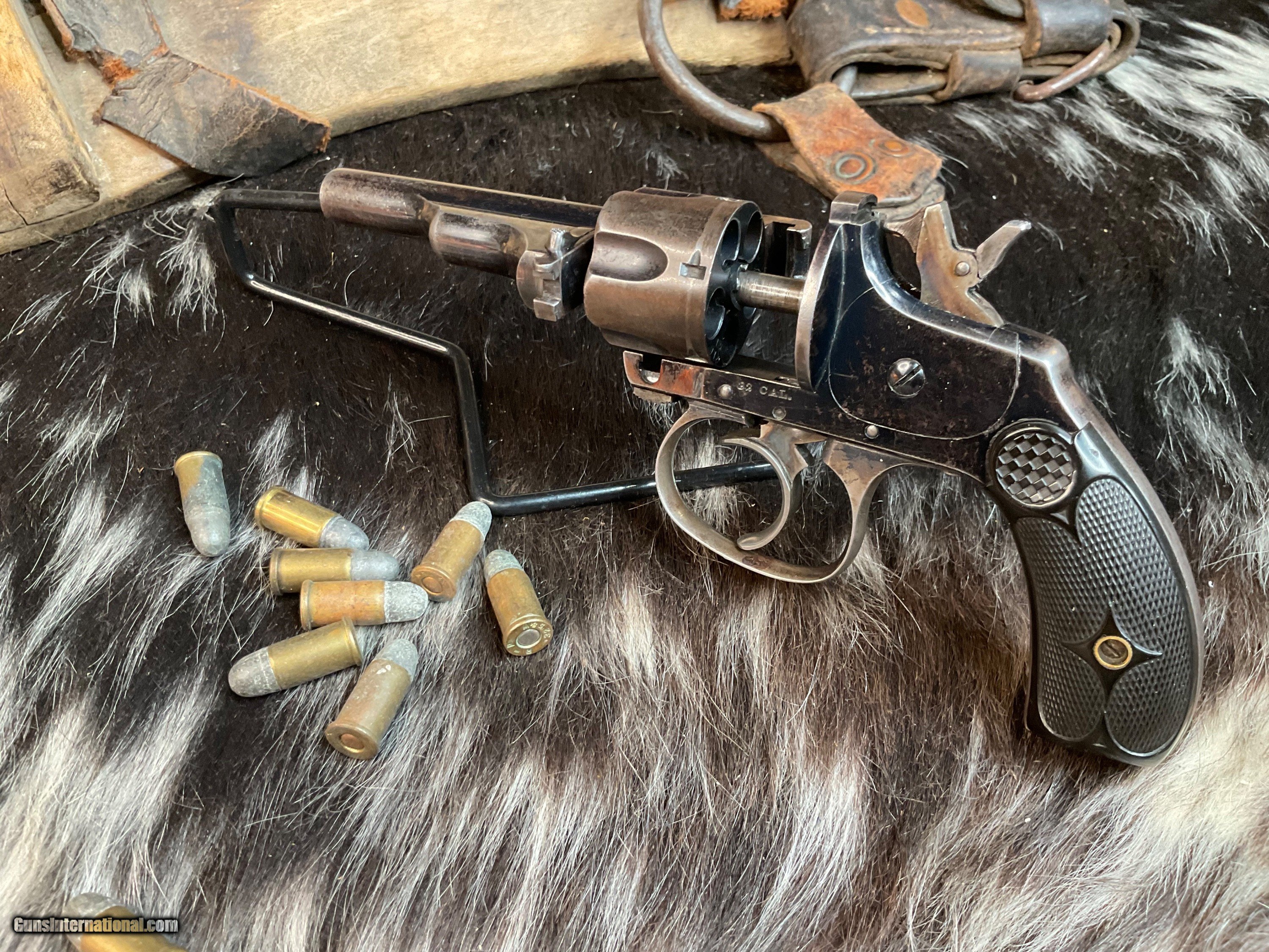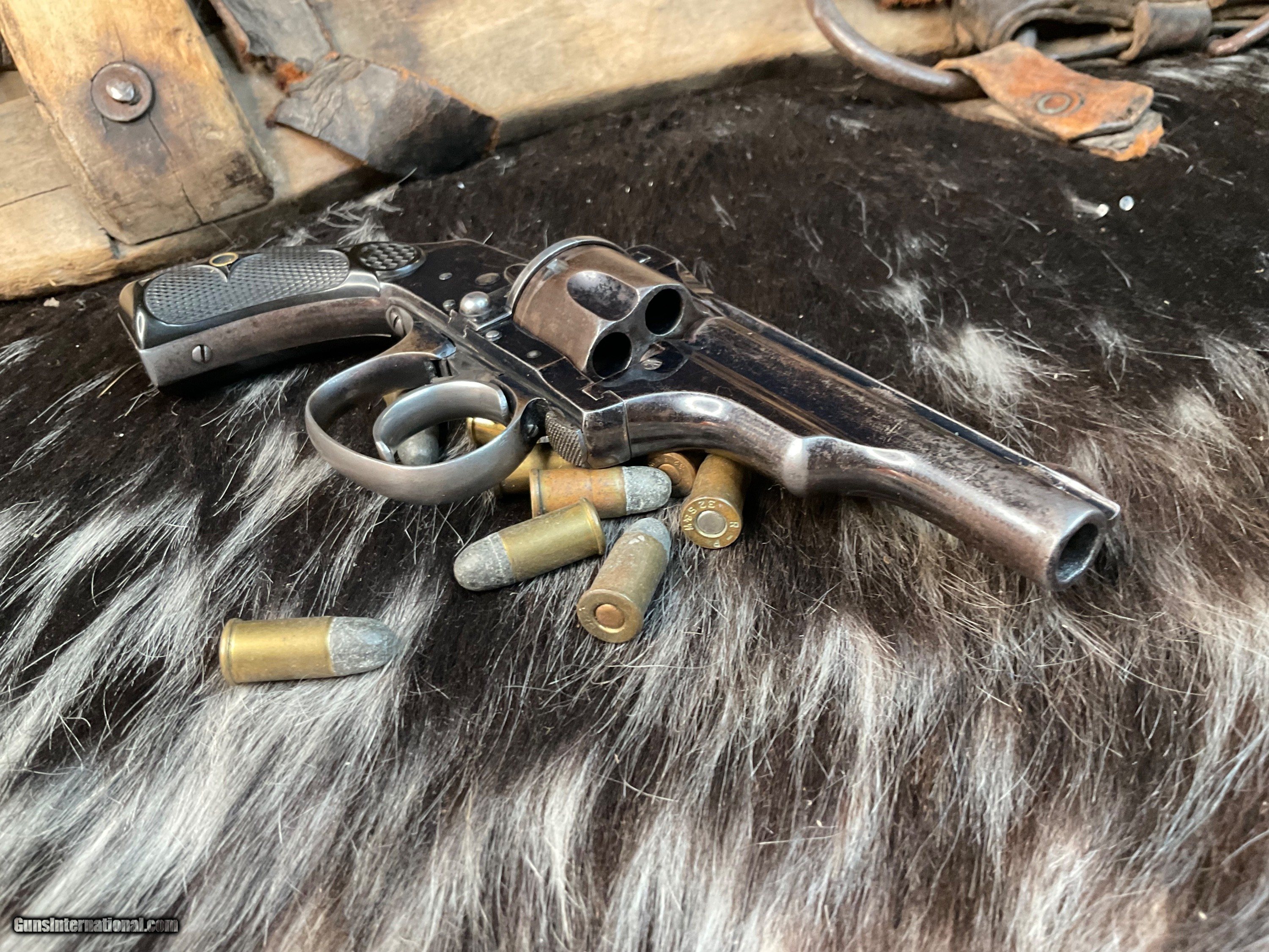 Description: Antique Merwin & Hulbert .32 pocket revolver with folding hammer! A key innovation was a rotating barrel design which allowed the user to rotate the barrel 90 degrees in order to pull the barrel and cylinder forward to remove the fired cartridge cases. During the twisting motion, the empty case could be extracted. Any intact cartridge would remain in the chamber due to the additional length of the bullet. The tight machining tolerances would create a vacuum when the barrel and cylinder were pulled forward, literally causing the assembly to 'snap back' closed when released. In addition to this unique case extraction system, pressing an additional lever control when the frame was 'open' for extraction allowed the owner to completely remove the barrel. Note: early models also required pushing out a barrel wedge similar in function to Colt percussion revolvers. This not only facilitated cleaning, but allowed the owner to swap barrels, allowing for a shorter 'concealed carry' and longer 'field' weapon in one. The combination of extraction and barrel removal required very precise manufacturing tolerances—incredible considering the tools of the day. This revolver is in .32 Black powder rimfire cartridge, approx twenty five live cartridges go with the revolver. Action functions as intended and remains in tight ready to shoot condition. Original Blued finish remains at 50 %. A rare pocket model in excellent working condition with ammo to star in your Mouse gun lineup! Antique firearm may be shipped direct with no ATF transfer needed in most states where allowed. God Bless America from a proud American, and a Viet Nam Vet , thankful for our freedoms.. paid for by the Blood ,Sweat and Tears of our brave men and women in uniform. Ten Below Firearms is a Veteran owned and operated business. We specialize in out of production models of high quality firearms. We love to ship! We ship to all states where legal, just give us a call! Handguns normally ship for $35 and Long guns for $50 and up for extra length long guns. That's 2-3 day USPS Priority shipping, Delivery conformation and with tracking number. Optional Postal insurance is additional $1.85 per $100 and highly recommended. We are OPEN BY APPOINTMENT ONLY FOR IN PERSON VISITS, We trade, sometimes. All payments sent via USPS Priority mail must be received within FIVE DAYS of date of purchase or item will be relisted for sale. **PROPS MAY BE USED FOR PHOTOS, PROPS ARE NOT INCLUDED WITH THE SALE OF THIS FIREARM** Thank you! Layaway:If needed we offer a 60 day layaway program. We offer FREE 60-day layaway. Buyer must pay at least 1/3 down, 1/3 Due in thirty days and the final balance due in sixty days. On all uncompleted layaways, all payments made will be non-refundable. The 60 days begins the day the buyer commits to buying the gun. 90 day layaway is available with 1/2 down, via phone. All layaway sales are final. Layaway is not available on negotiated prices. SOLD Antique: Yes Handgun Caliber: .32 Rimfire Manufacturer: Merwin & Hulbert Model: Pocket Model .32 Serial Number: 12912 Barrel Length: 3.5 inch Chambers: 5 Condition: Very Good Metal Condition: Very Good Bore Condition: Very Good Barrel Type: Solid Rib Action: DA Triggers: DA Finish: Blued Sights: Fixed Manufacture Date: 1886 Extras: Ammo Black Powder Case: Case black plastic Item Location: Mn |