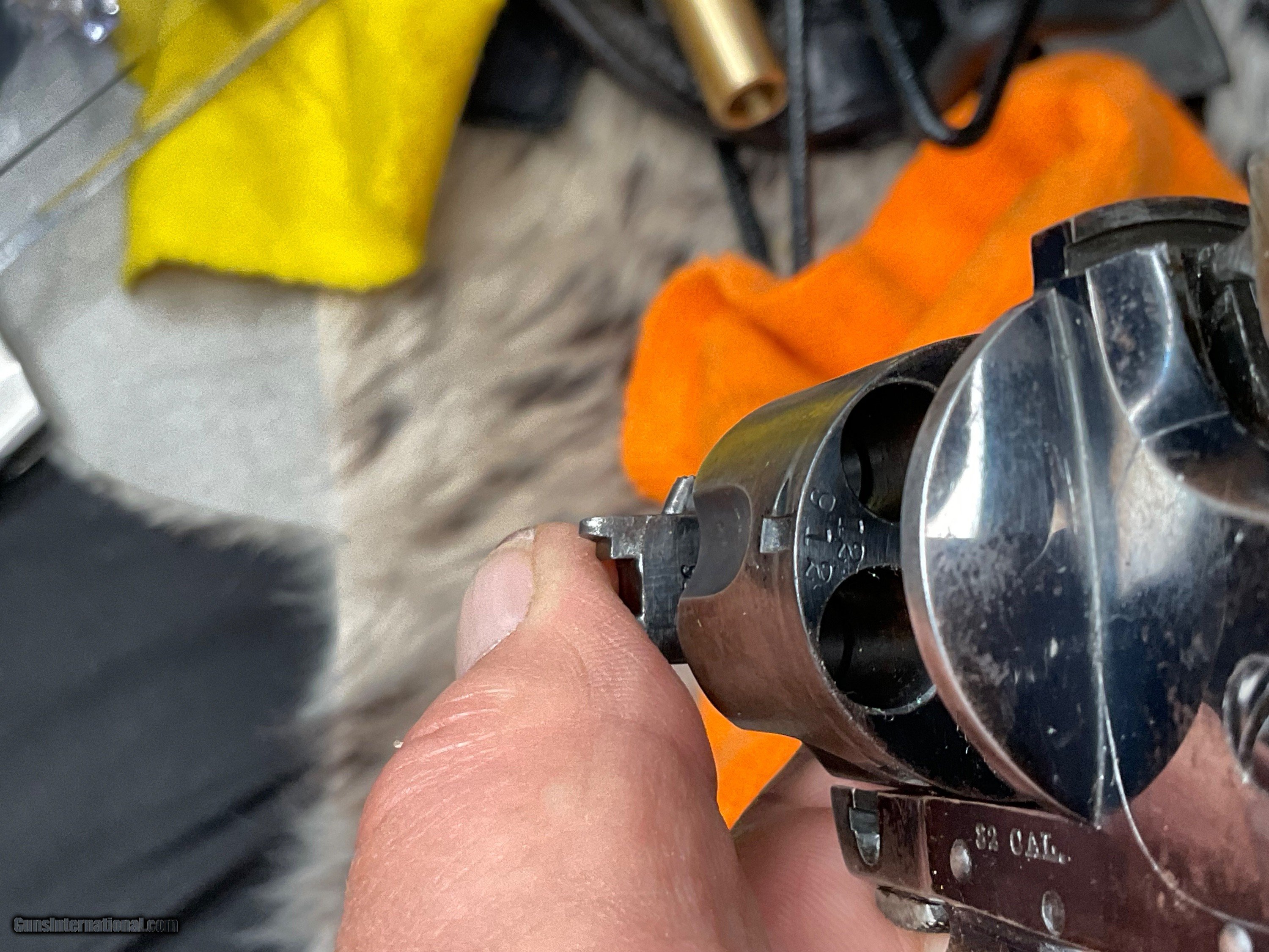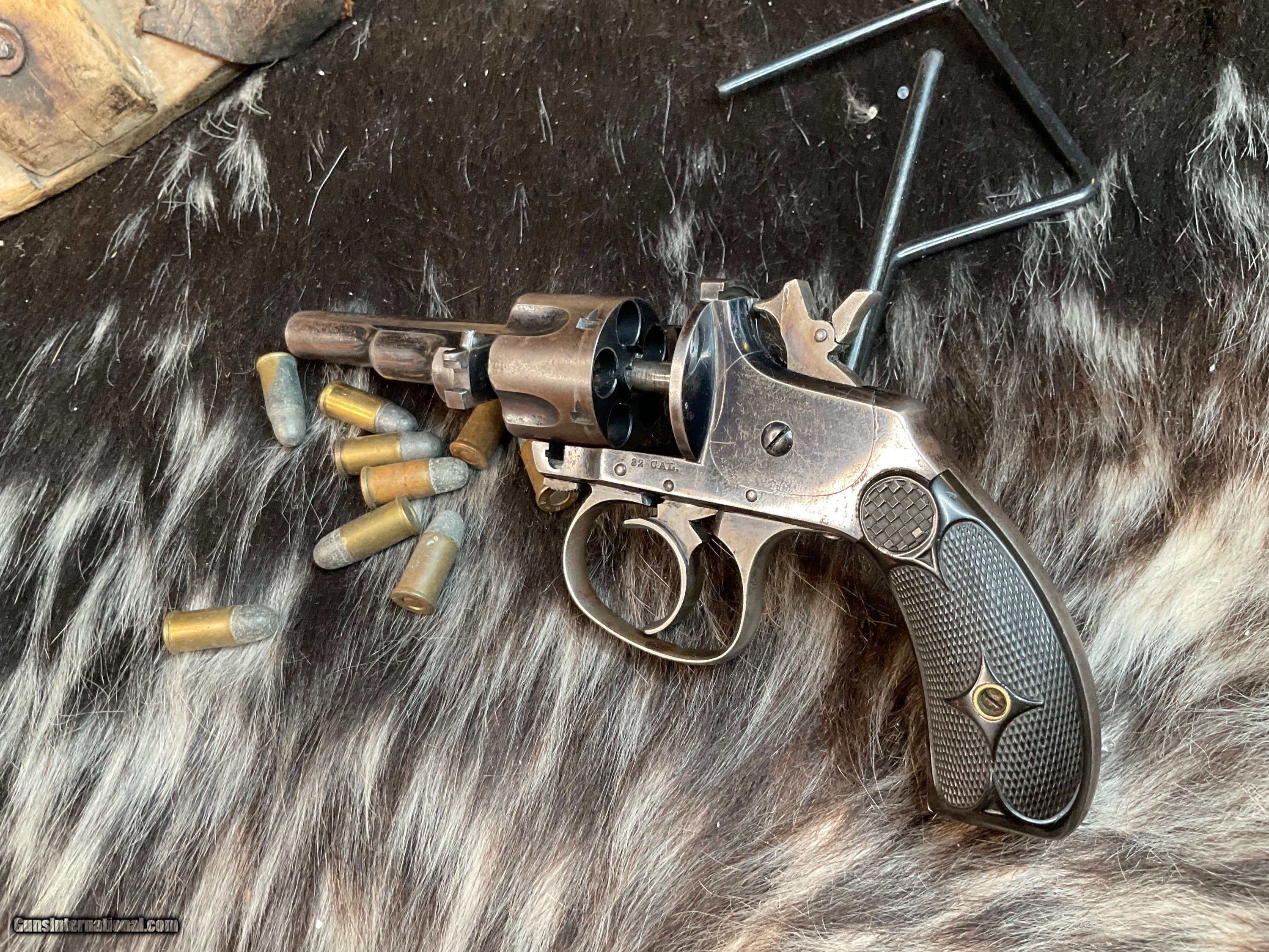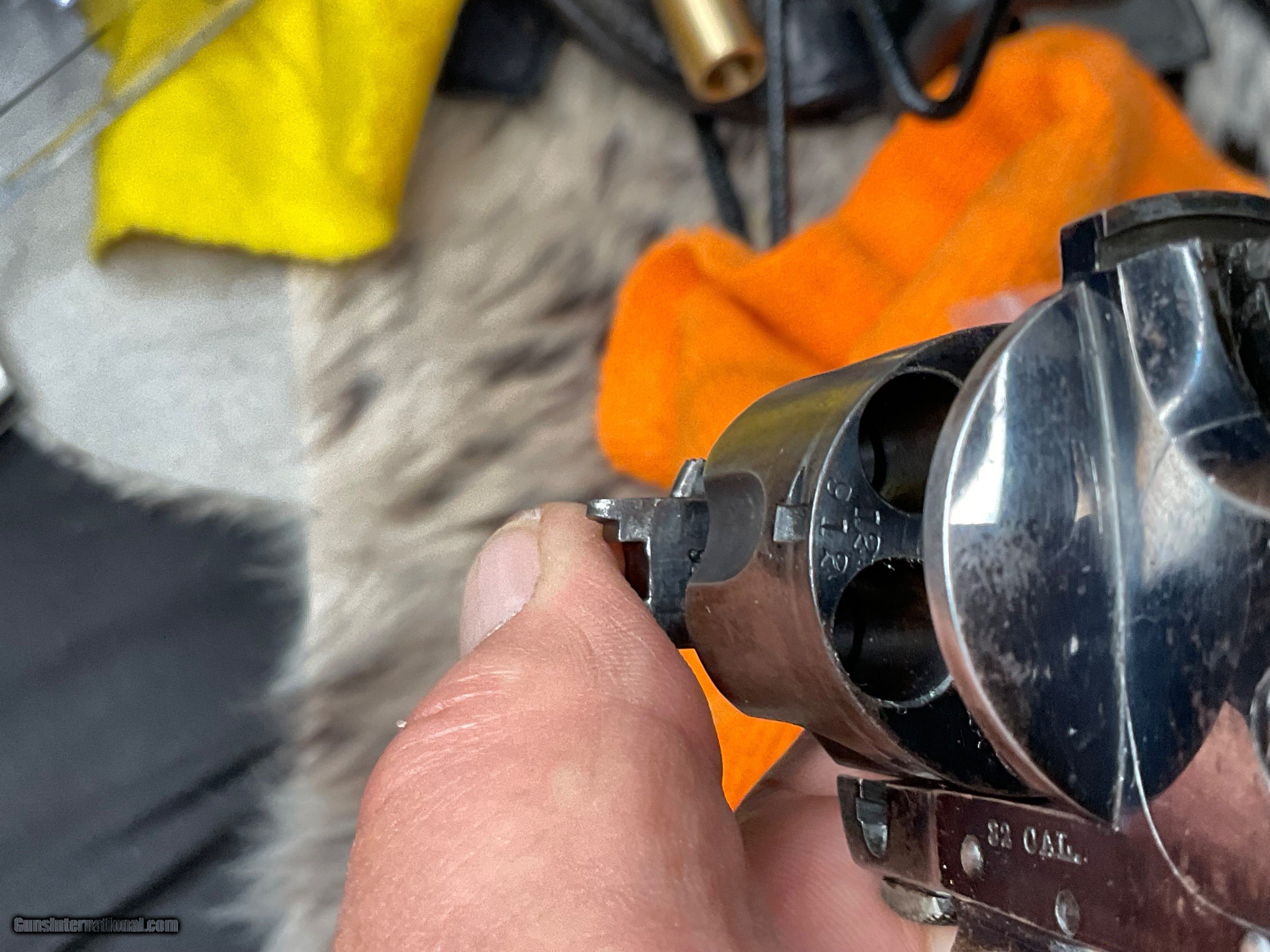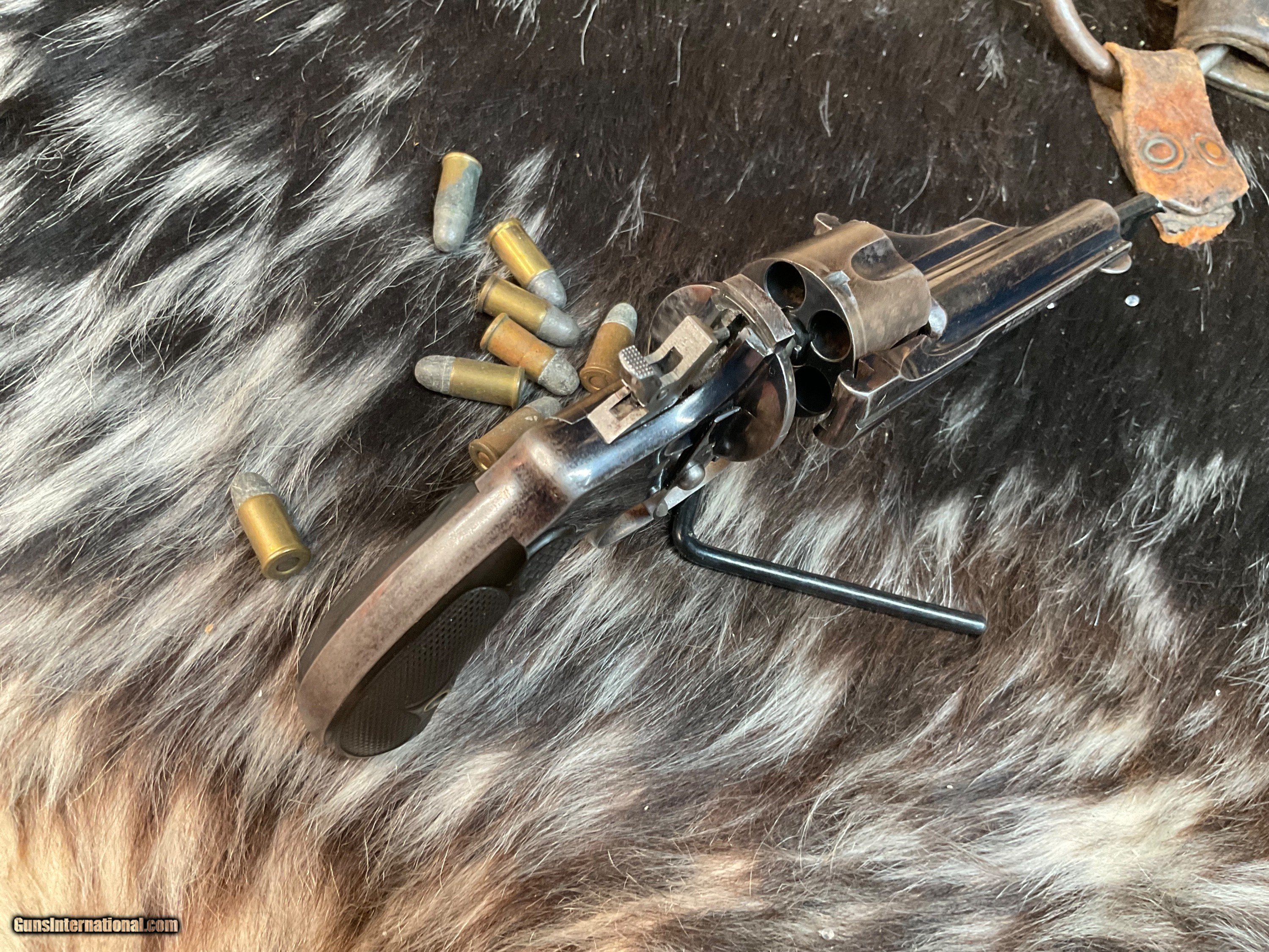 Description: Antique Merwin & Hulbert .32 pocket revolver with folding hammer! A key innovation was a rotating barrel design which allowed the user to rotate the barrel 90 degrees in order to pull the barrel and cylinder forward to remove the fired cartridge cases. During the twisting motion, the empty case could be extracted. Any intact cartridge would remain in the chamber due to the additional length of the bullet. The tight machining tolerances would create a vacuum when the barrel and cylinder were pulled forward, literally causing the assembly to 'snap back' closed when released. In addition to this unique case extraction system, pressing an additional lever control when the frame was 'open' for extraction allowed the owner to completely remove the barrel. Note: early models also required pushing out a barrel wedge similar in function to Colt percussion revolvers. This not only facilitated cleaning, but allowed the owner to swap barrels, allowing for a shorter 'concealed carry' and longer 'field' weapon in one. The combination of extraction and barrel removal required very precise manufacturing tolerances—incredible considering the tools of the day. This revolver is in .32 Black powder rimfire cartridge, approx twenty five live cartridges go with the revolver. Action functions as intended and remains in tight ready to shoot condition. Original Blued finish remains at 50 %. A rare pocket model in excellent working condition with ammo to star in your Mouse gun lineup! Antique firearm may be shipped direct with no ATF transfer needed in most states where allowed. God Bless America from a proud American, and a Viet Nam Vet , thankful for our freedoms.. paid for by the Blood ,Sweat and Tears of our brave men and women in uniform. Ten Below Firearms is a Veteran owned and operated business. We specialize in out of production models of high quality firearms. We love to ship! We ship to all states where legal, just give us a call! Handguns normally ship for $35 and Long guns for $50 and up for extra length long guns. That's 2-3 day USPS Priority shipping, Delivery conformation and with tracking number. Optional Postal insurance is additional $1.85 per $100 and highly recommended. We are OPEN BY APPOINTMENT ONLY FOR IN PERSON VISITS, We trade, sometimes. All payments sent via USPS Priority mail must be received within FIVE DAYS of date of purchase or item will be relisted for sale. **PROPS MAY BE USED FOR PHOTOS, PROPS ARE NOT INCLUDED WITH THE SALE OF THIS FIREARM** Thank you! Layaway:If needed we offer a 60 day layaway program. We offer FREE 60-day layaway. Buyer must pay at least 1/3 down, 1/3 Due in thirty days and the final balance due in sixty days. On all uncompleted layaways, all payments made will be non-refundable. The 60 days begins the day the buyer commits to buying the gun. 90 day layaway is available with 1/2 down, via phone. All layaway sales are final. Layaway is not available on negotiated prices. SOLD Antique: Yes Handgun Caliber: .32 Rimfire Manufacturer: Merwin & Hulbert Model: Pocket Model .32 Serial Number: 12912 Barrel Length: 3.5 inch Chambers: 5 Condition: Very Good Metal Condition: Very Good Bore Condition: Very Good Barrel Type: Solid Rib Action: DA Triggers: DA Finish: Blued Sights: Fixed Manufacture Date: 1886 Extras: Ammo Black Powder Case: Case black plastic Item Location: Mn |