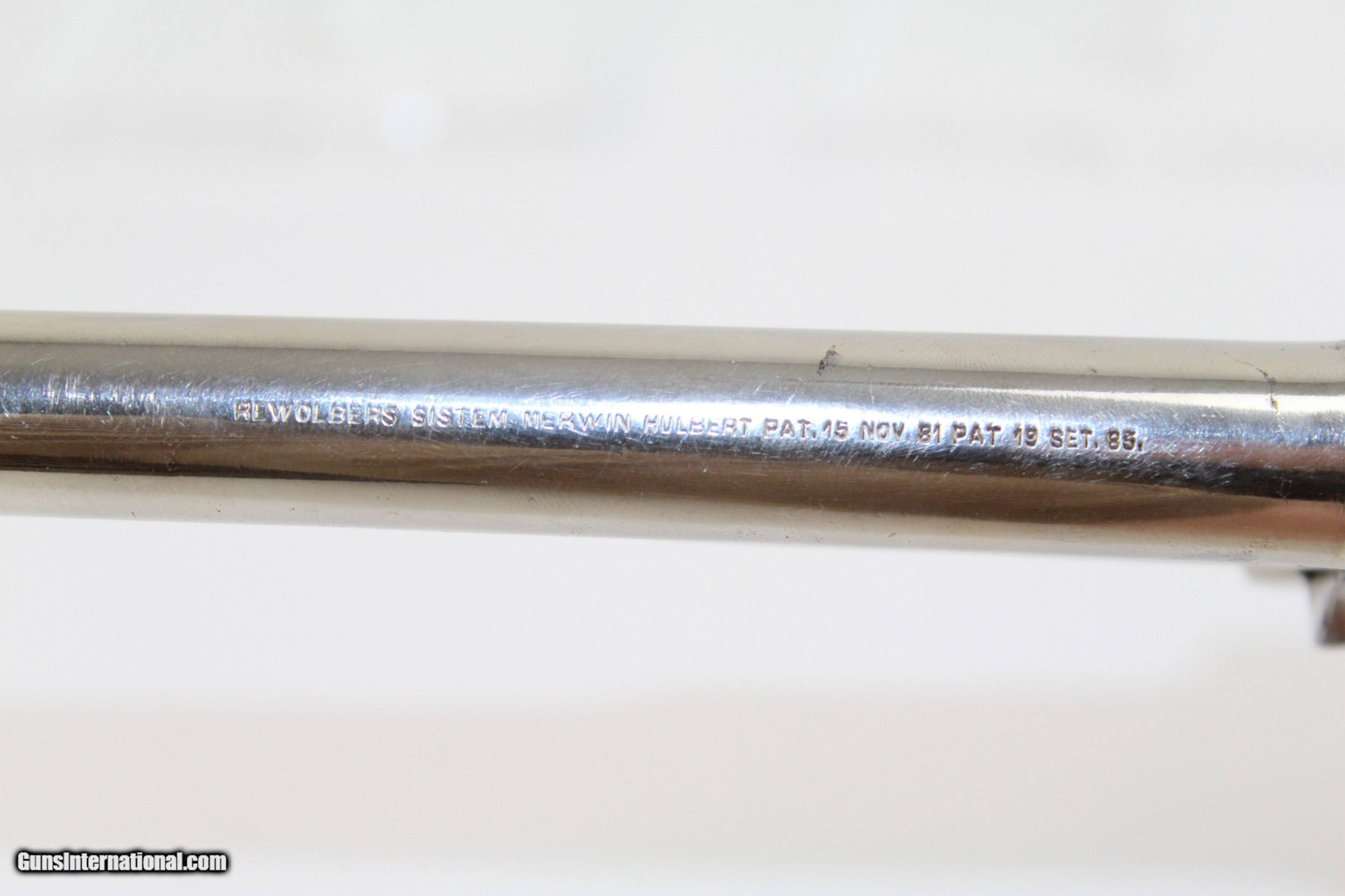 Description: Antique MERWIN & HULBERT Single Action Revolver By Anitua & Charola of Eibar, Spain Here we present an antique Period Copy of a Merwin & Hulbert Single Action Revolver in .44-40 WCF, made by Anitua & Charola in Eibar, Spain circa the 1880s. The genuine articles were made by Hopkins & Allen by contract. Gun makers in Spain were somewhat notorious for copying all kinds of firearms due to the country’s more liberal patent laws. Anitua & Charola was a company well known for their copies. The Merwin & Hulbert revolvers are considered today to be some of the best made of the late 19th Century and the Wild West, even better to some than similar Colts and Smith & Wessons, though we all know who stood the test of time. These pistols certainly tended to have different, very well-thought features than their competition, and they were extremely well-made. One such feature was the method of ejection. Loading was achieved by placing the hammer at half-cock and sliding down the loading gate to single feed cartridges. If one wanted to unload the gun, they could simply push the latch back on the bottom of the gun, twist the barrel and cylinder assembly and pull forward. Only the empty brass would come out as the space created was shorter than a loaded cartridge, enabling the shooter to top of his gun and keep rounds available. An ingenious method was designed to achieve this that included a machined cut on the cylinder axis pin and a ledge on the breech face that kept the cartridge rims underneath. This system was also advantageous for forcefully removing stuck cartridges, providing lots of mechanical advantage. This one is marked “REWOLBERS SISTEM MERWIN HULBERT PAT. 15 NOV. 81 PAT 19 SET. 85.” on top of the barrel. The left side of the barrel is marked “ANIT & CHAR Manufacturers of Fire Arms”. The overall condition is near fine. The revolver has had a nickel finish applied at some point that is near complete. The markings are legible. The grips are fine. The bore is in great shape with sharp rifling. The action is excellent, strong and crisp. Merwin & Hulberts have been recognized in recent years for their unique and innovative design, details that obviously did not go unnoticed even in Continental Europe 140 years ago! Own the original! This is a legitimate antique and not a reproduction. Barrel is 7 inches. Caliber: .44-40 WCF Overall condition as seen in photos. Very Fast. Very Safe. FREE SHIPPING WORLDWIDE. Delivered directly to your door by express mail! Guaranteed AUTHENTIC & Includes CERTIFICATE OF AUTHENTICITY. ancestryguns $3250 #7249 SOLD Antique: Yes |