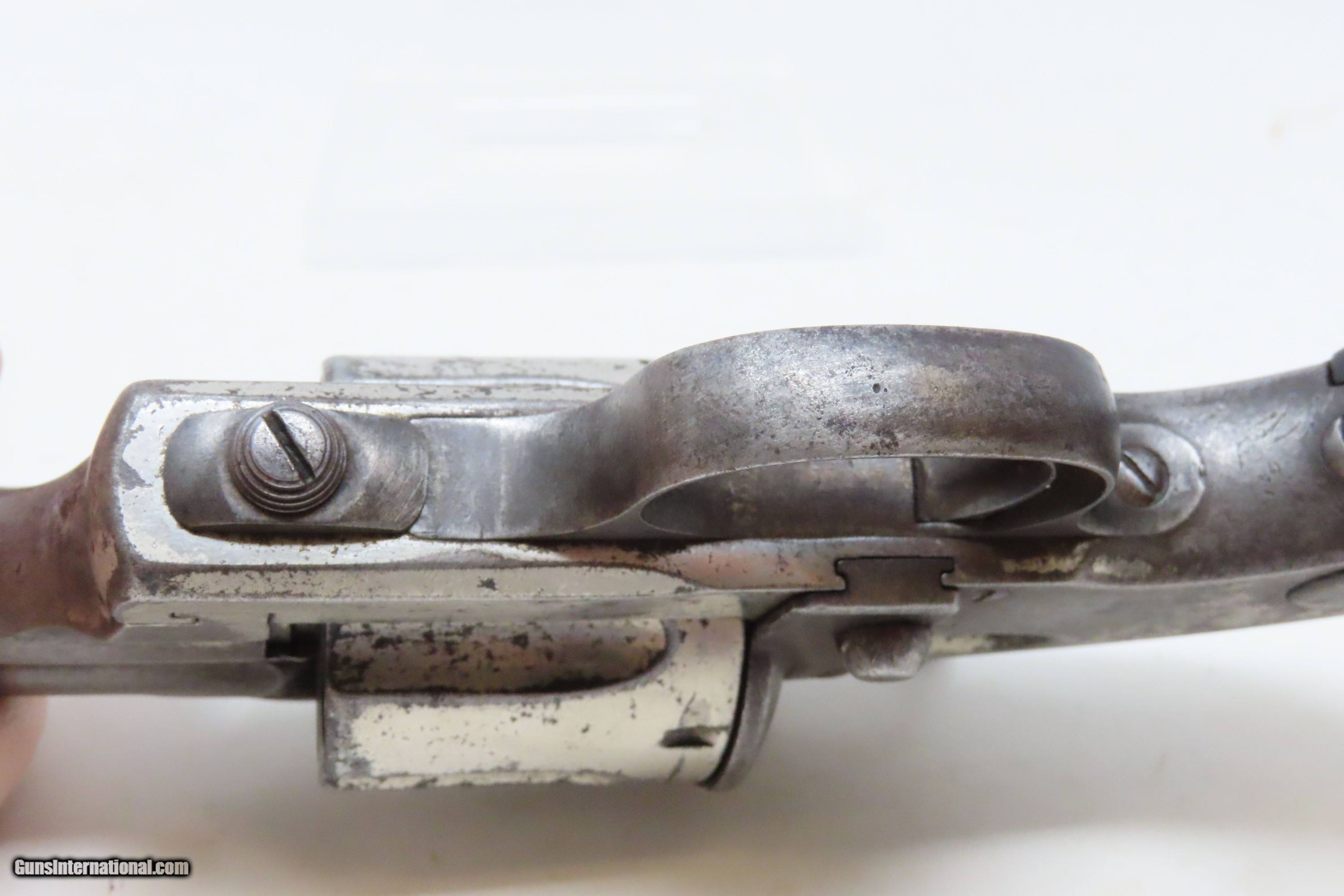 Description: c1880s Antique Spanish Copy MERWIN HULBERT .44 WILD WEST 6-Shooter Short-Lived Competition to Colt’s SAA Here we present an antique Spanish Copy of a Merwin, Hulbert & Co. Single Action Army Revolver, made circa the late 1870s to the mid-1880s by Hopkins & Allen in Norwich, Connecticut. This Army features 6 shots of .44 Merwin Hulbert. These revolvers are considered today to be some of the best made of the late 19th Century and the Wild West, even better to some than similar Colts and Smith & Wessons, though we all know who stood the test of time. These revolvers certainly tended to have different, very well-thought features than their competition, and they were extremely well-made. One such feature was the method of ejection. Loading was achieved by placing the hammer at half-cock and sliding down the loading gate to single feed cartridges. If one wanted to unload the gun, they could simply push the latch back on the bottom of the gun, twist the barrel and cylinder assembly and pull forward. Only the empty brass would come out as the space created was shorter than a loaded cartridge, enabling the shooter to top off his gun and keep rounds available. An ingenious method was designed to achieve this that included a machined cut on the cylinder axis pin and a ledge on the breech face that kept the cartridge rims underneath. This system was also advantageous for forcefully removing stuck cartridges, providing lots of mechanical advantage. Merwin & Hulbert arms were owned or carried by number of famous frontier lawmen and notables, including Texas Ranger Frank Hamer (who ambushed and killed Bonnie & Clyde) who carried a medium frame seven-shot .32 caliber Merwin & Hulbert. Pat Garrett (the killer of Billie the Kid) was presented with an inscribed .38 Medium Frame Merwin & Hulbert in September of 1881 from the “grateful citizens of Lincoln County”, and Diamond Dick of Buffalo Bill’s Wild West Show carried a Merwin & Hulbert as well. More notorious frontiersmen known to have owned and carried Merwin & Hulbert revolvers include Bob Dalton, Sam Bass, and John Wesley Hardin, just to name a few. The overall condition is good. There is original nickel finish throughout with a gray patina otherwise. The barrel was shortened to about 4 7/8” and the front sight relocated. The action is excellent and crisp. The arbor pin is not tight to the frame so there is a little movement between the frame and the rest of the gun. The bore is in good condition with strong rifling. The grips are solid and showing much use. Numbers match. Own the original! This is a legitimate antique and not a reproduction. Barrel is 4-7/8 inches. Caliber: .44 Overall condition as seen in photos. Very Fast. Very Safe. FREE SHIPPING WORLDWIDE. Delivered directly to your door by express mail! Guaranteed AUTHENTIC & Includes CERTIFICATE OF AUTHENTICITY. ancestryguns $1600 #233782 SOLD Antique: Yes |