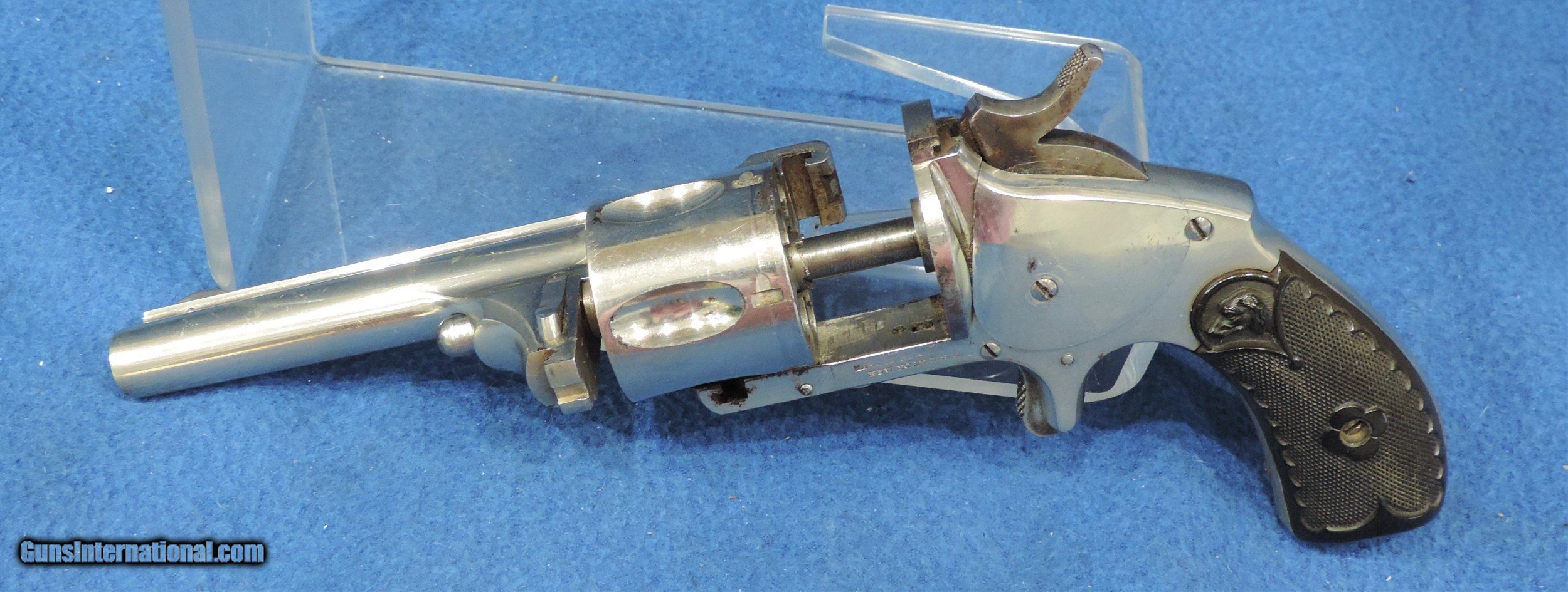 Description: Inv. 7107 Merwin & Hulbert, 2nd Mdl. Cal. .38. Ser 39XX. Just about mint these extremely unusual early American revolvers. Other than a few slight surface nicks on the barrel the gun has retained about 100% of the original factory nickle plate. All;; parts match. The black Bakelite grips are absolutely flawless.Not nick, a split or even a flattened point. The grip crew is undamaged. The trigger and hammer have retained 99.9% of their original case color. The cylinder face, recoil shield and force indicate that the gun may have never been fired. The bore is pristine like the rest of the gun. Mirror bright with razor sharp rifling. Not a touch of frost anywhere. It would be almost impossible to find a better one anywhere near this price, and we guarantee your satisfaction with the purchase...........$1195. To purchase this firearm or if you want to request more information contact us at: Email ckguns[at]ymail[dot]com Phone 201-512-0002 Cell 201-575-6838 FAX 201-215-4759 We accept most major credit cards. Prices shown are Discounted 3% for Cash or Check. The buyer must be familiar with all the laws governing the purchase and the ownership of firearms in their own city and state. The Yankee Armorer, Inc is not responsible for any failure to comply with or observe these laws. The Yankee Armorer, Inc will only ship after full payment and receipt of all required documents. Shipping: Add $35.00 for handguns, $45.00 for long guns. New Jersey buyers are subject to a 7% sales tax. The Yankee Armorer, Inc offers a 3 day inspection period with full refund upon return of intact firearm and in the original condition. The Yankee Armorer, Inc offers a no interest lay away program - 25% down; 25% in 30 days; 25% in 60 days; and full payment in 90 days. Any violation of this policy is subject to restocking and forfeiture of all payments. Any variation from this policy must be agreed to in advance. Unshipped Cancelled sales are subject to a 20% restocking fee. Be advised that all firearms sold by The Yankee Armorer, Inc. or the Gun Exchange, LLC (SELLER) are sold as collector’s items. They have not been fired or tested for safety and must be examined by a license gunsmith prior to use. By purchasing any item from the (SELLER), you are agreeing to hold the (SELLER) free from any damages or lawsuits of any nature. Any item left for transfer or storage will be charged to $25.00 per month, per item from the day of its receipt. Any variation from this policy must be agreed to in advance. Store hours 10:00 am to 5:00 pm Tuesday -Saturday. It's always best to call for appointment. Store 201-512-0002, cell 201-575-6838. SOLD |