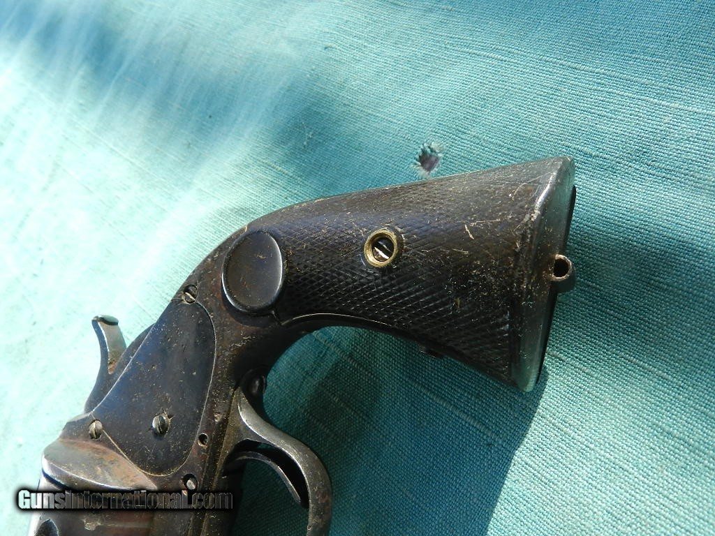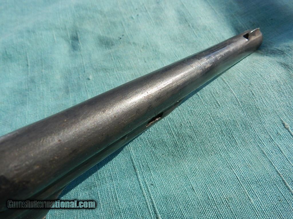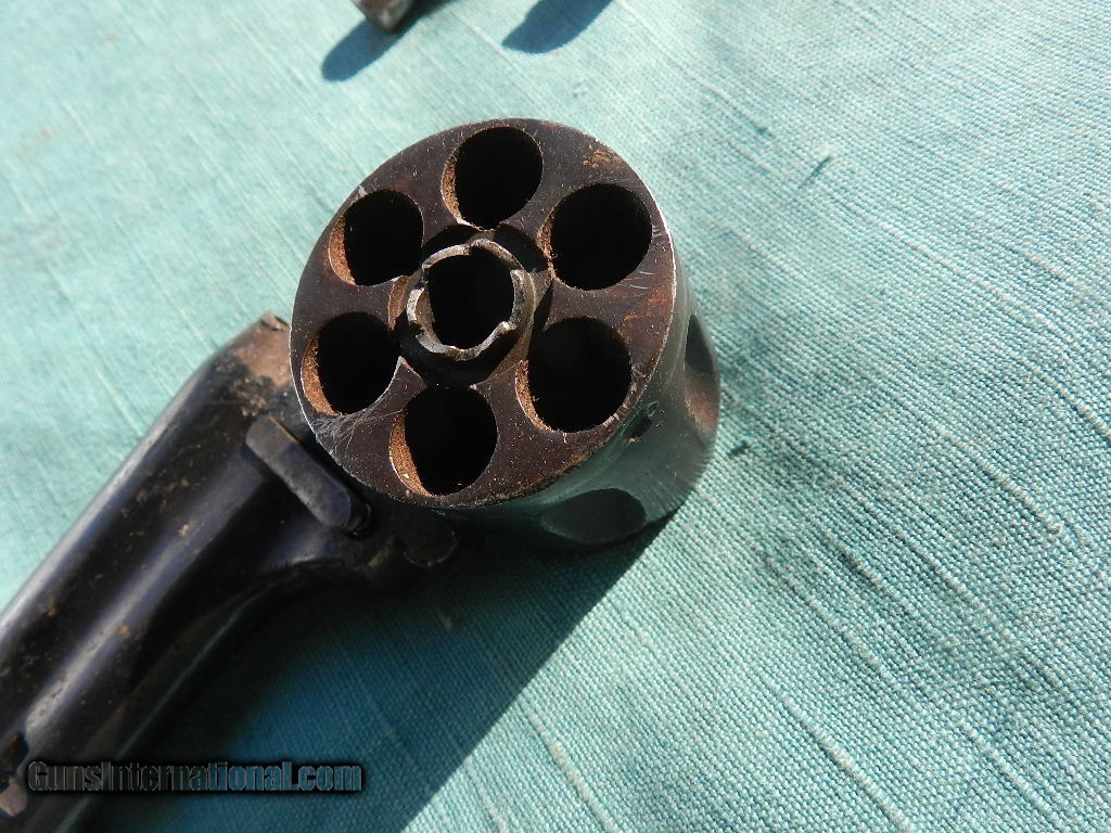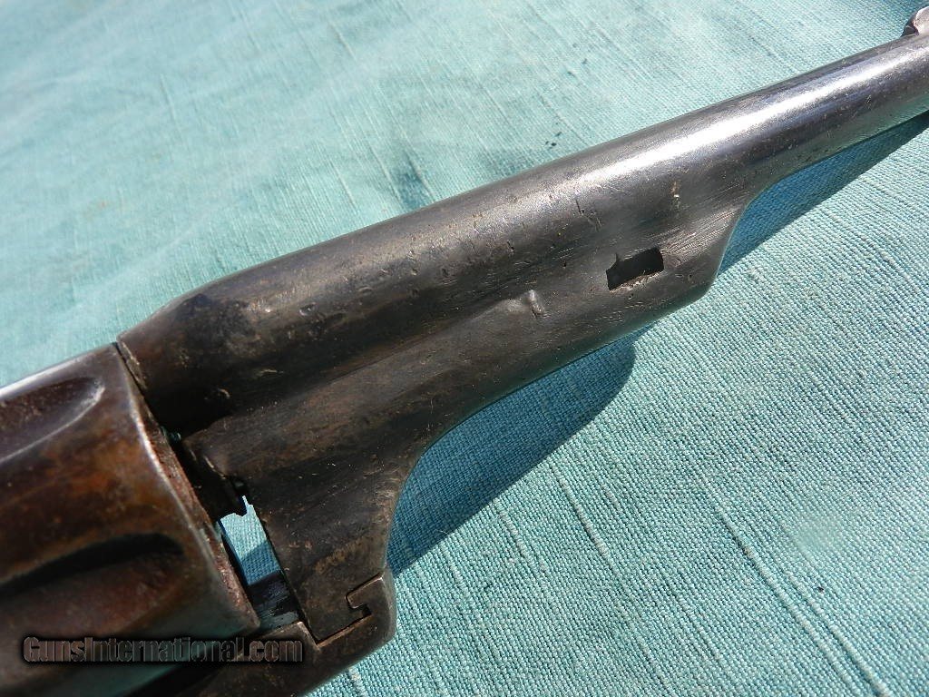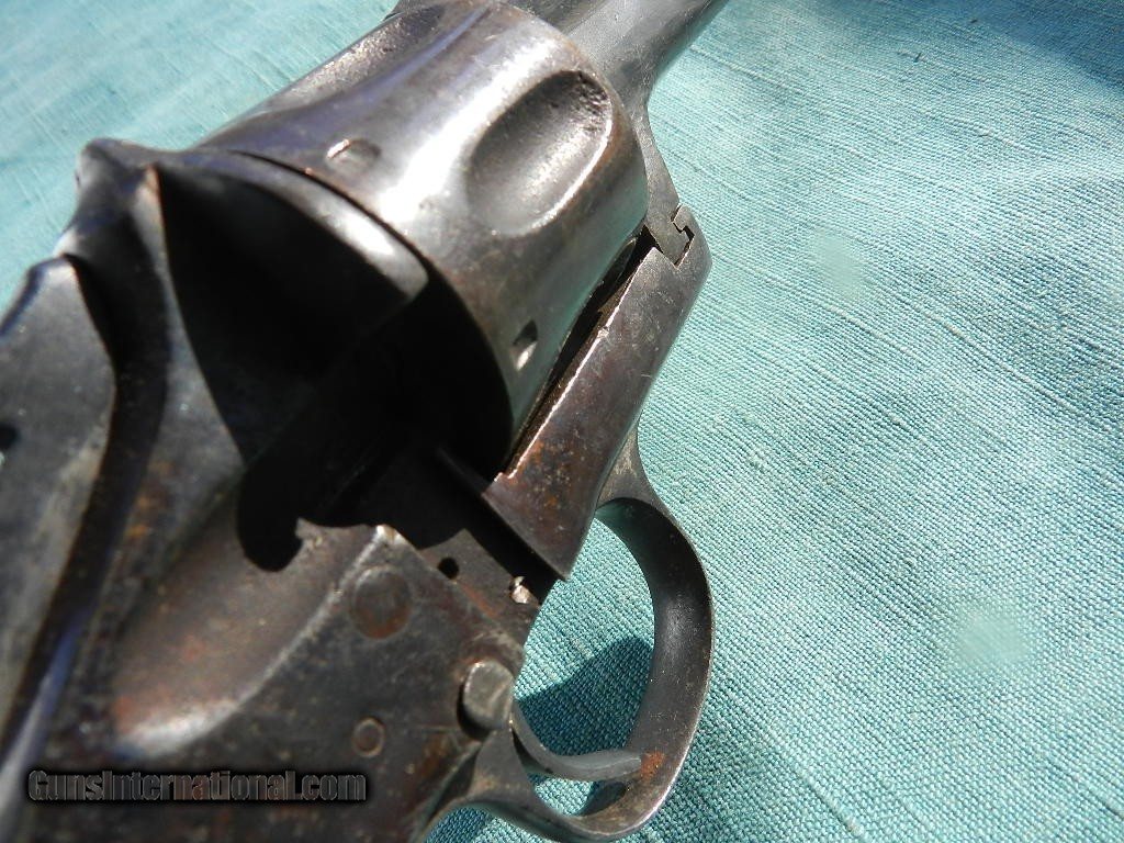 Description: SOLD This rustic Western revolver is sold as a project as it works sometimes with the muzzle downward. The top barrel address is worn, and the underside ofthe barrel had a inlaid silve name , only partially seen. Often these old guns wererebuilt many times to keep them going by old town blacksmiths or gunsmiths. The barrel length is 7", with a font blade sight..The has some rifling but is horrbile, shooting blackmpowder cartridges. Barrel comes off easy, and the black hard rubber grips are solid and appear to be original. Missing the oading gate and evidence that some pins and screws may have been replaced, with patches of pitting and applied finish over them, When buying a gun always have it examined by a competent gunsmith before shooting. To buy a gun from me you must get a direct email for me, with details, and shipping cost. We don’t have a web site .I prefer money orders or a check. Item ships when funds come in. I try to keep guns affordable, which means I make less money than most dealers. You won’t get altitude sickness, or nose bleed, with my prices! I consistently have the best selection of older guns If you attempt to buy, you must still contact us for details . Best to email to buy. Sometimes a local person can stop buy and purchase before the gun is removed. Sometimes not home to get calls. Some guns are required shipment to a gun dealer near you for a transfer to you when it arrives. Otherwise many older or black powder guns ship to your door. With the widest selection of older guns at great prices, We don’t have a store, and sell on the internet only. I’m easy to get along with. Thank You SOLD Antique: Yes |