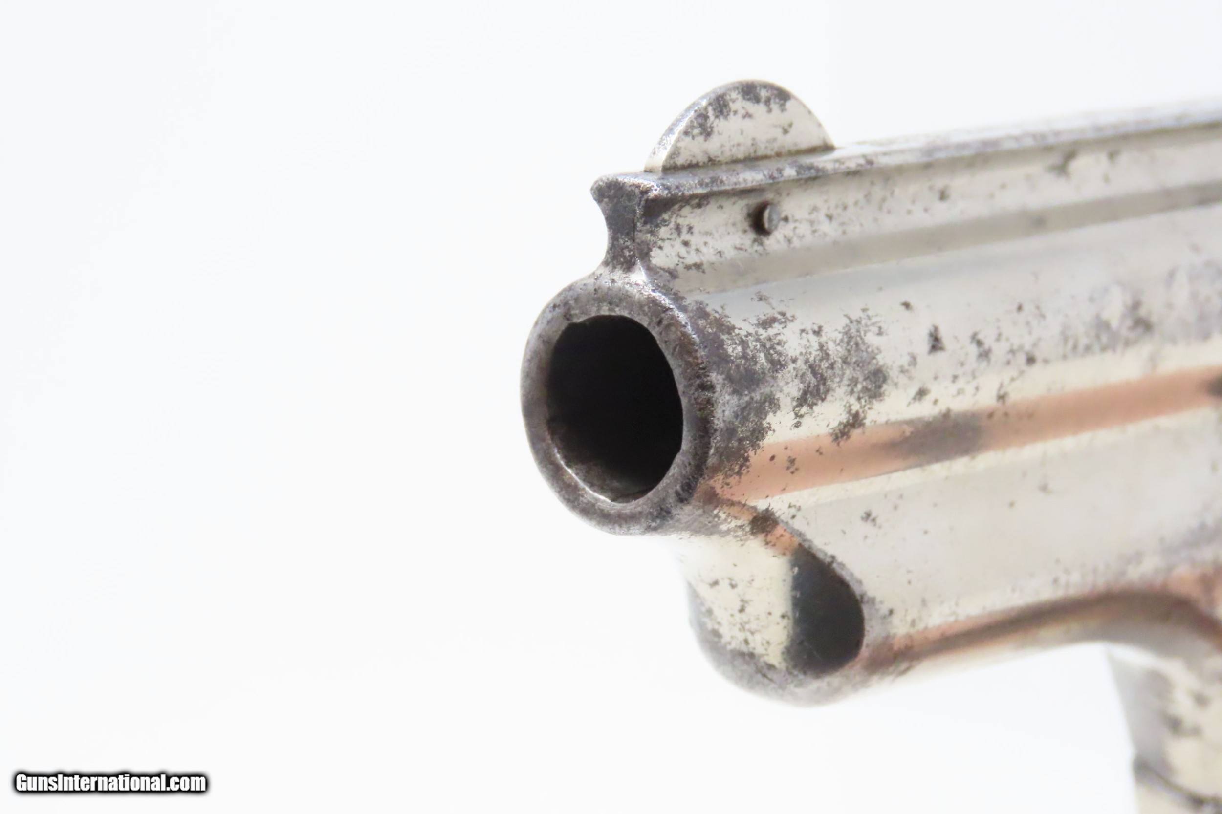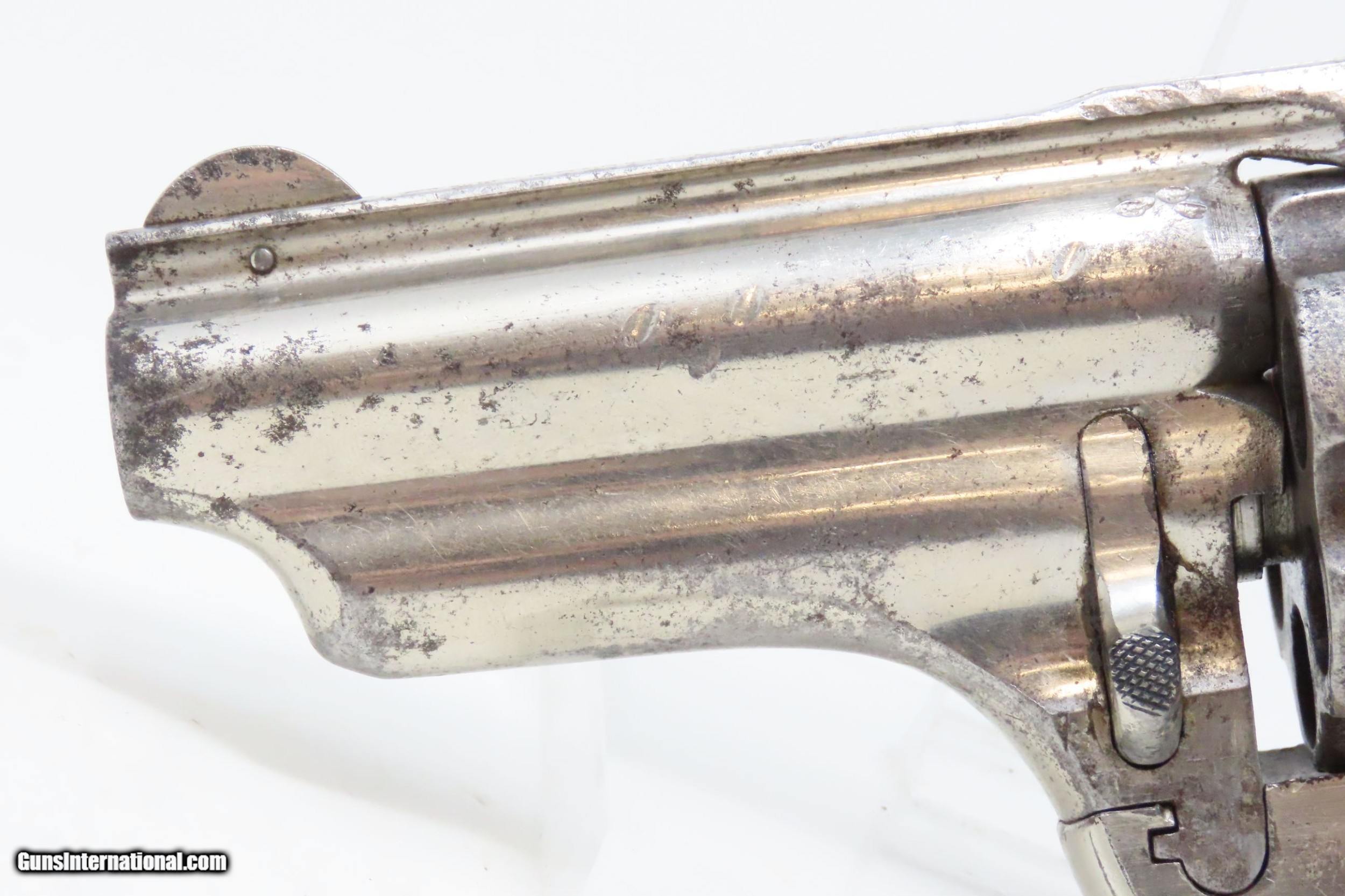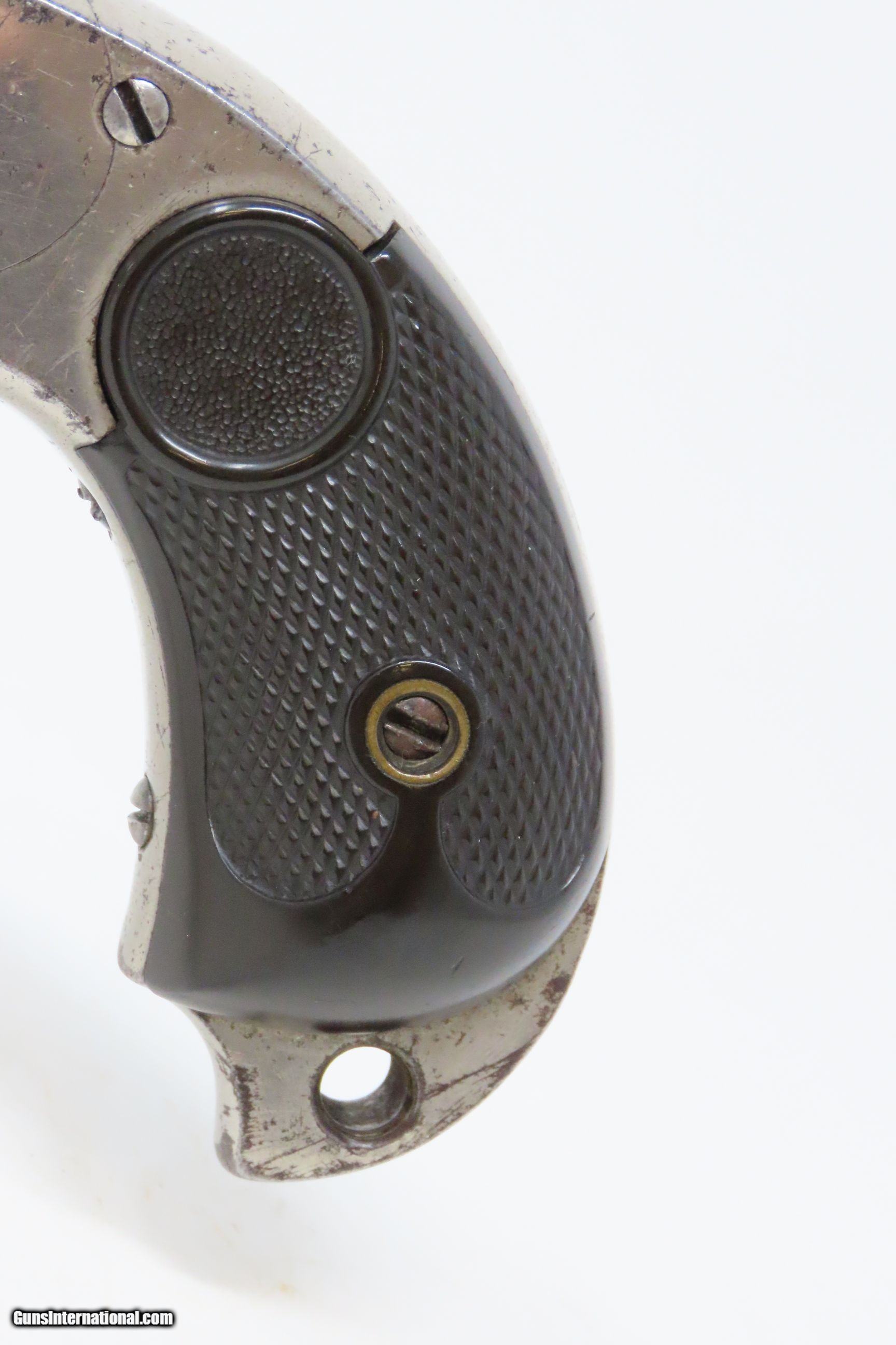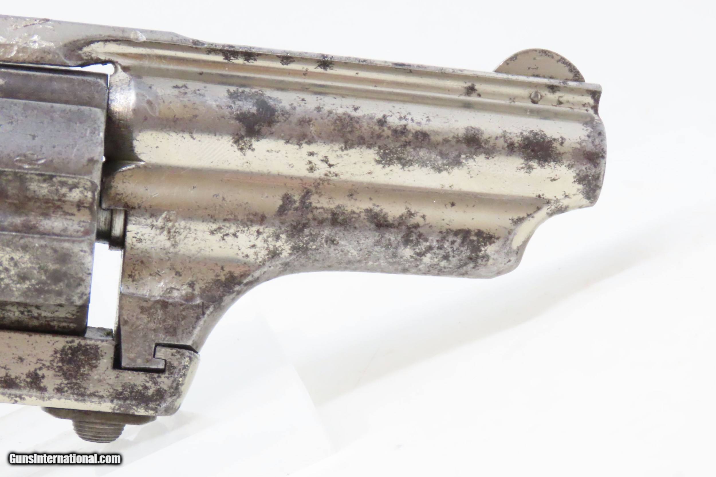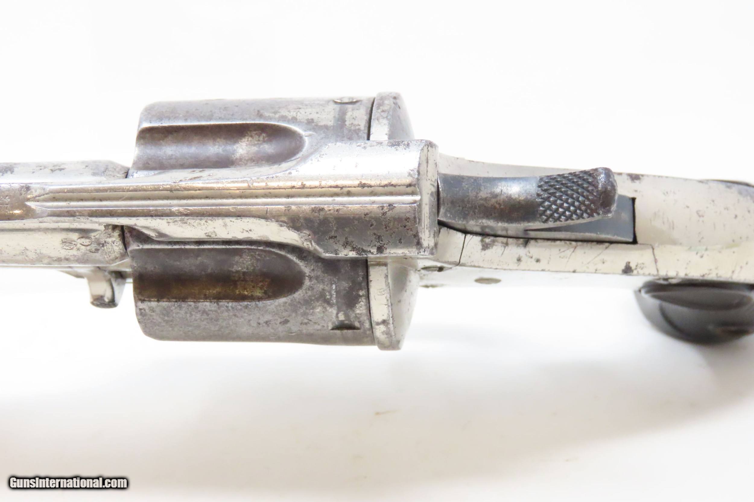 Description: MERWIN, HULBERT & Co. Antique “POCKET ARMY” .44 WCF Single Action Revolver .44-40 With “SKULL CRUSHER” Grip Frame Here we present an antique Merwin, Hulbert & Co. Pocket Army Single Action Revolver, made circa 1880-1883 in Norwich, Connecticut by Hopkins and Allen. These revolvers are considered today to be some of the best made of the late 19th Century and the Wild West, even better to some than similar Colts and Smith & Wessons, though we all know who stood the test of time. These revolvers certainly tended to have different, very well-thought features than their competition, and they were extremely well-made. A plus feature of this revolver was the method of ejection. Loading was achieved by placing the hammer at half-cock and sliding down the loading gate to single feed cartridges. If one wanted to unload the gun, they could simply push the latch back on the bottom of the gun, twist the barrel and cylinder assembly and pull forward. Only the empty brass would come out as the space created was shorter than a loaded cartridge, enabling the shooter to top off his gun and keep rounds available. An ingenious method was designed to achieve this that included a machined cut on the cylinder axis pin and a ledge on the breech face that kept the cartridge rims underneath. This system was also advantageous for forcefully removing stuck cartridges, providing lots of mechanical advantage. Both 3-1/2 inch and 7 inch barrels could be purchased, with the customer able to purchase both. Barrels were easily changed by the owner without tools, offering a 'two-guns in one' advantage over the competition, with the shorter barrel giving the owner a concealable firearm for in town, and a longer barrel for the field. The overall condition is very good. Original nickel finish. Excellent action. Bright and rifled bore. Fine grips with sharp checkering and little to no handling wear. Sharp markings. Numbers match. Own the original! This is a legitimate antique and not a reproduction. Barrel is 3-1/2 inches. Caliber: .44-40 WCF Overall condition as seen in photos. Very Fast. Very Safe. FREE SHIPPING WORLDWIDE. Delivered directly to your door by express mail! Guaranteed AUTHENTIC & Includes CERTIFICATE OF AUTHENTICITY. ancestryguns $3995 #217490 SOLD Antique: Yes |