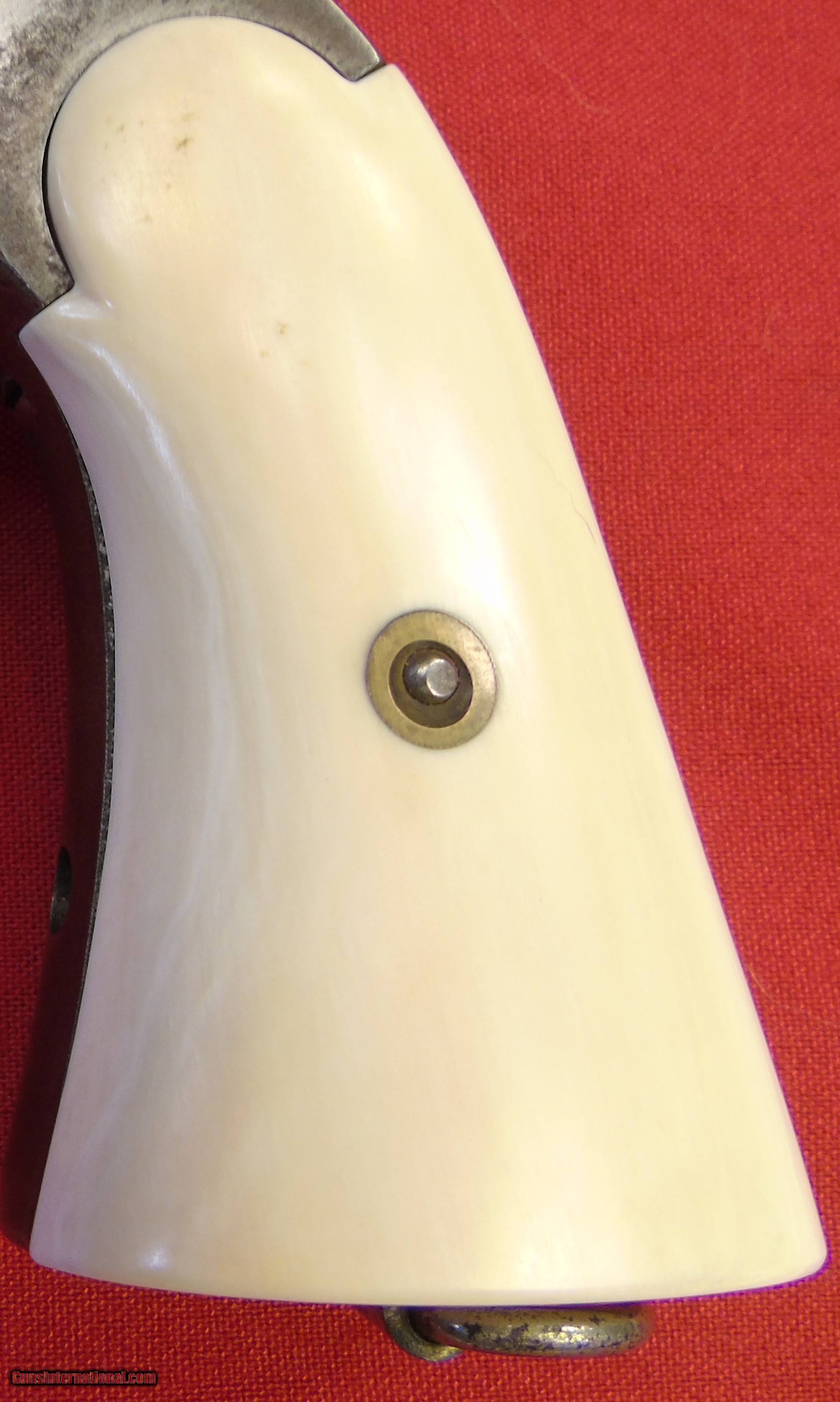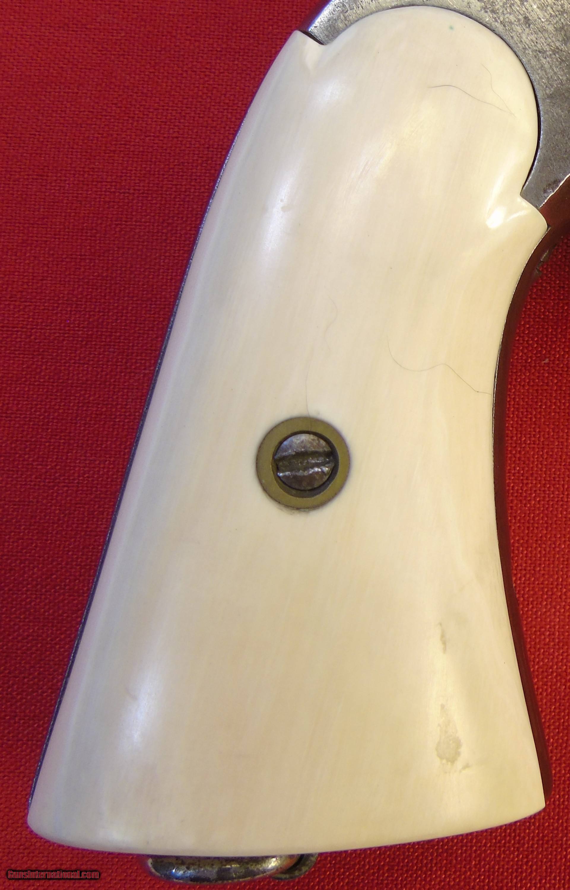 Description: The bore is, amazingly, good and it does function properly. It retains at least 20% of its original nickel finish and the genuine ivory grips are nice. Just a really nice old antique Merwin & Hulbert Pistol. The True calibre of the pistol is 44 M.H.not 44-40. SOLD Antique: Yes |