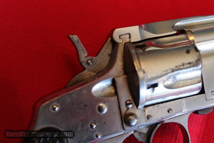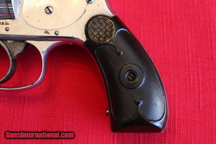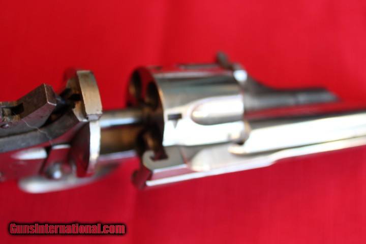 Description: Offered for sale is a really nice MERWIN & HUBERT double action 38 with a scarce FOLDING HAMMER. The action is crisp as new, Really NICE BORE!!! Made circa 1881 with matching serial number 15505 on frame and cylinder. The right grip has a chip out of the bottom. A really nice revolver with condition. Would make a nice addition to any collection- $15 shipping - Personal check or M.O. only- NO PAYPAL- THANKS!!! SOLD Antique: Yes Handgun Caliber: .38 S&W (.38 Colt New Police, .38 Super Police) Manufacturer: Merwin & Hubert Model: Medium Frame Double Action Serial Number: 15505 Barrel Length: 3 1/2 Condition: Excellent Bore Condition: Excellent |