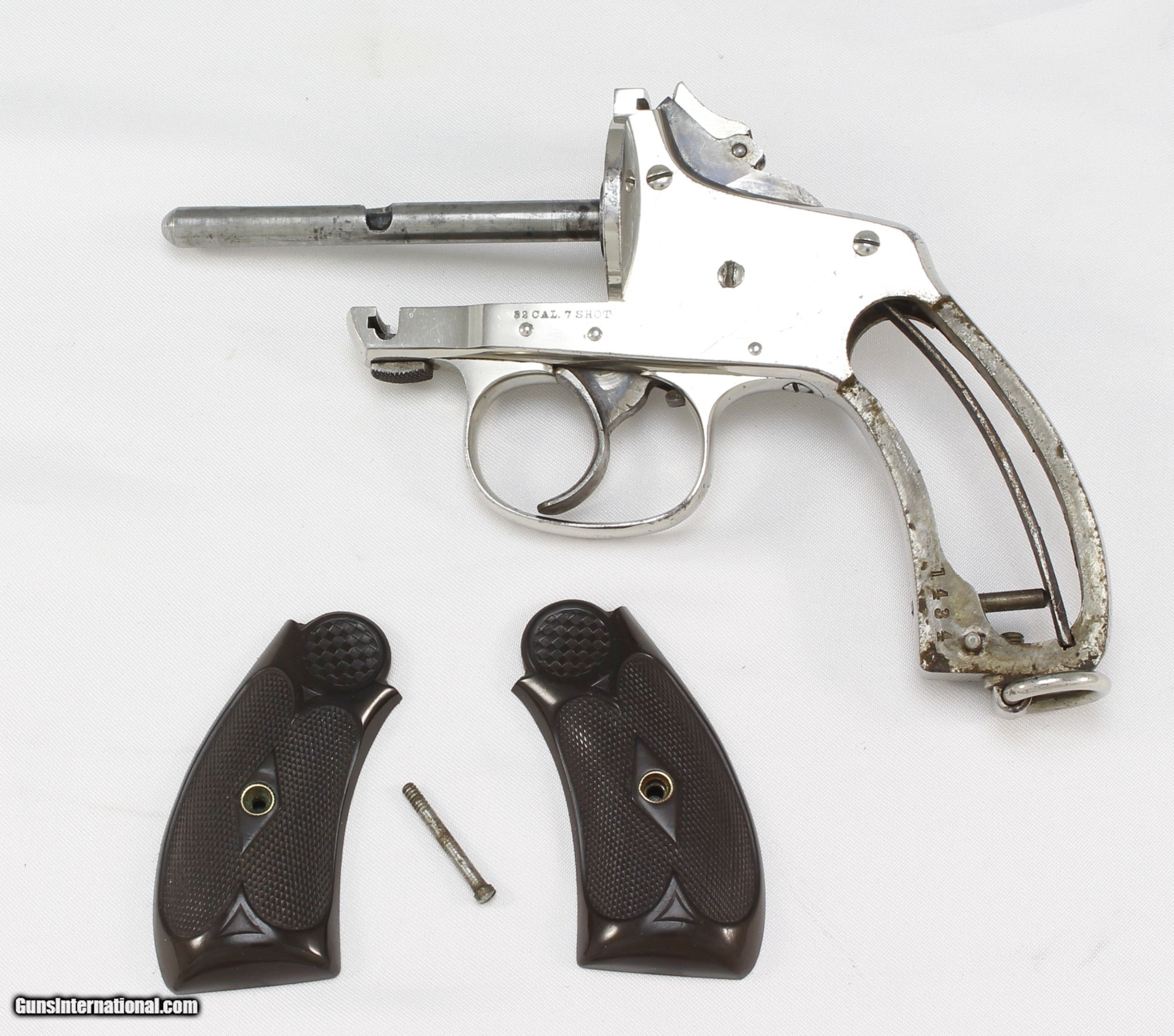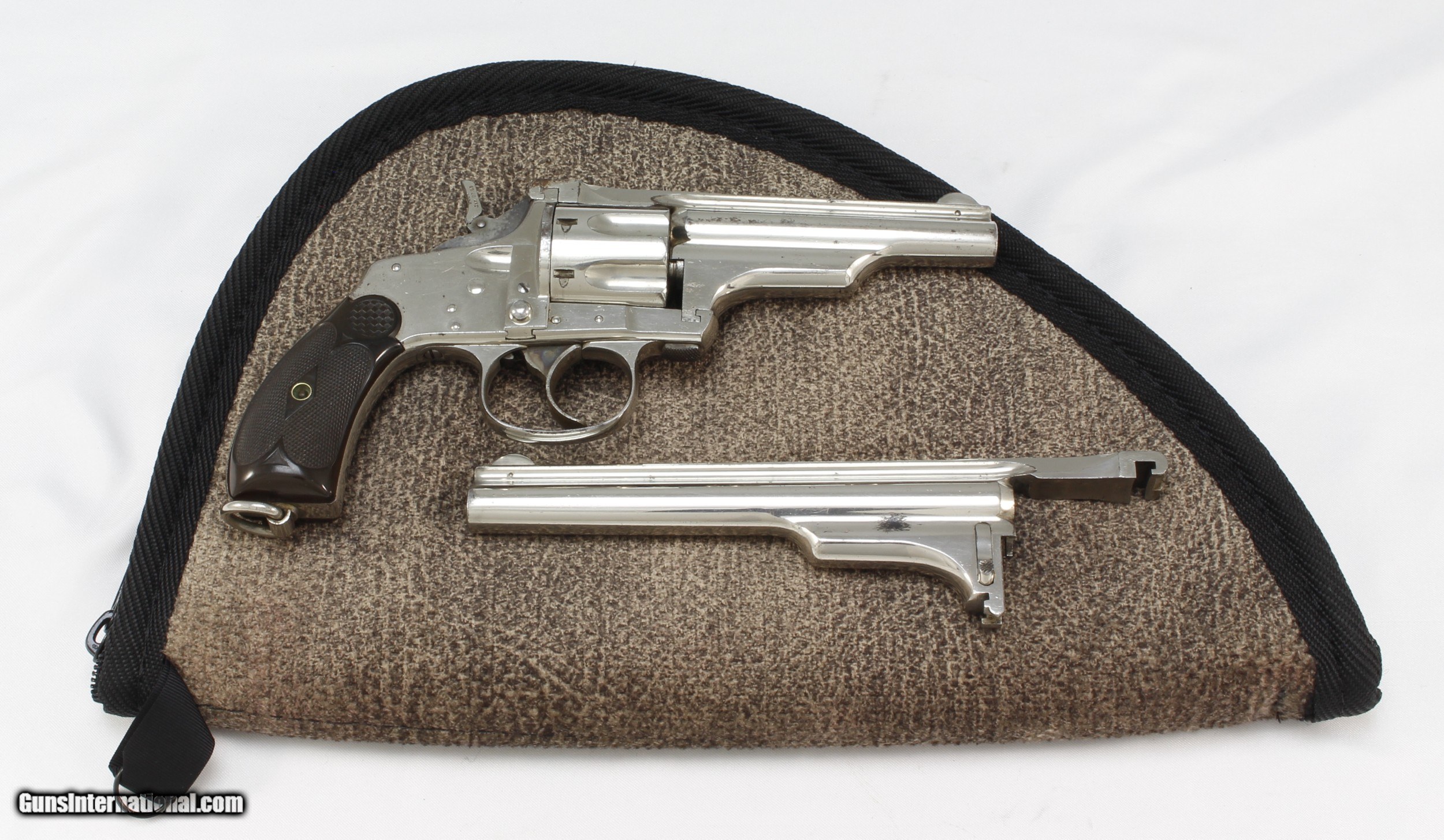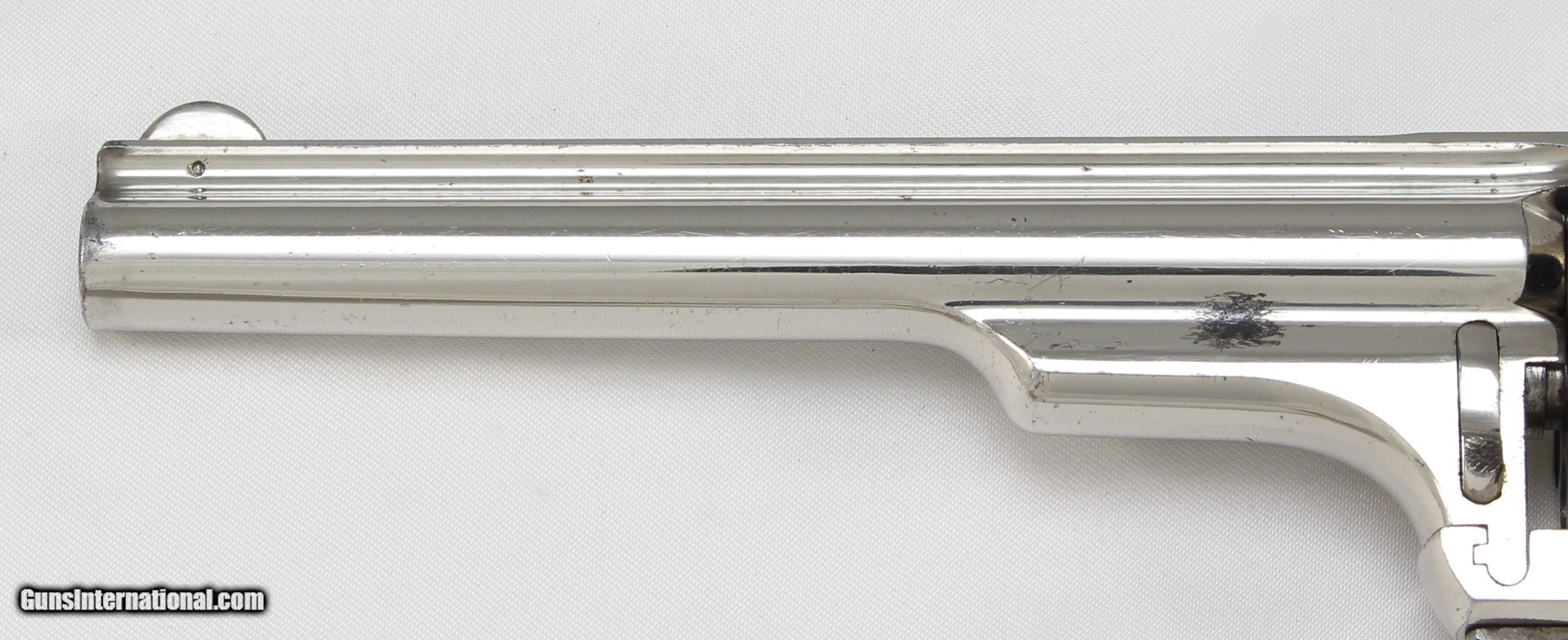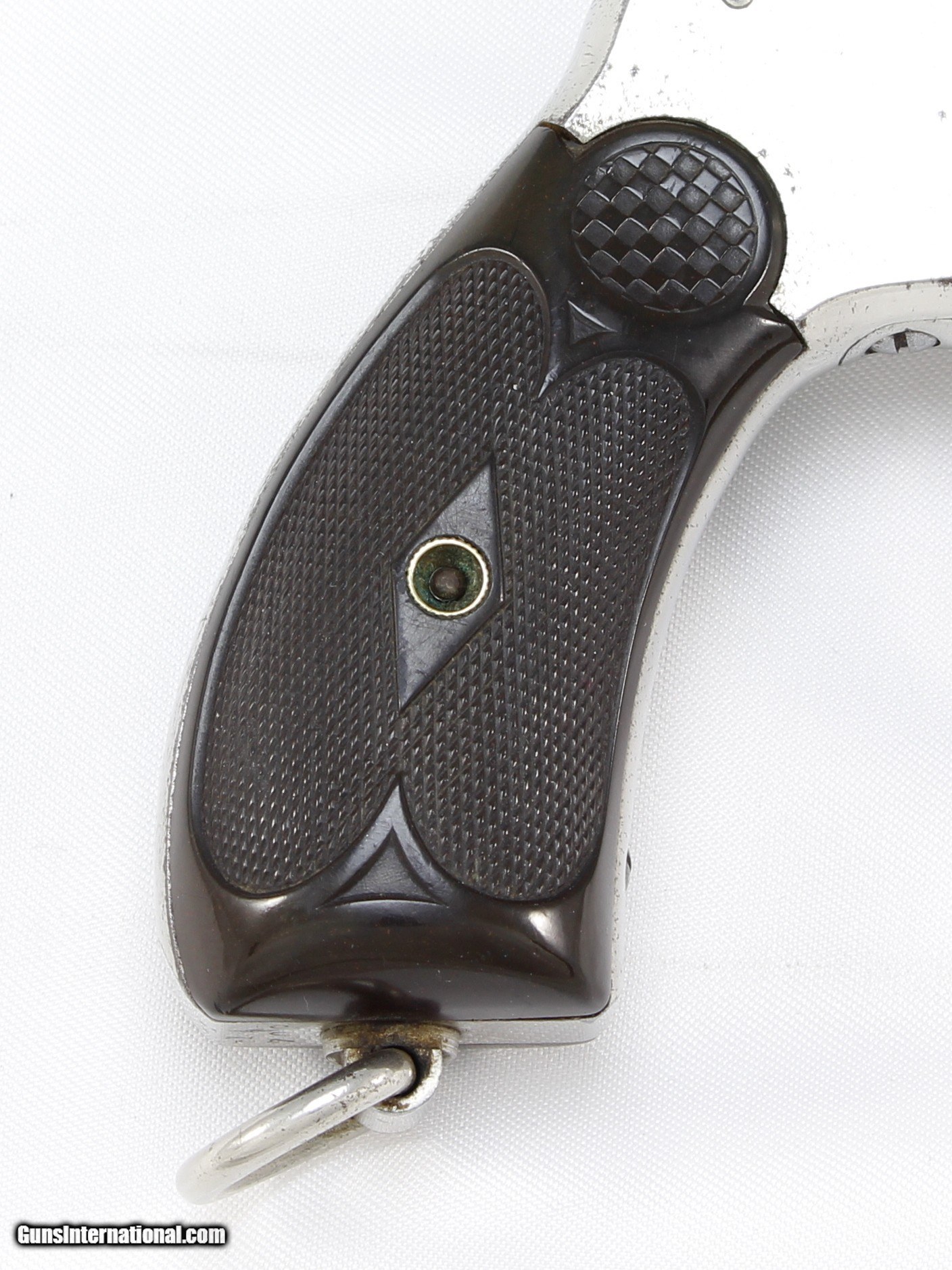 Description: MERWIN HULBERT, NICKEL, 3rd MODEL, "DOUBLE ACTION ONLY", 32 CAL, 4" Barrel, & 6" Barrel, Matching Numbers on all Parts, Including Both Barrels. Mechanically Excellent, Fine Bore,. Hammer Date: January 27, 85. FOLDING HAMMER. NICKEL FINISH RATED 80%, MINUMUM FLAWS. SN#14709, MFG:1885. Ships to Lower 48, W/Insurance: $55.00 Fully Picture Download Available. SOLD Antique: Yes |