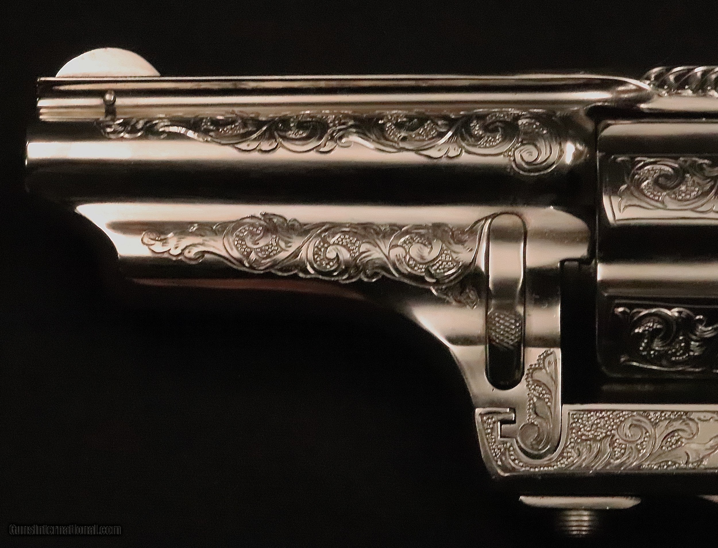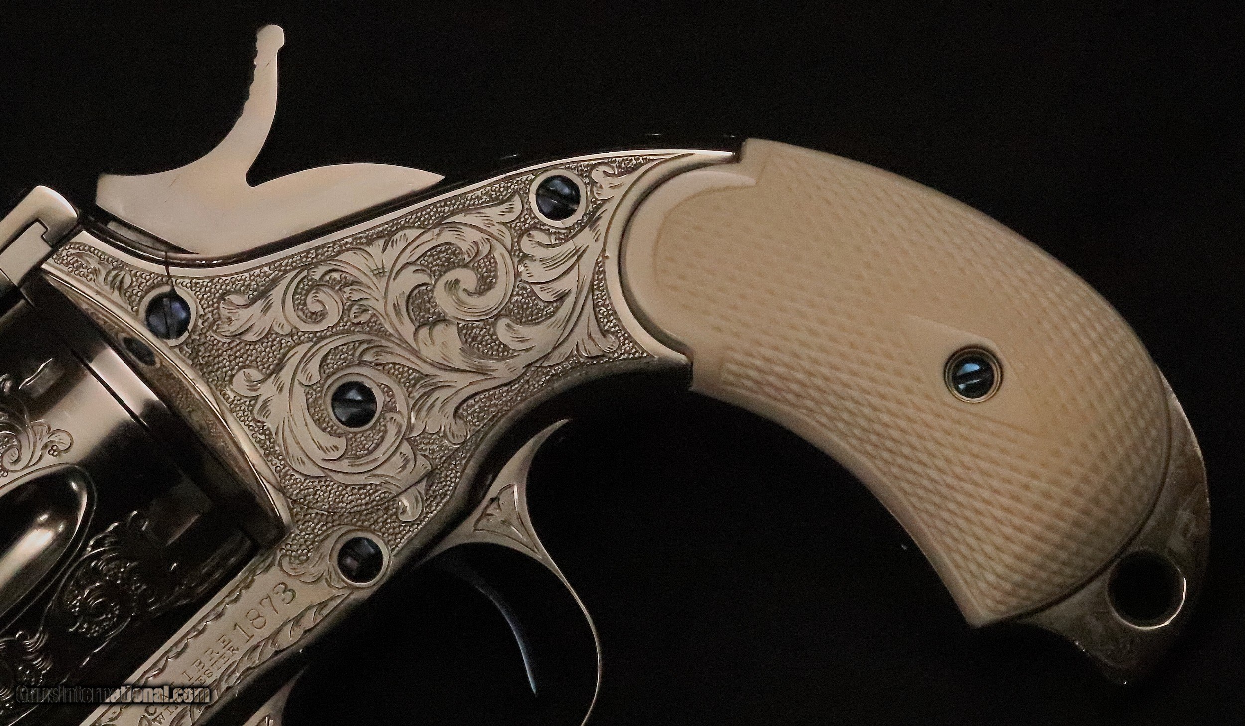 Description: $$$ SIGNIFICANT REDUCTION TO FINAL PRICE.......This Antique Merwin, Hulbert & Co. Pocket Army Single Action Revolver was made c. 1880 – 1883 in Norwich Connecticut by Hopkins and Allen. It was the most technically advanced revolver of it’s time. Cartridges were loaded through a sliding loading gate. Colt and others pivot, and M&H slid down, but no innovation there. Selective Ejection was the key, with the hammer on half cock, the bottom release button would allow the barrel / cylinder assembly to pivot and slide forward. It slid far enough to allow the empty brass to fall away but the added length of a bullet would retain the loaded cartridges. This enabled “topping off” a cylinder as desired. A second lever would permit the barrel / cylinder assembly to slide off the cylinder pin to clean the chambers and barrel. This Revolver has been professionally restored at great expense. It was in very good condition to start with, and then it was engraved with period style scroll engraving. New nickel plating, and fire blued screws and trigger further enhance it. Diamond checkered Ivory grips complete it. The bore has some roughness but has strong lands & grooves, clearly functional if need be. The action is fully functional and flawless, perhaps tuned during restoration. The matching serial number is marked on the frame, under the grip, on the barrel and on the cylinder. This is a beautiful investment grade firearm and a great addition to any Western or Antique gun collection. Serial number 9974. Cal. .44-40 with a 3 ¼” barrel. Antique Firearm. Antique firearms, pre 1899 do not require a Federal License. For purchase, a copy of a Government Issued Identification (Drivers License, Etc), showing date of birth and current address will be required. Beaver Creek Arms TERMS & CONDITIONS Objective: As a collector of 35 years and Licensed Firearms Dealer since 1989 I have a clear definition of a satisfactory transaction. I will be paid as we agreed to, and you will be satisfied with your purchase. My goal is to establish a client list of satisfied repeat customers who will recommend me to other collectors. It’s just that simple. Exiled Saudi princes with secret funds needing change from an over paid purchase need not apply. Notice: ALL Federal, State, & Local firearms laws will be followed. I will take NO shortcuts in the process of a legal sale or transfer, so please don’t ask. SHIPPING: Shipments are made via U.S.P.S. Priority Mail, Insured, with a return receipt. Packing, Shipping and Insurance cost for this handgun is $50.00. Checks are to be made out to: Steve Clark Mailed to: 380 Beaver Creek Rd, Dillsburg PA 17019 Availability: All items are in stock and available for immediate shipment. Please call or email and an Item will be held up to a week with your Name, Address, & Phone Number. Items marked Reserved are being held for awaiting payment or on layaway. GUARANTEE: Your complete satisfaction is assured, see objective above. If you are not satisfied, please contact me within 3 days of receipt. Please don’t fire the weapon, safety, function and accuracy are NOT Guaranteed. Any weapon offered by Beaver Creek Arms is never test fired nor is there any representation the gun is functional and safe to fire. These guns are sold for collectors and only represented as used firearms that must be checked by a competent person, observe all the necessary safety precautions prior to attempting to load and fire one of these weapons RETURNS: Returns must be made within 3 days of receipt. They must be received in exactly the same condition with no parts exchanged. If it has been altered, damaged, or fired, a refund will not be made. Packing, shipping and insurance cost will not be refunded. All layaway purchases are returnable for merchandise credit only. PAYMENT: Bank check, Personal check, and Money Orders are preferred. Visa and MasterCard are accepted with a 4% processing fee. LAYAWAYS: A 20% deposit is required. Balance is due in 30 days. Deposits are non-refundable and are forfeited after 40 days. Layaway sales are returnable for merchandise credit only. SALES TAX: Pennsylvania state sales tax is 6% for in state purchases. The payment of other states sales tax, if applicable, for shipped items is the buyers responsibility. DISCREET: Client information will remain Confidential. Your privacy is protected. SOLD Antique: Yes |