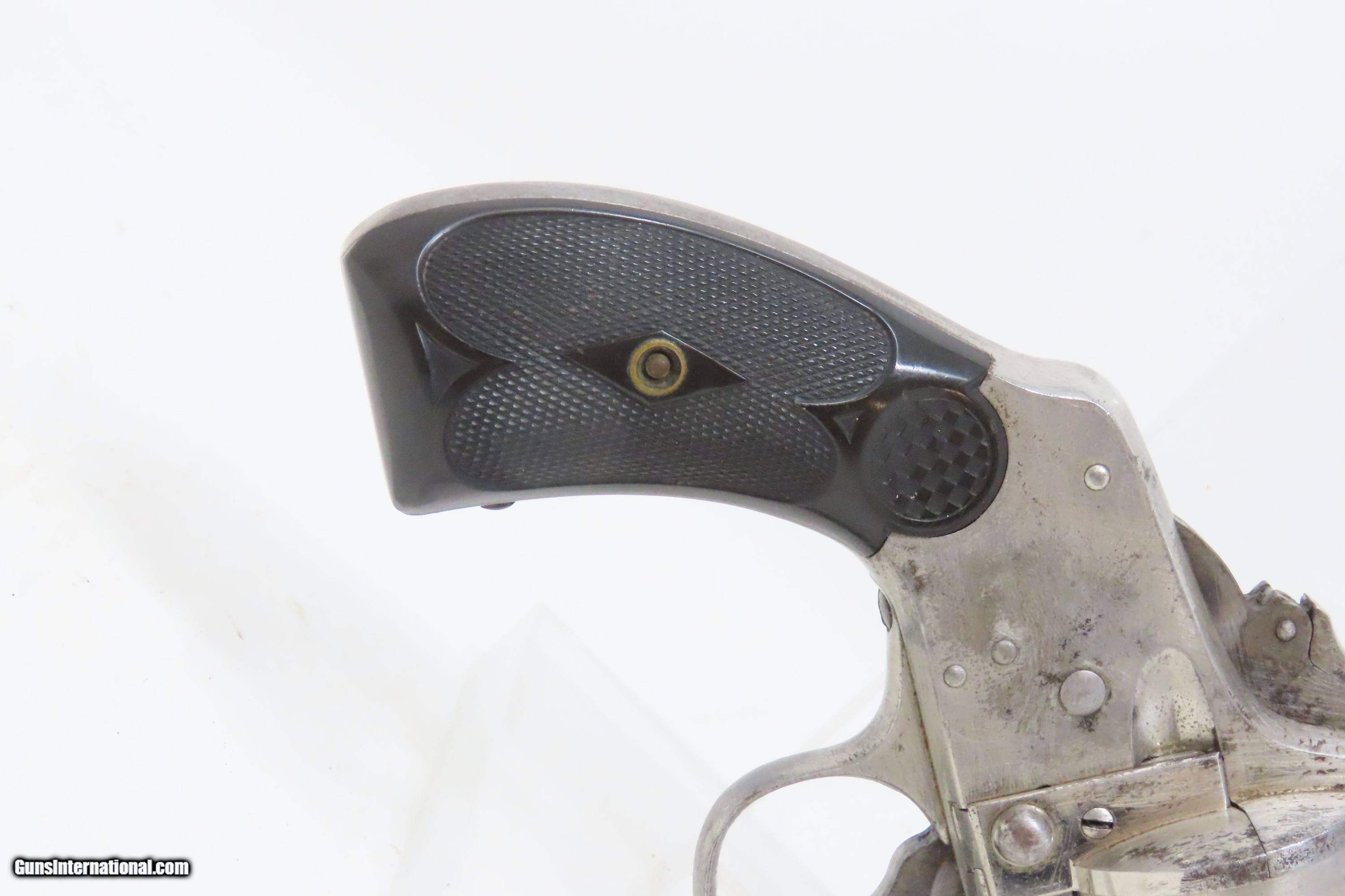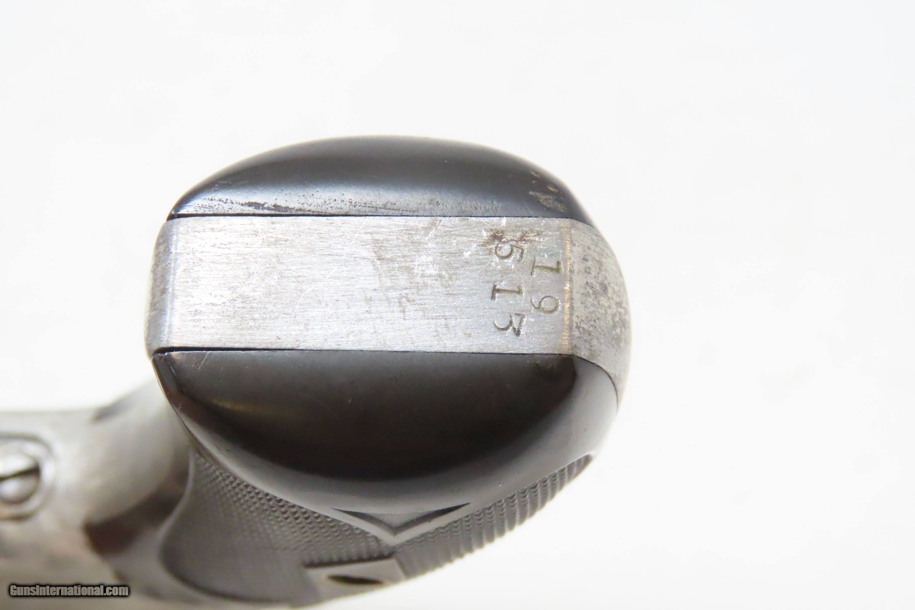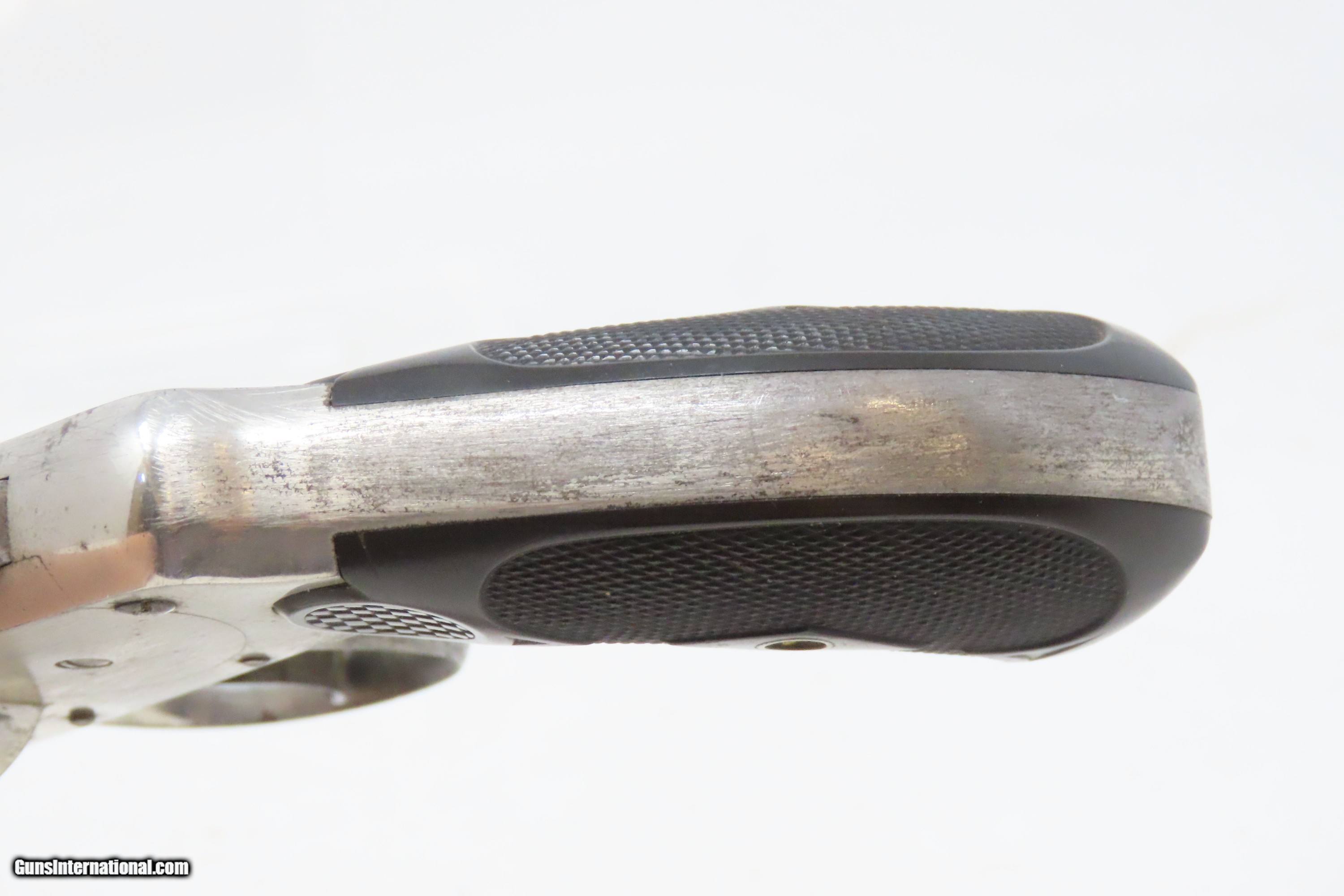 Description: NICE Antique MERWIN, HULBERT & Co. Medium Frame .38 DOUBLE ACTION Revolver DESIREABLE Pocket Revolver From the 1880s Here we present an antique Medium Frame Merwin, Hulbert & Company Double Action Pocket Revolver, made circa the 1880s exclusively by Hopkins & Allen in Norwich, Connecticut. A plus feature of this revolver was the method of ejection. Loading was achieved by placing the hammer at half-cock and sliding down the loading gate to single feed cartridges. If one wanted to unload the gun, they could simply push the latch back on the bottom of the gun, twist the barrel and cylinder assembly and pull forward. Only the empty brass would come out as the space created was shorter than a loaded cartridge, enabling the shooter to top off his gun and keep rounds available. An ingenious method was designed to achieve this that included a machined cut on the cylinder axis pin and a ledge on the breech face that kept the cartridge rims underneath. This system was also advantageous for forcefully removing stuck cartridges, providing lots of mechanical advantage. These revolvers are considered today to be some of the best made of the late 19th Century and the Wild West, even better in some minds than similar Colts and Smith & Wessons. These pistols certainly tended to have different, very well-thought features than their competition, and they were extremely well-made. Interestingly, Bruno Kirby carried a Merwin, Hulbert & Co. revolver during his role in “The Godfather Part II” back in 1974. The overall condition is fine. Original nickel finish is preserved. The action is strong, although a single cylinder does not lock up properly and skips to the next. Sharp, rifled bore. legible markings. Numbers match. both grips are in fine shape with light handling wear. Own the original! This is a legitimate antique and not a reproduction. Barrel is 3-1/2 inches. Caliber: .38 Centerfire Overall condition as seen in photos. Very Fast. Very Safe. FREE SHIPPING WORLDWIDE. Delivered directly to your door by express mail! Guaranteed AUTHENTIC & Includes CERTIFICATE OF AUTHENTICITY. ancestryguns $1500 #233896 SOLD Antique: Yes |