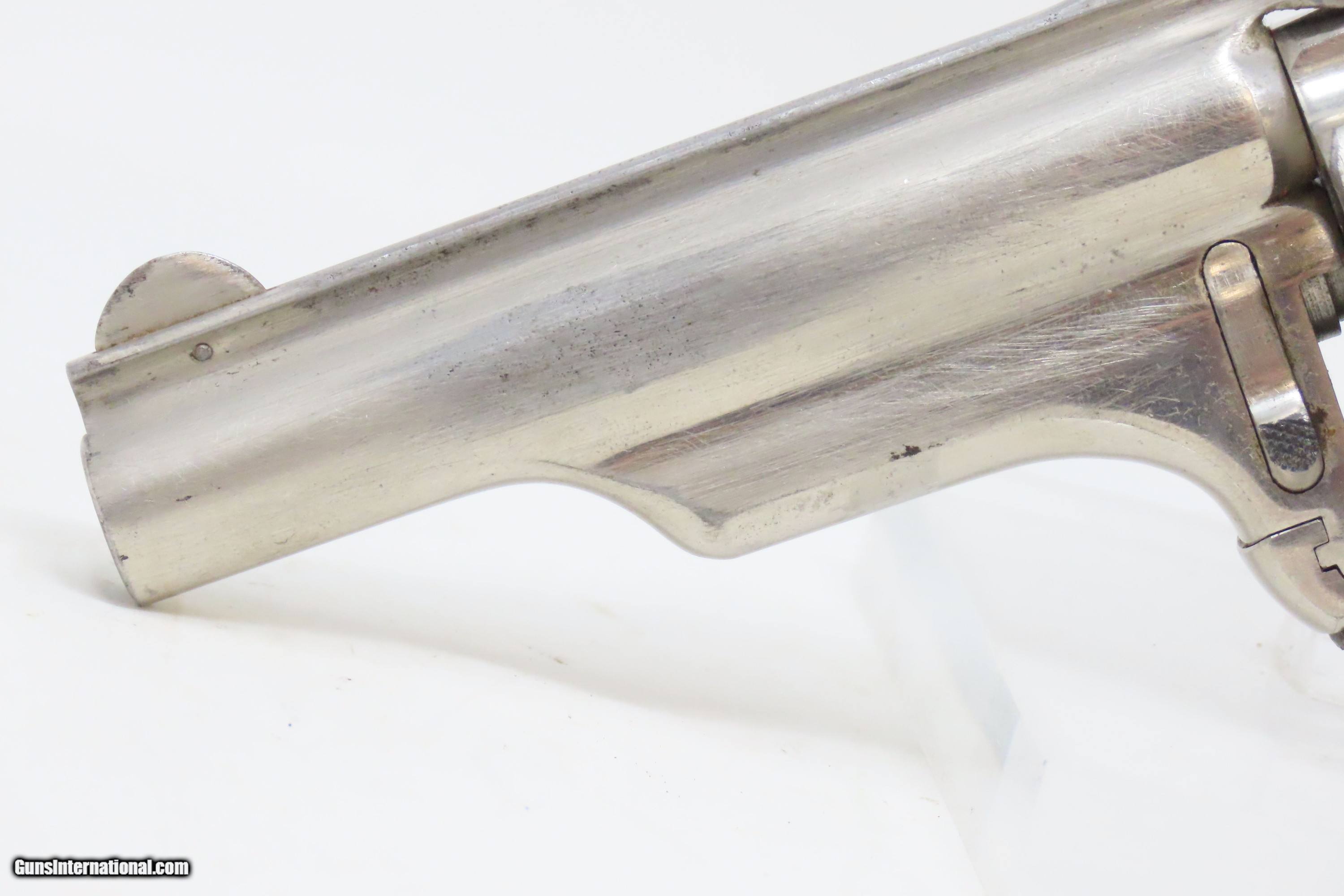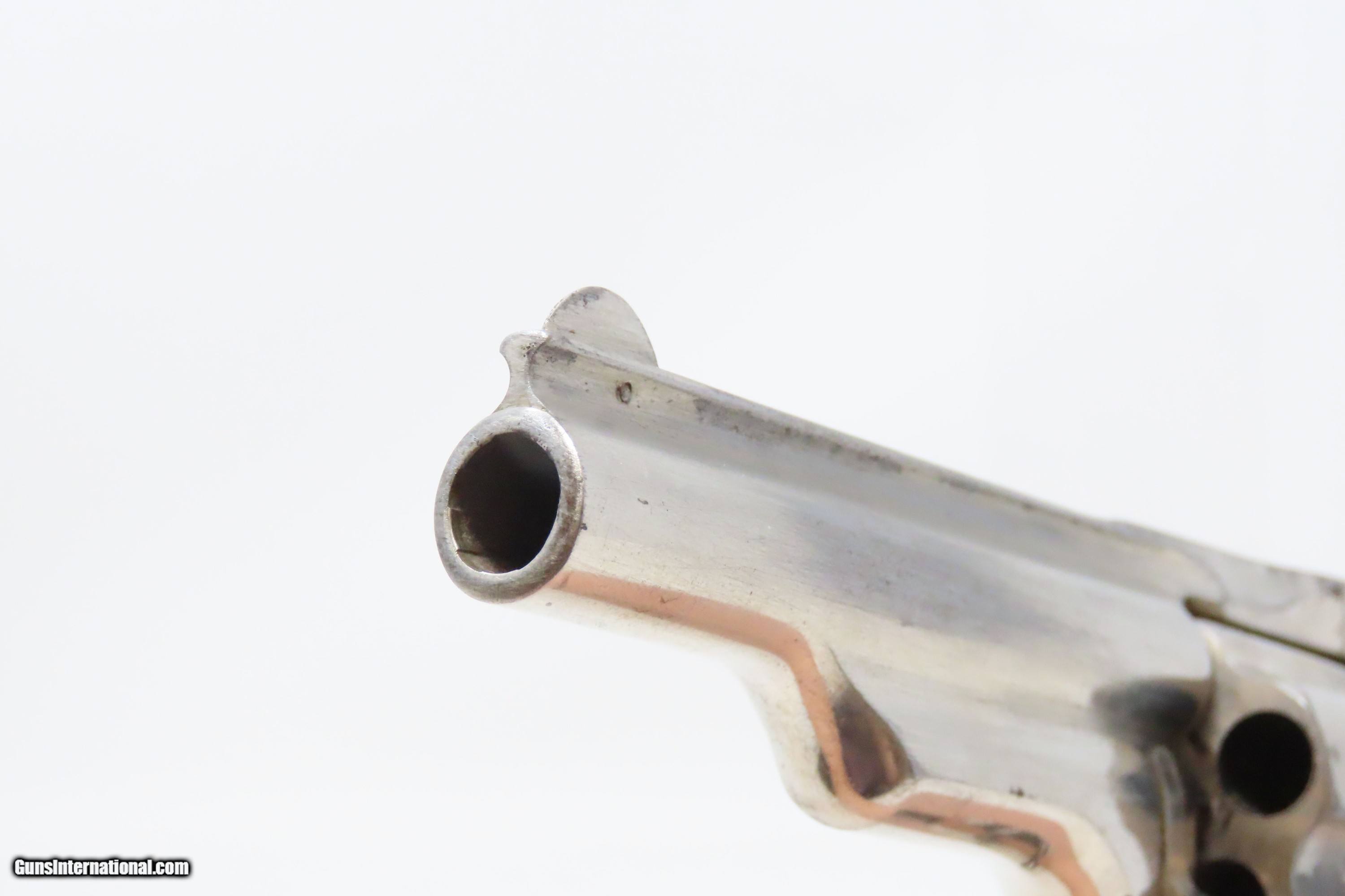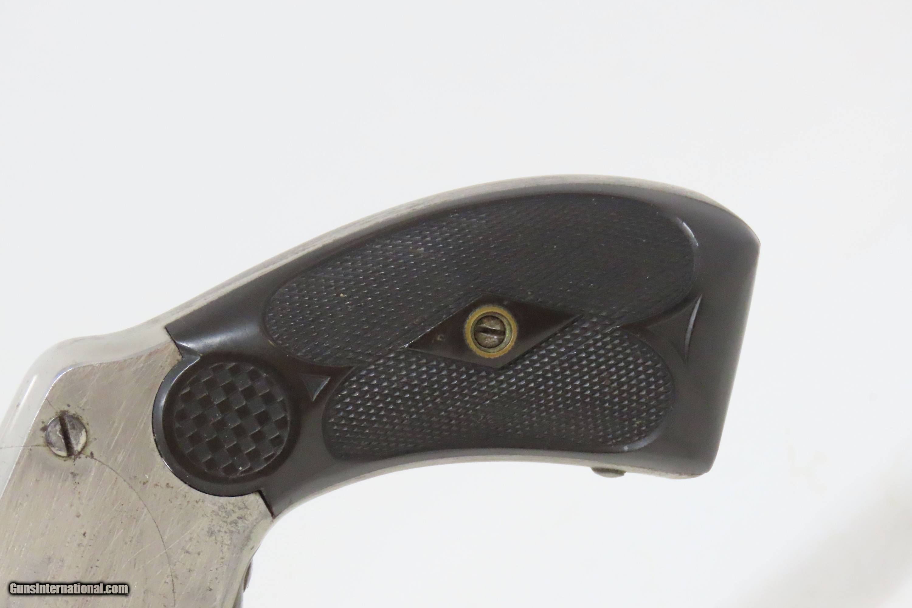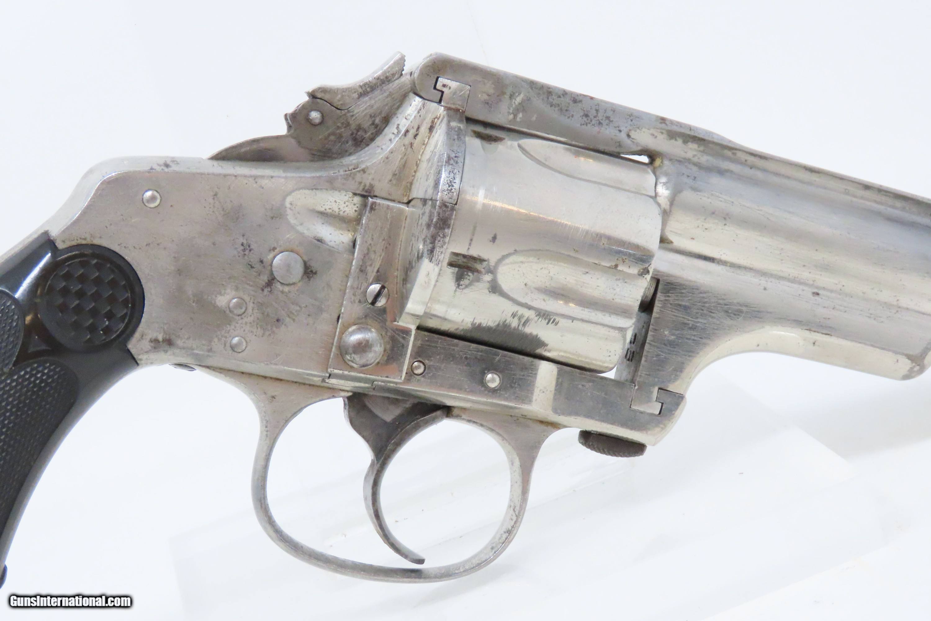 Description: NICE Antique MERWIN, HULBERT & Co. Medium Frame .38 DOUBLE ACTION Revolver DESIREABLE Pocket Revolver From the 1880s Here we present an antique Medium Frame Merwin, Hulbert & Company Double Action Pocket Revolver, made circa the 1880s exclusively by Hopkins & Allen in Norwich, Connecticut. A plus feature of this revolver was the method of ejection. Loading was achieved by placing the hammer at half-cock and sliding down the loading gate to single feed cartridges. If one wanted to unload the gun, they could simply push the latch back on the bottom of the gun, twist the barrel and cylinder assembly and pull forward. Only the empty brass would come out as the space created was shorter than a loaded cartridge, enabling the shooter to top off his gun and keep rounds available. An ingenious method was designed to achieve this that included a machined cut on the cylinder axis pin and a ledge on the breech face that kept the cartridge rims underneath. This system was also advantageous for forcefully removing stuck cartridges, providing lots of mechanical advantage. These revolvers are considered today to be some of the best made of the late 19th Century and the Wild West, even better in some minds than similar Colts and Smith & Wessons. These pistols certainly tended to have different, very well-thought features than their competition, and they were extremely well-made. Interestingly, Bruno Kirby carried a Merwin, Hulbert & Co. revolver during his role in “The Godfather Part II” back in 1974. The overall condition is fine. Original nickel finish is preserved. The action is strong, although a single cylinder does not lock up properly and skips to the next. Sharp, rifled bore. legible markings. Numbers match. both grips are in fine shape with light handling wear. Own the original! This is a legitimate antique and not a reproduction. Barrel is 3-1/2 inches. Caliber: .38 Centerfire Overall condition as seen in photos. Very Fast. Very Safe. FREE SHIPPING WORLDWIDE. Delivered directly to your door by express mail! Guaranteed AUTHENTIC & Includes CERTIFICATE OF AUTHENTICITY. ancestryguns $1500 #233896 SOLD Antique: Yes |