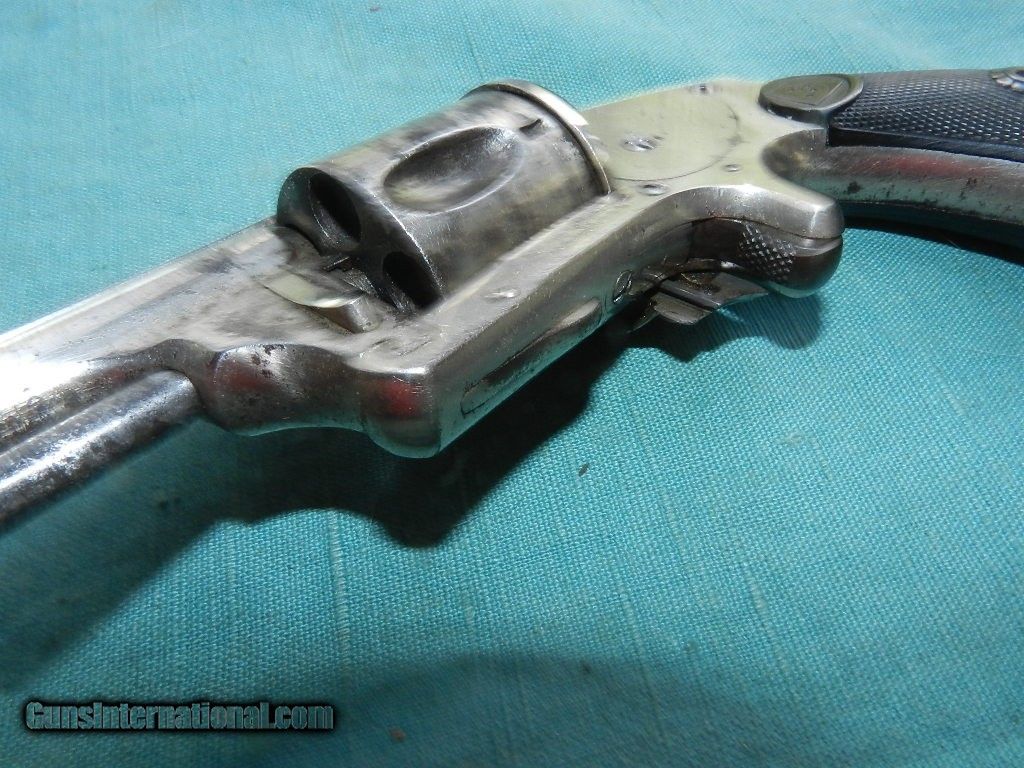 Description: Good working old West revolver in .38 S&W black powder cartridge, with a 3 1/2" round barrel with a decnt bore od good rifling and patches of surface corrosion, not pitted-out. Will spin a bullet good. The gun indexes and loxks up tight. The exterior metal where the nickle has worn away is dark grey and there may patches of finger print shallow salt and pepper pits Last paptn date on the barrel is 1877, and all markings are clearly seen. To open the action the latch on the bottom of the frame is pushed in and then the left side latch also pushed in and then the action slides up to the left , but the hammwr should be at half cock too. A true old West gun of the 1880 era.This is antique unless your state calls it modern. When buying a gun always have it examined by a competent gunsmith before shooting. To buy a gun from me you must get a direct email for me, with details, and shipping cost. We don’t have a web site .I prefer money orders or a check. Item ships when funds come in. I try to keep guns affordable, which means I make less money than most dealers. You won’t get altitude sickness, or nose bleed, with my prices! I consistently have the best selection of older guns If you attempt to buy, you must still contact us for details . Best to email to buy. Sometimes a local person can stop buy and purchase before the gun is removed. Sometimes not home to get calls. Some guns are required shipment to a gun dealer near you for a transfer to you when it arrives. Otherwise many older or black powder guns ship to your door. With the widest selection of older guns at great prices, We don’t have a store, and sell on the internet only. I’m easy to get along with. Thank You. SOLD Antique: Yes |