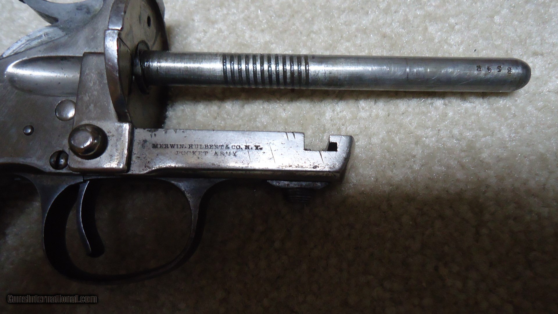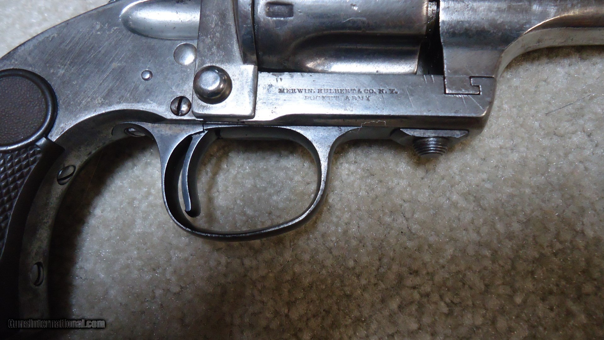 RARE MERWIN, HULBERT & CO. SINGLE ACTION POCKET ARMY .44-40 REVOLVER WITH 3 ½” BARREL C.1876-1880s