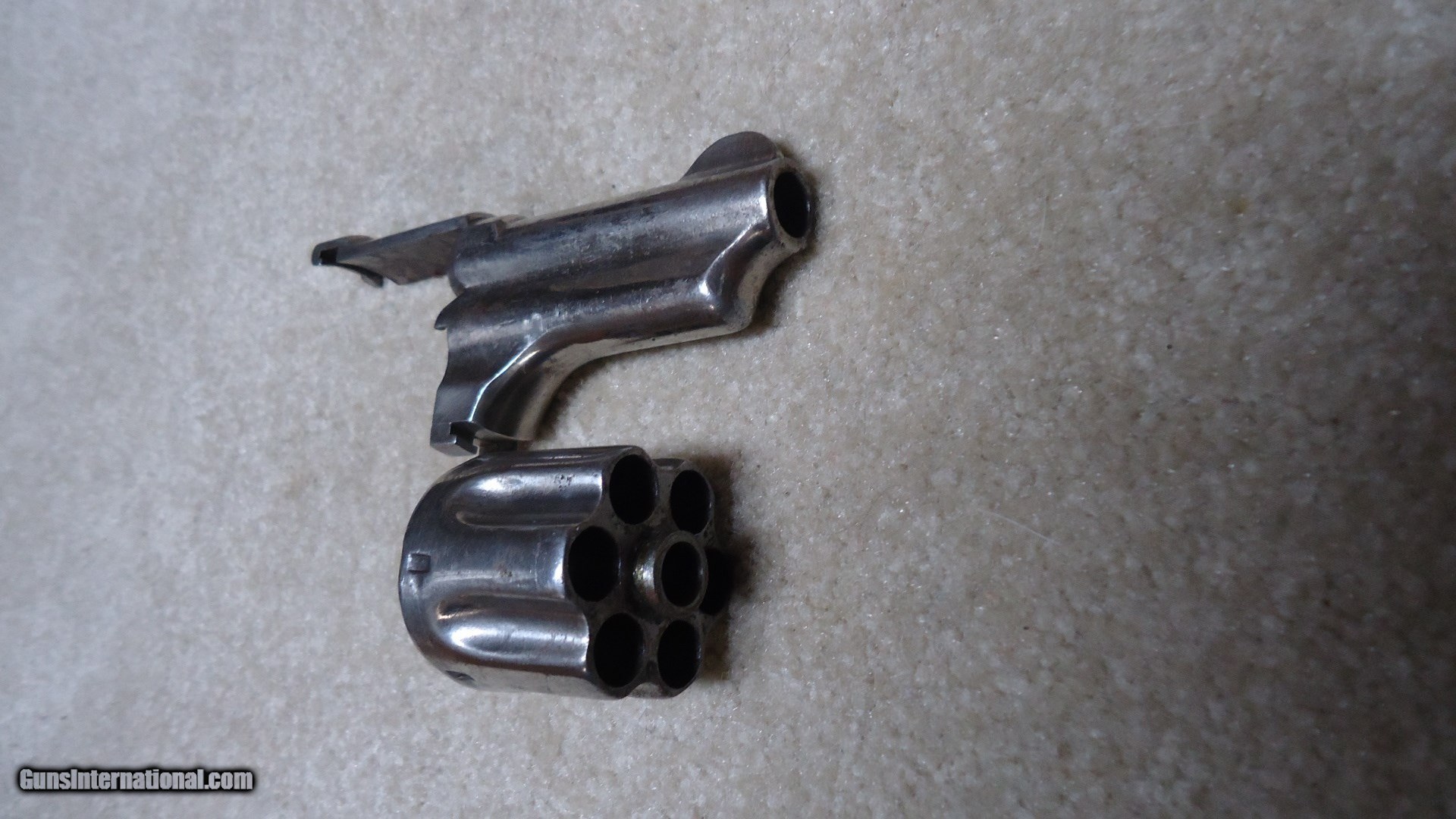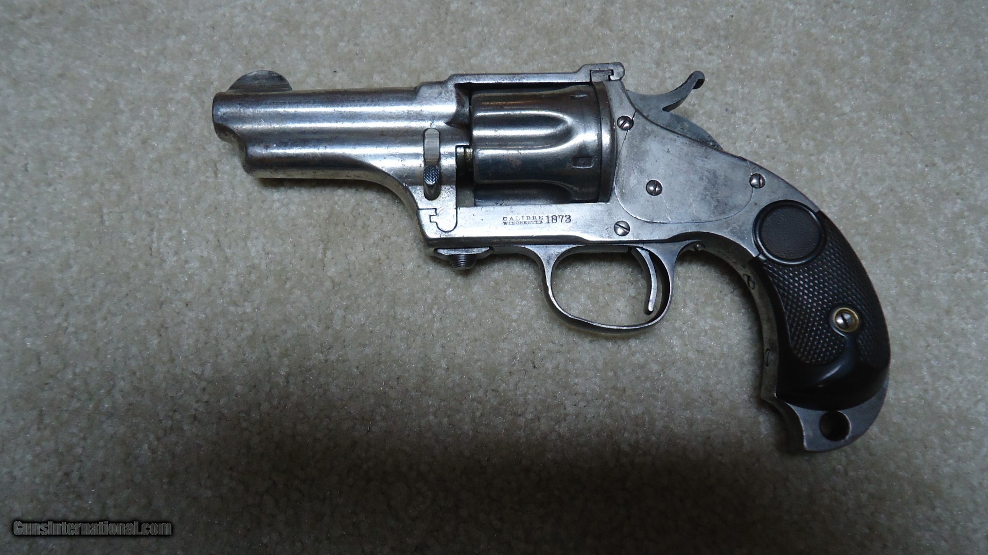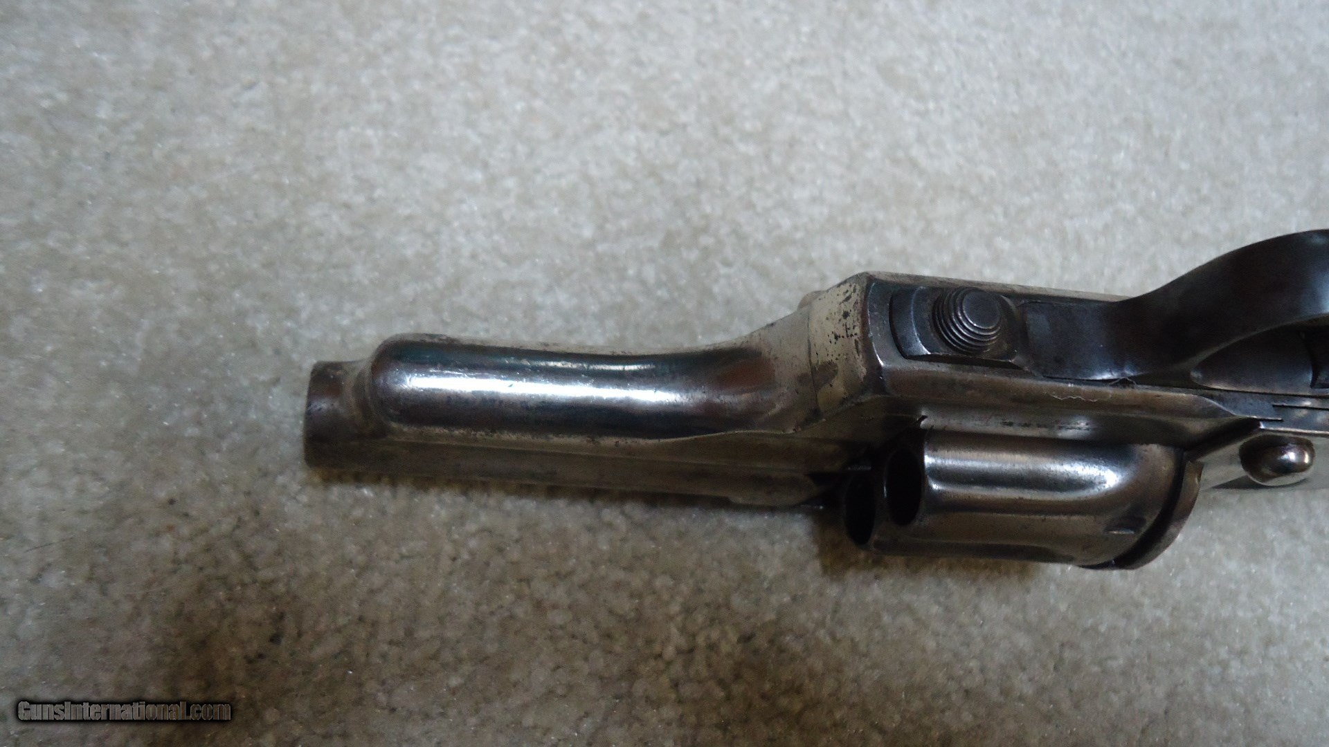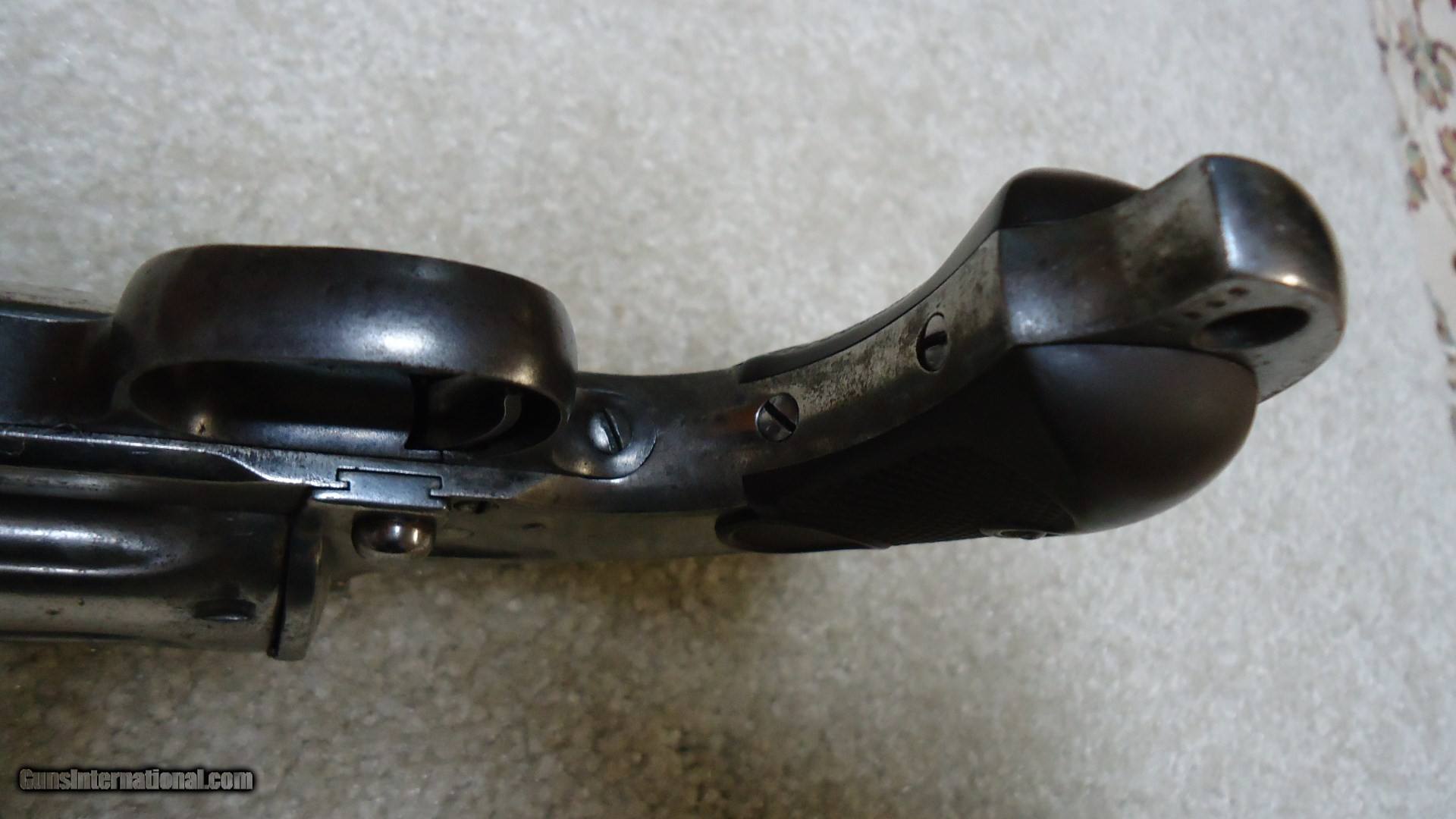 Description: RARE MERWIN, HULBERT & COMPANY SINGLE ACTION POCKET ARMY .44-40 REVOLVER WITH 3 ½” BARREL, MADE 1876-1880s. Most of these that I have seen over the years have been in much used and often abused condition, this one is in much finer condition than normally encountered. Further, it has the scarce and desirable marking on the right side of the frame, “MERWIN, HULBERT & CO. N.Y.” over “POCKET ARMY.” According to Flayderman’s Guide (unfortunately the latest edition is 11 years old now and since Norm Flayderman’s passing will probably be the last updated edition- too bad, this is still the best resource for antique firearms) this “Pocket Army” marking is worth a 20% to 40% premium. Left side of frame correctly marked for the .44-40 caliber, “CALIBRE WINCHESTER 1873.” The barrel has the usual Hopkins & Allen markings with patent dates. Nickel plated finish was standard on this model and this example shows fine nickel interspersed with fairly bright metal where the nickel has peeled- this makes it difficult to determine exactly how much nickel remains, but gives the entire handgun an even and attractive appearance. I would estimate at least half of the nickel remains and possibly a good bit more. The original hard rubber grips are excellent and all numbers match- I believe the number on the “knuckle extension” is the serial number with all other parts stamped with a matching assembly number. All screws are excellent and all markings are fine with nice aged blue on the trigger guard. This unique action revolver was considered ahead of its time and was of superb quality. By putting the hammer to half cock, the sliding latch under the frame ahead of the trigger guard could be slid forward. This released the barrel and cylinder. Turning the barrel clockwise and pulling forward ejected all cartridges simultaneously. Then, pressing the spring loaded latch on the left side of the barrel assembly allowed for the barrel and cylinder to come completely off the frame for reloading or cleaning. Truly an amazing design! These were also made in double action which are less rare and desirable than the single action variety like this one. Fine mechanically with near excellent bore, this is a really fine example of one of the more interesting high quality Old West handguns that competed with the big Colt and S&W revolvers of the day. SOLD Antique: Yes Manufacturer: MERWIN, HULBERT & COMPANY Model: POCKET ARMY, SINGLE ACTION Serial Number: 5xxx Caliber Info: .44-40 Condition: FINE+ Barrels: 3 1/2 Finish: NICKEL |