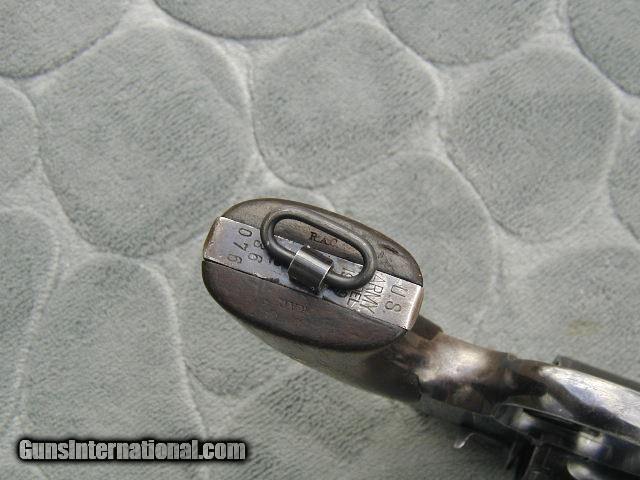 Description: THIS IS AN EXCELLENT COLT MODEL 1909 U.S. REVOLVER. IT RETIANS 90% OF IT'S ORIGINAL HIGH POLISH BLUE, FIRE BLUE ON MANY SCREWS AND TRIGGER. THE ACTION IS TIGHT, TIMING AND BORE ARE PERFECT. THE GRIPS ARE IN NICE SHAPE, NUMBERED TO THE GUN AND BOTH R.A.C. PROOFED. CLEAR MARKINGS, C&R OK SOLD Curio/Relic: Yes |