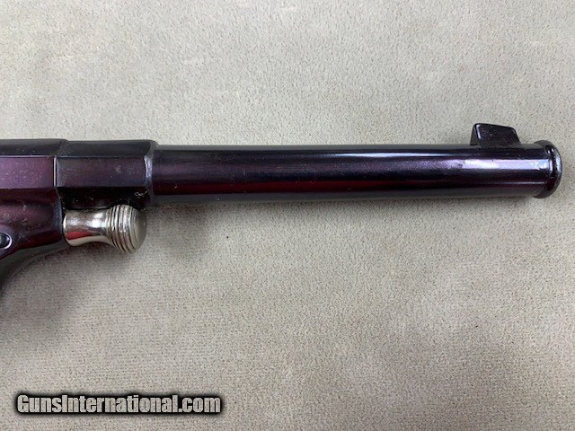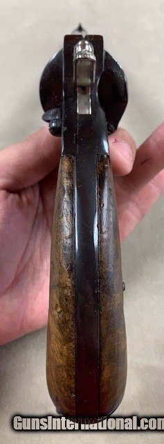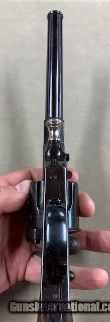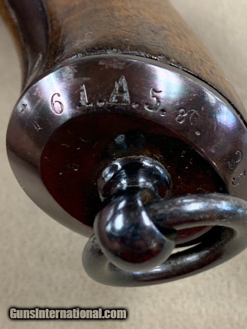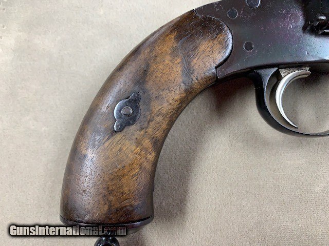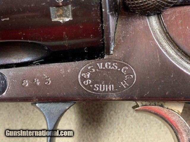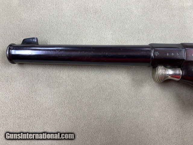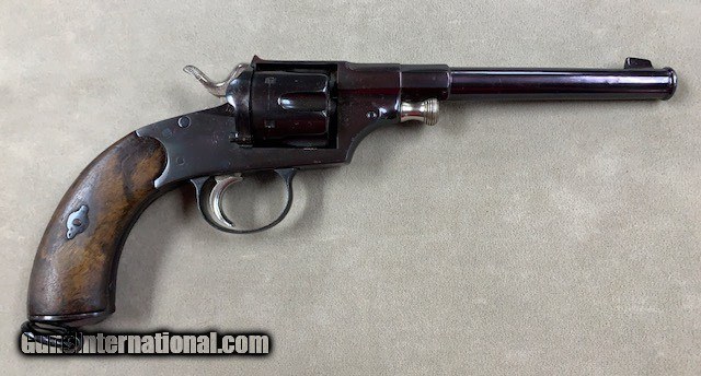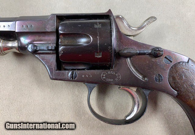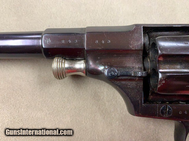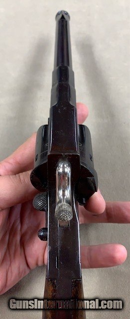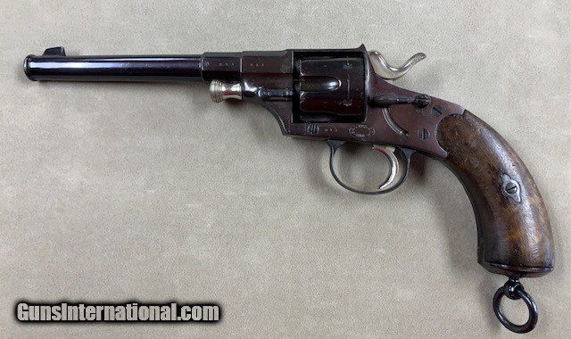 Description: An early German Military Revolver, a model 1879 Reichsrevolver in 10.55 mm caliber. Unfortunately, this rare revolver was refinished some years ago and is a bit purple in various areas due to the wrong temperature hot bluing solution that was used. No matter it is still a good specimen and appears all original. As an antique it may be shipped to anyone over 21 who is not in a prohibited area or circumstance. A rather rare representative revolver and one that is priced according to condition. SOLD Antique: Yes Handgun Caliber: 10.6×25mmR German Ordnance |