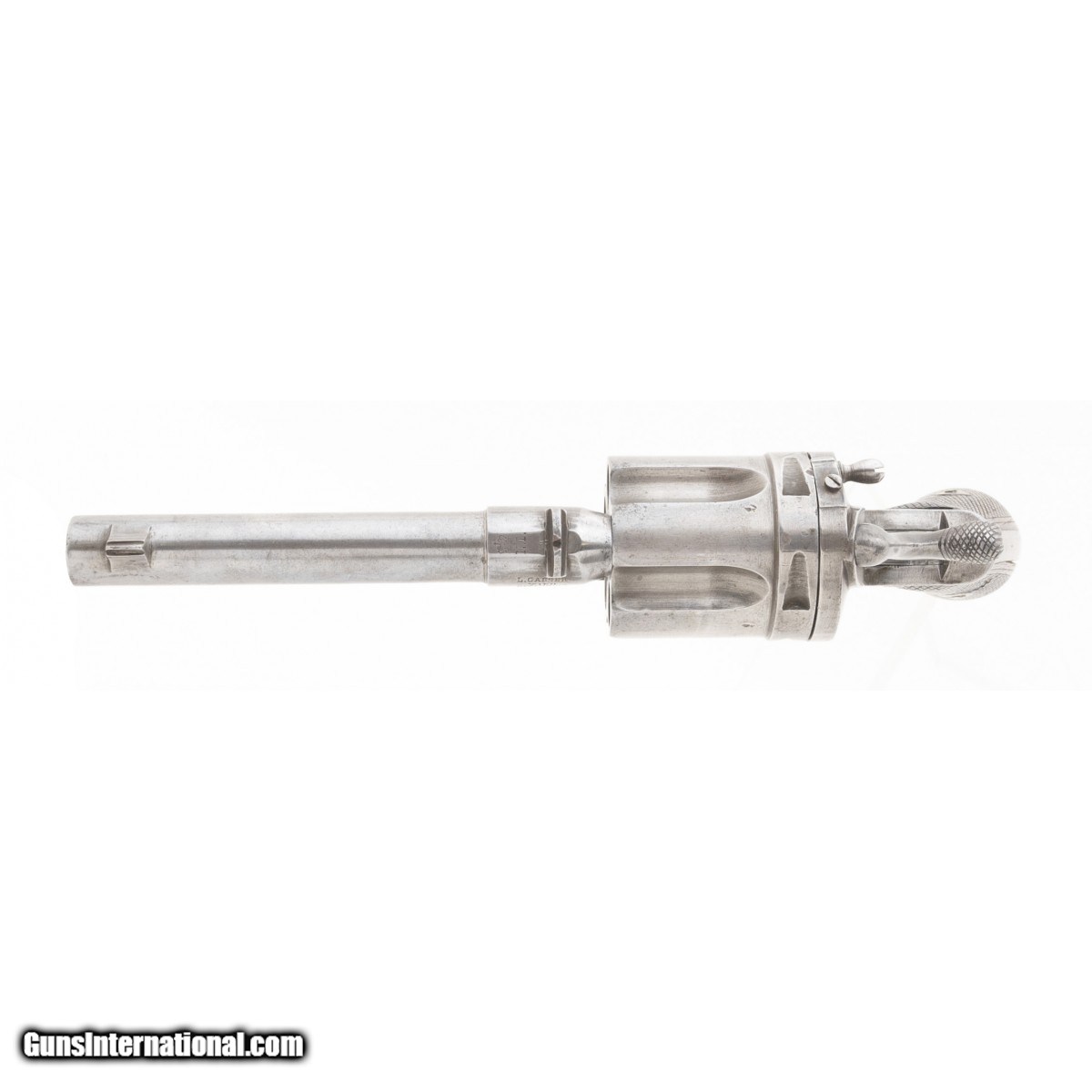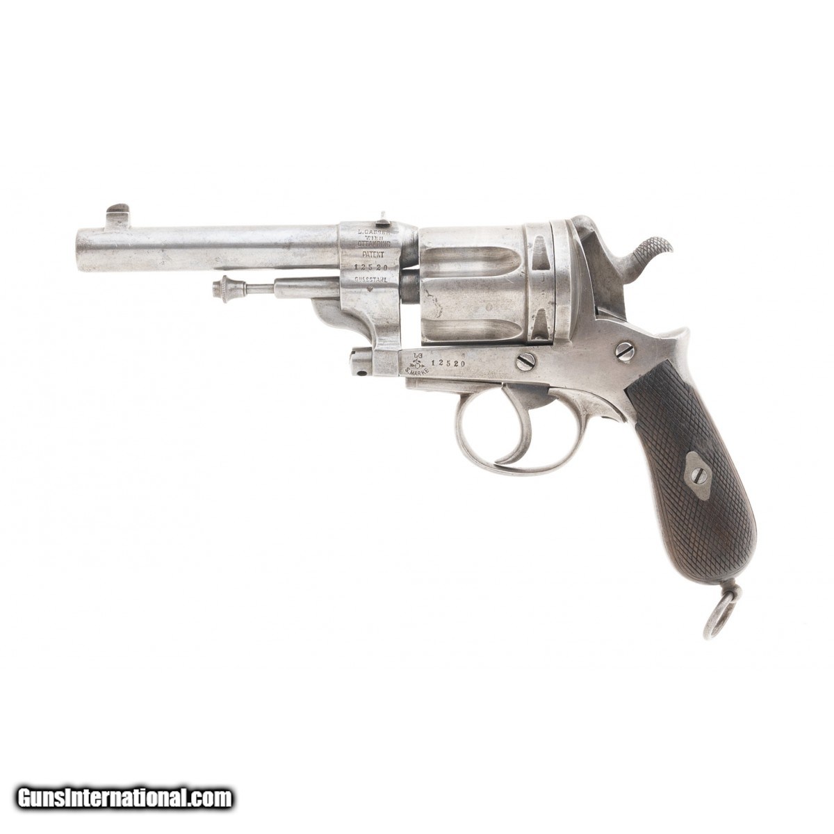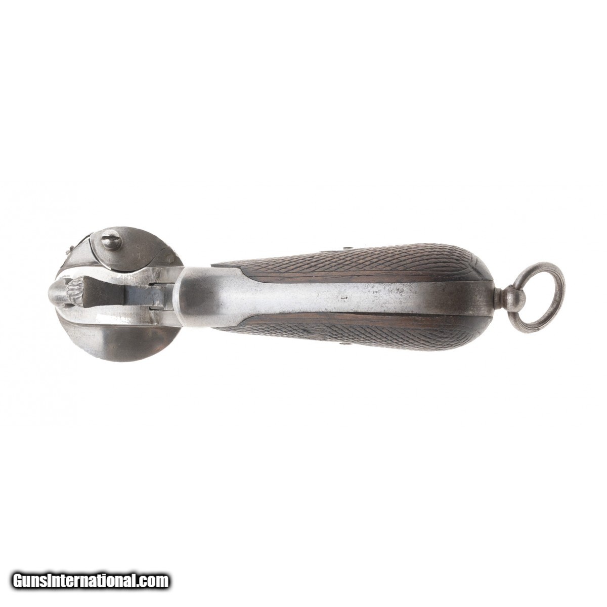 Description: " This Montenegro Model 1870 Gasser revolver is marked with a crown over N.I. on the top of the barrel just forward of the rear sight. This stands for Nikita I, King of Montenegro. The overall length is approx. 10.5"". The 5"" round 11.2mm caliber barrel has an excellent bore with bright strong rifling. The left side of the barrel lug is marked L. GASSER over WEIN (Vienna) over OTTAKRING over PATENT over the serial number, 12520, over GUSSSTAHL over a double eagle Austrian proof. The left side of the frame is stamped LG over an apple with an arrow through it over S.MARKE. All metal is smooth and bright with very minor staining. The checkered wood grips are very good with a use bruise on the left and with no cracks or chips. The grip screw is a replacement. The action, which has a very strong mainspring, functions correctly in single and double action. This fine example of a scarce Montenegro Model 1870 pistol would be a great fit in any early European military cartridge revolver collection. SOLD Antique: Yes |