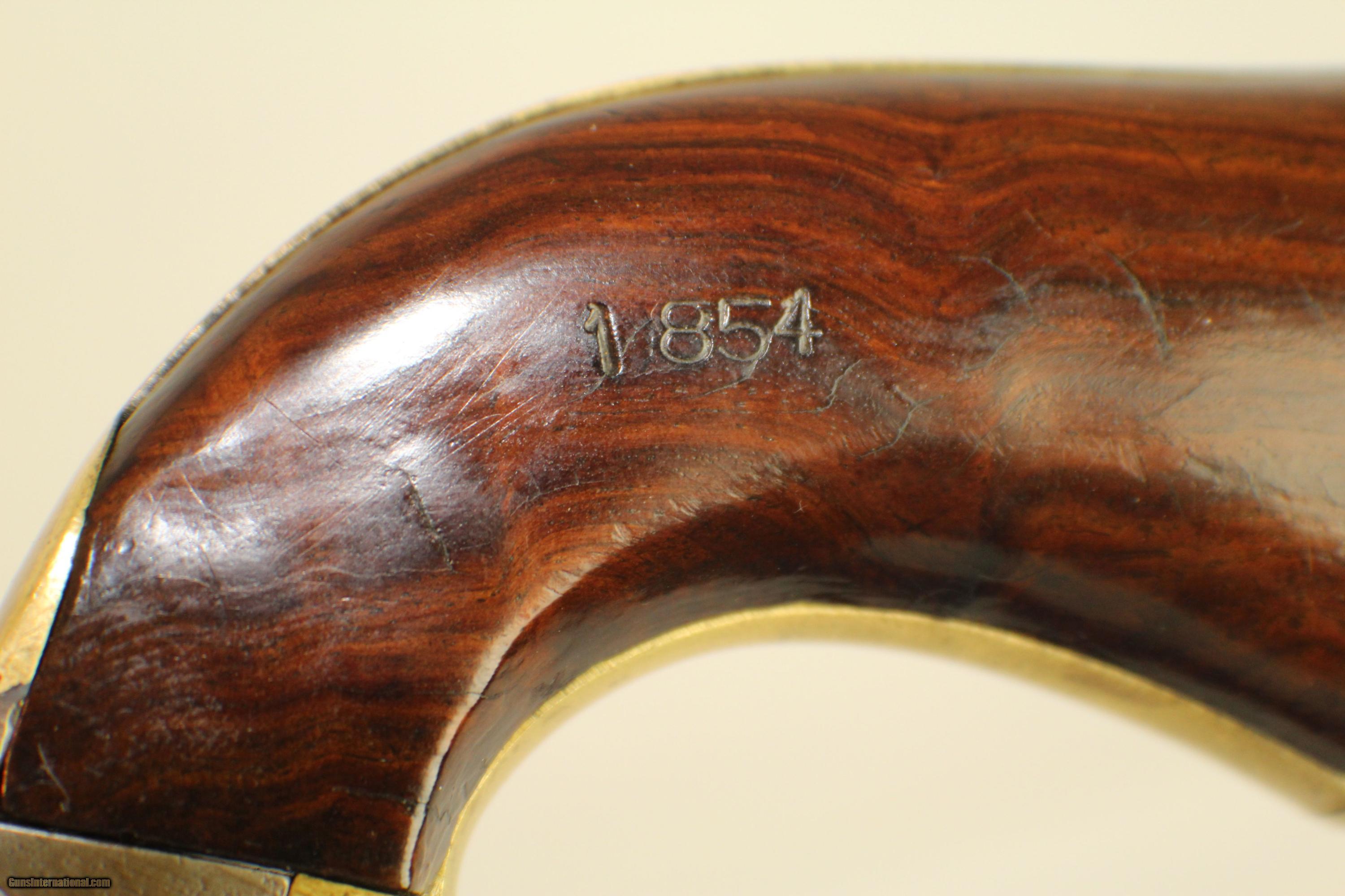 Description: Antique N. Gilon Colt 1851 Navy Brevete Revolver Scarce Belgian Make with Unusual Cylinder Scene Here we present an antique Colt 1851 Navy Brevete Revolver, made in the 1850s by Liege gun maker N. Gilon. In 1851 Colt’s patent agent in Liege, William E. Newton, made a deal with multiple Belgian gun makers to manufacture licensed copies of the Model 1851 Navy. Ten francs was the settled upon royalty. Nicolas Joseph Gilon was one of these makers. Several other countries saw licensed copies as well, like Austria and Russian, but typically none as good as the Belgium. This example is one made under license in Belgium (see the Liege stamp on the front of the cylinder) and marked by the maker, N. Gilon. Instead of the typical 1851 cylinder scene of the Texas Navy fighting the Mexican Navy, this specimen reflects a fleeing stag and a pursuing hound with hills and trees in the background. It is a very nice piece, and the grips are stamped with the year “1854”. The bottom of the loading lever is stamped “NG”. Own the original! This is a legitimate antique and not a reproduction. Here is something you will not see every day—licensed and unique versions of Colt’s 1851 Navy! Barrel is 7 5/8 inches in length. Caliber: .36 percussion The bore is in good condition and the firing mechanism is functional. Overall condition as seen in photos. Add this fantastic scarce licensed Colt to your collection. Very Fast. Very Safe. FREE SHIPPING WORLDWIDE. Delivered directly to your door by express mail! Guaranteed AUTHENTIC & Includes CERTIFICATE OF AUTHENTICITY. ancestryguns #21332 SOLD Antique: Yes |