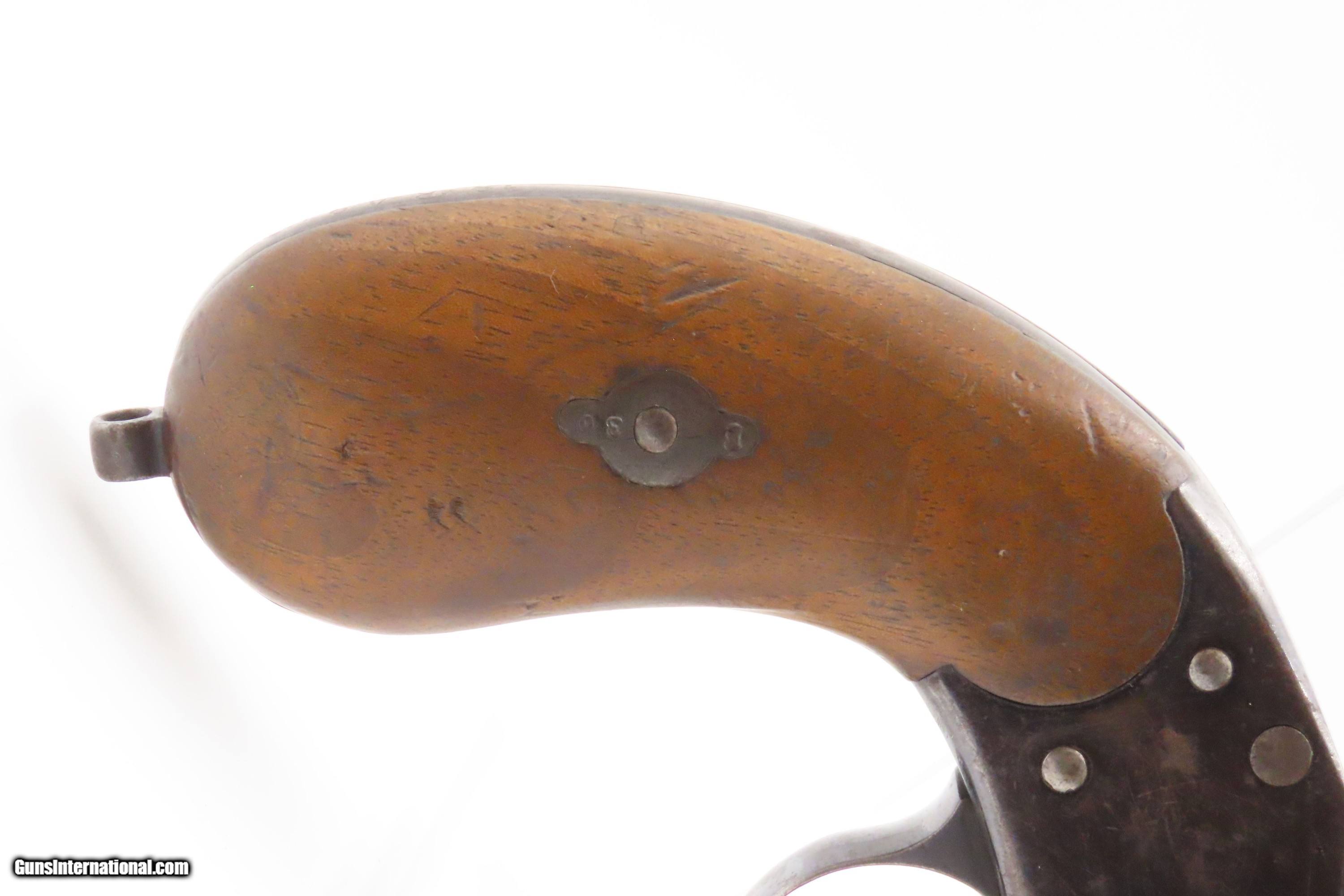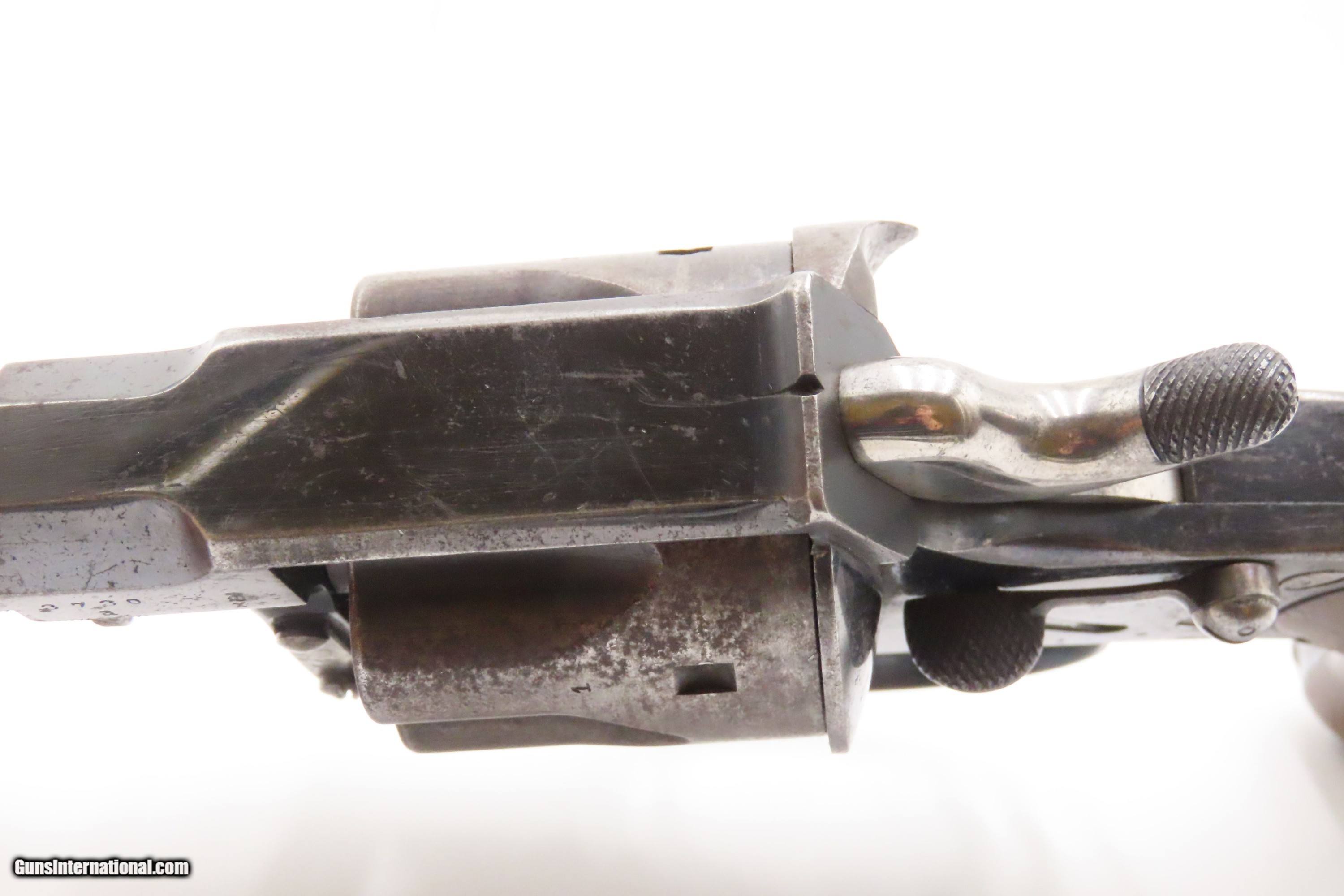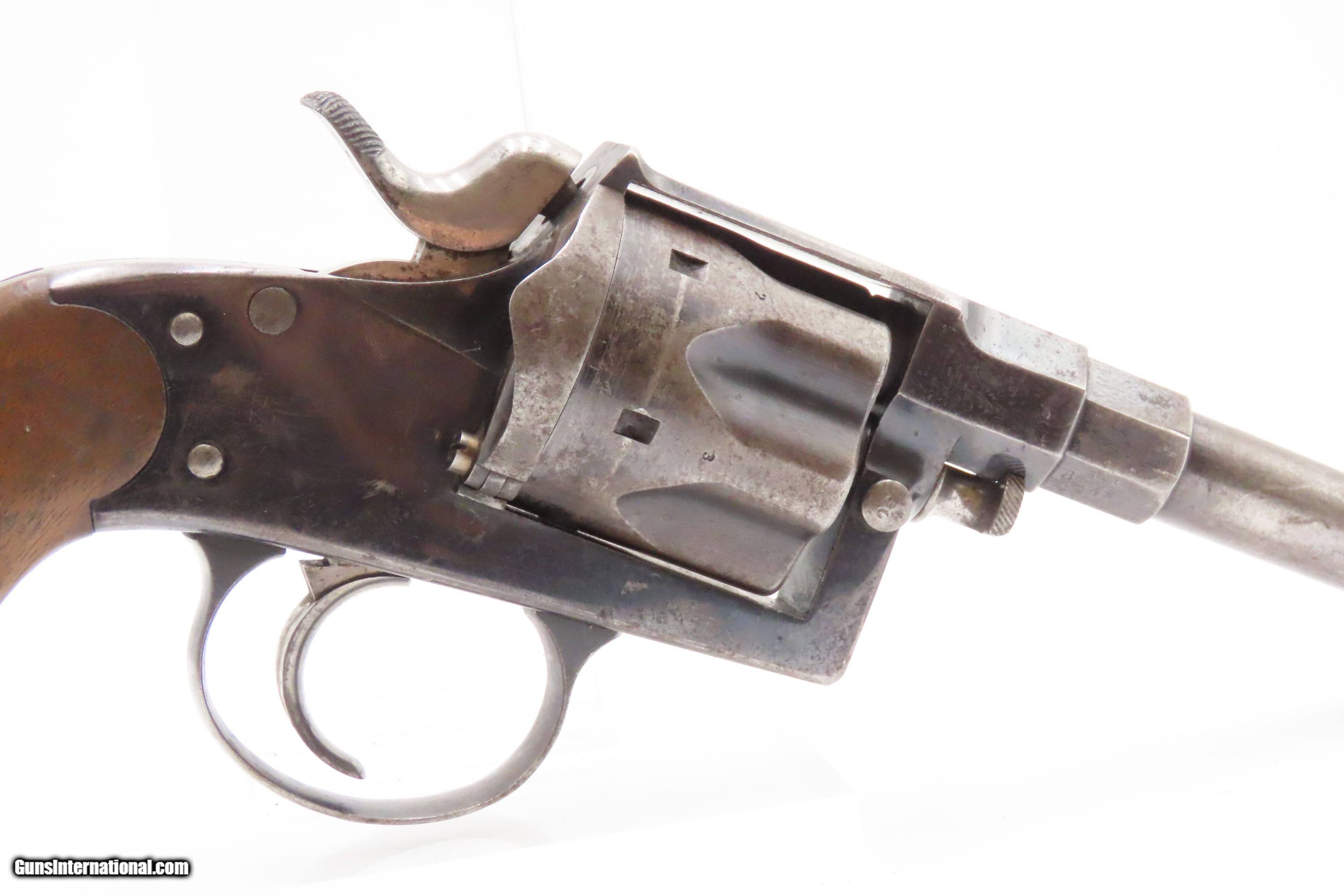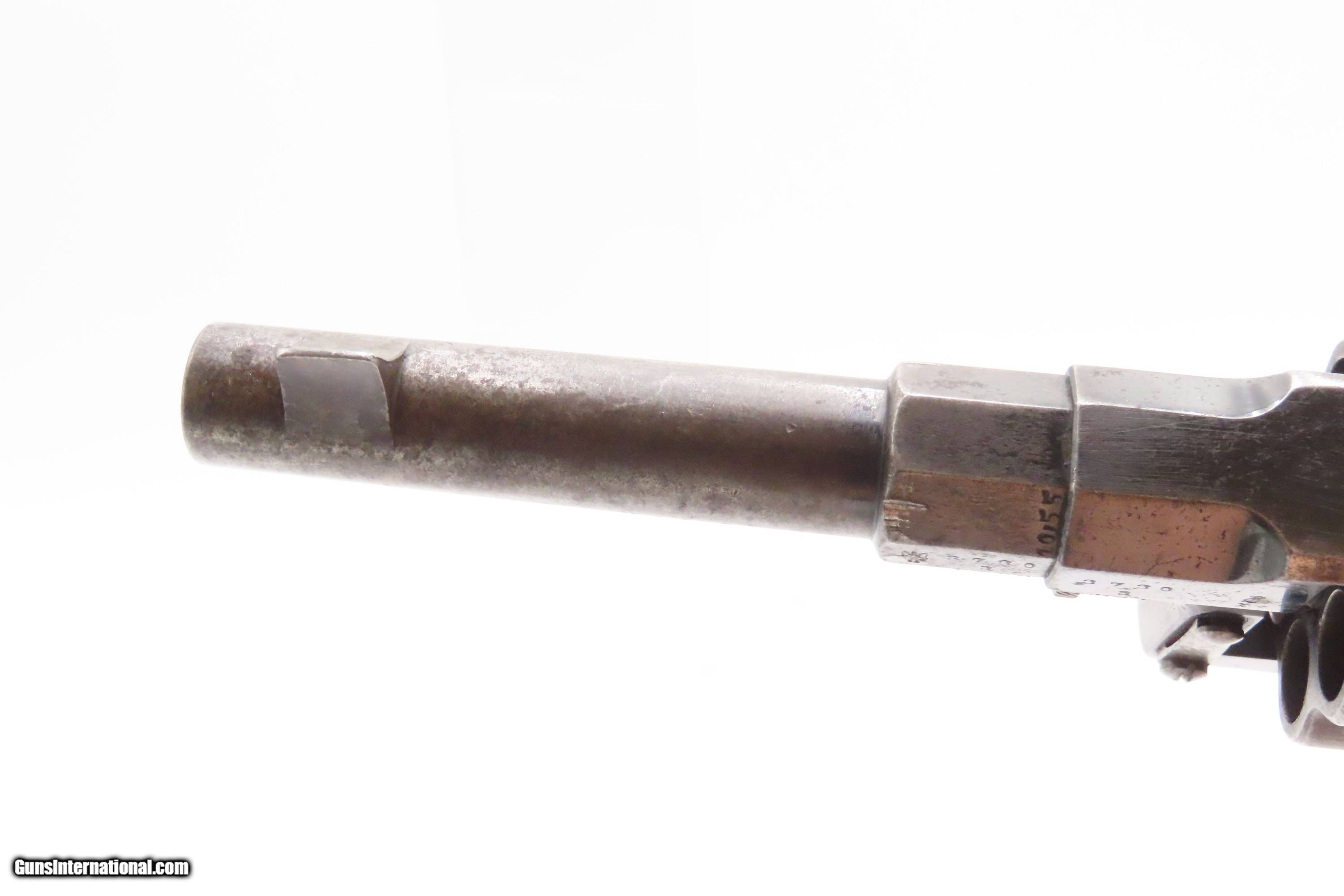 Description: c1893 UNIT MARKED Antique German ERFURT M1883 REICHS Revolver WWI & WWII Officer’s Sidearm Used in Both World Wars Here we present an antique Unit Marked German Erfurt Arsenal Model 1883 “Reichsrevolver” Single Action Revolver chambered in 10.55mm, made in 1893 at the Erfurt Arsenal in Erfurt, Germany. The Model 1879 Reichsrevolver, or Reichs Commission Revolver Model 1879 and the Model 1883 were both service revolvers used by the Imperial German Army from 1879 to 1908, when they were superseded by the classic Luger 9mm semi-automatic. They were both hefty, solid frame single action revolvers. It was the first centerfire revolver adopted by the fledgling German Empire, which was a simple design in line with similar European revolvers of the period. Besides Erfurt, various arsenals produced these guns, including Mauser and F. von Dreyse. This six-shot gun was loaded via a gate on the right side similar to a conventional single action such as Colt’s. Aside from the World Wars, it also saw action in the Boxer Rebellion and various colonial skirmishes. The overall condition is fine. Original finish. Matching numbers. Excellent action. Very good, bright, well-rifled bore. The grips are solid and show use. This example has an “1893” dated frame and a “19.R.A.9.102.” unit marking on the backstrap, which we believe is for the 19th Artillery Regiment. Own the original! This is a legitimate antique and not a reproduction. Barrel is 4-5/8 inches. Caliber: 10.55mm Overall condition as seen in photos. Very Fast. Very Safe. FREE SHIPPING WORLDWIDE. Delivered directly to your door by express mail! Guaranteed AUTHENTIC & Includes CERTIFICATE OF AUTHENTICITY. ancestryguns $2000 #247444 SOLD Antique: Yes |