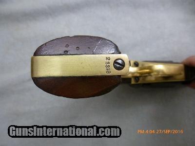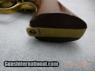 Description: Colt 1862 Police Model 16-74 This is a very attractive Colt 1862 Police Model. The action on this pistol works properly and locks up tight. All number match, but cylinder is unnumbered, has the patent date .the metal has an aged brown patina and looks very attractive. The grips look great, have been varnished and have one hairline crack and a few dents and dings. The numbers and the letters are clear and easy to read. scene. The bore has 60%-70% of the rifling and little corrosion; this is a clean, attractive original pistol for the collector or shooter. It would make an excellent addition to your collection, (16-74) $975 I take Visa/MasterCard, add 3%. Allow two weeks for all checks, whether bank, personal or certified to clear. It is also possible to wire funds to my account for instant credit for a $20.00 wire charge. 3 day- no questions asked return period for refund of price paid for gun. (Not including shipping or credit card charges). All sales subject to prior sale at other sites or from shop. Call or email with any questions or for more pictures. Guns are antique and should not be fired without examination by gunsmith. $56 shipping for long guns, which includes a heavy cloth gun sleeve, which the buyer keeps, or a hard rifle case for an additional $25; $30 for hand guns to lower 48 states, Overseas shipping has recently become very difficult, depending on the country. Please notify me before purchasing. We can generally get domestic insurance if you want it through shipper, but coverage is limited. Notify me if you want it. You can send 20% down- balance in 90 days for installment payment plan. No refunds on installment plans. I have shipped to Norway (long gun w/fragile stock) see feedback, England (Winchester1876, Rem. Dbl. Derr.), Northern Ireland, France, Australia and Sweden. Email if you are not U.S. for estimated shipping costs, payment methods, etc. I am always buying and trading for antique and collectible guns, Indian items, rare ammo, etc. Email what you have got for sale or trade. SOLD Antique: Yes |
