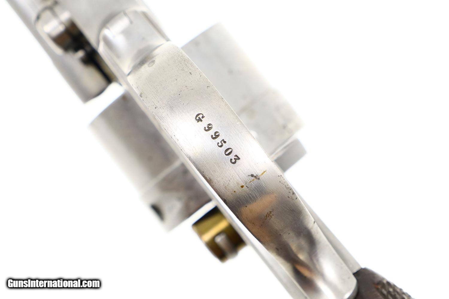 VG+ with the in-the-white metal having been lightly cleaned, still with stains. Excellent cylinder lock up with proper indexing. Mirror bore with sharp rifling.