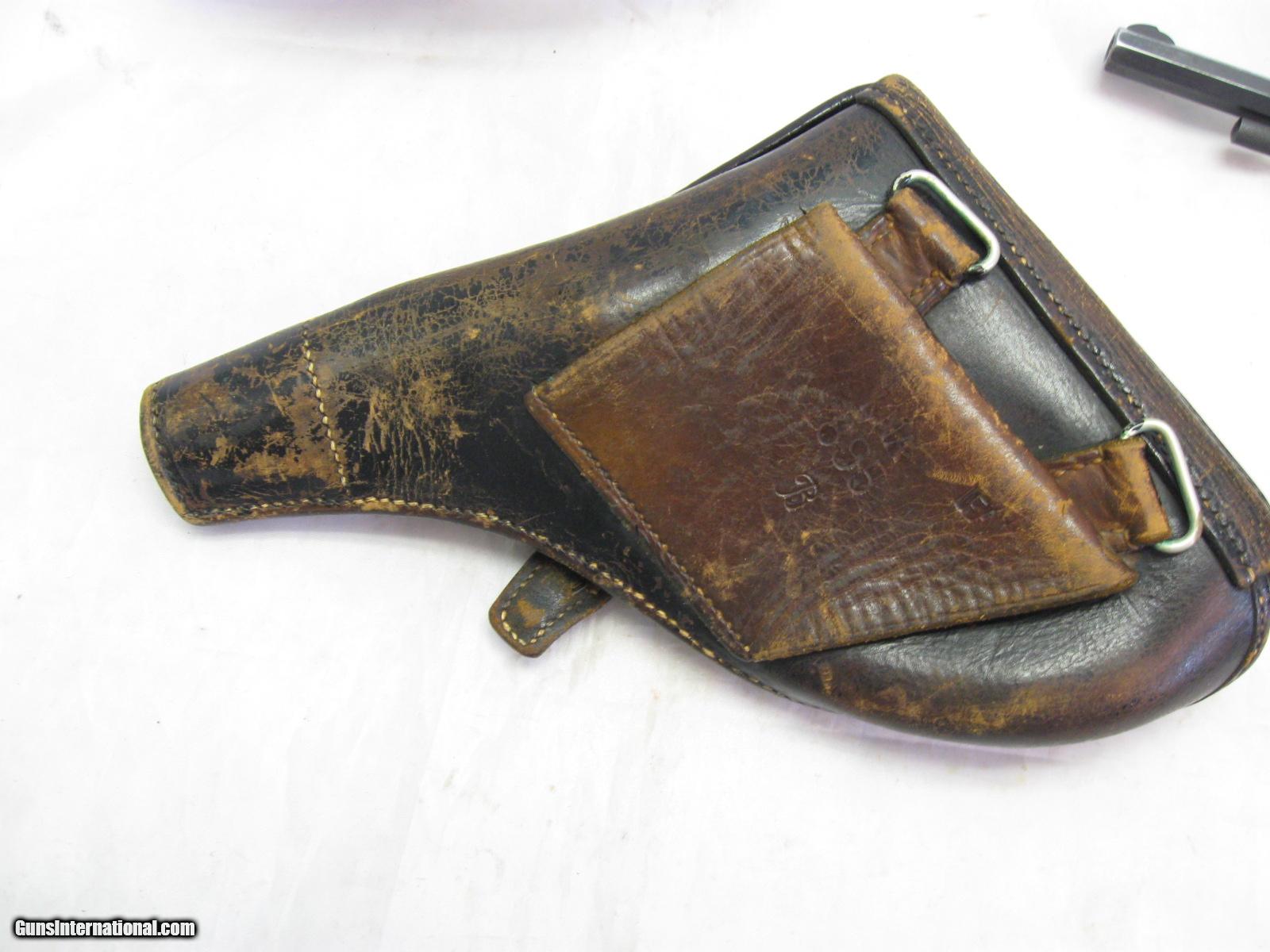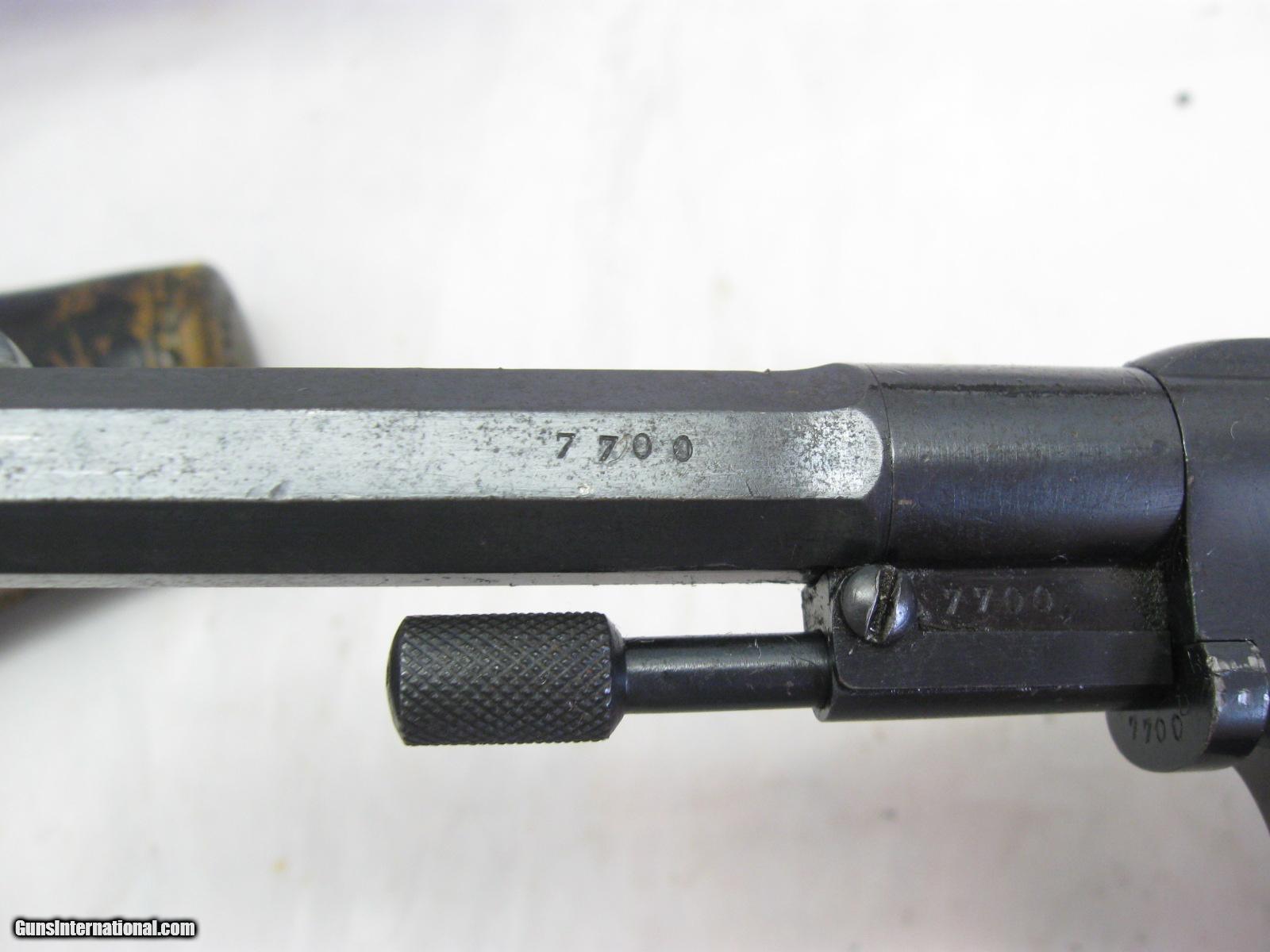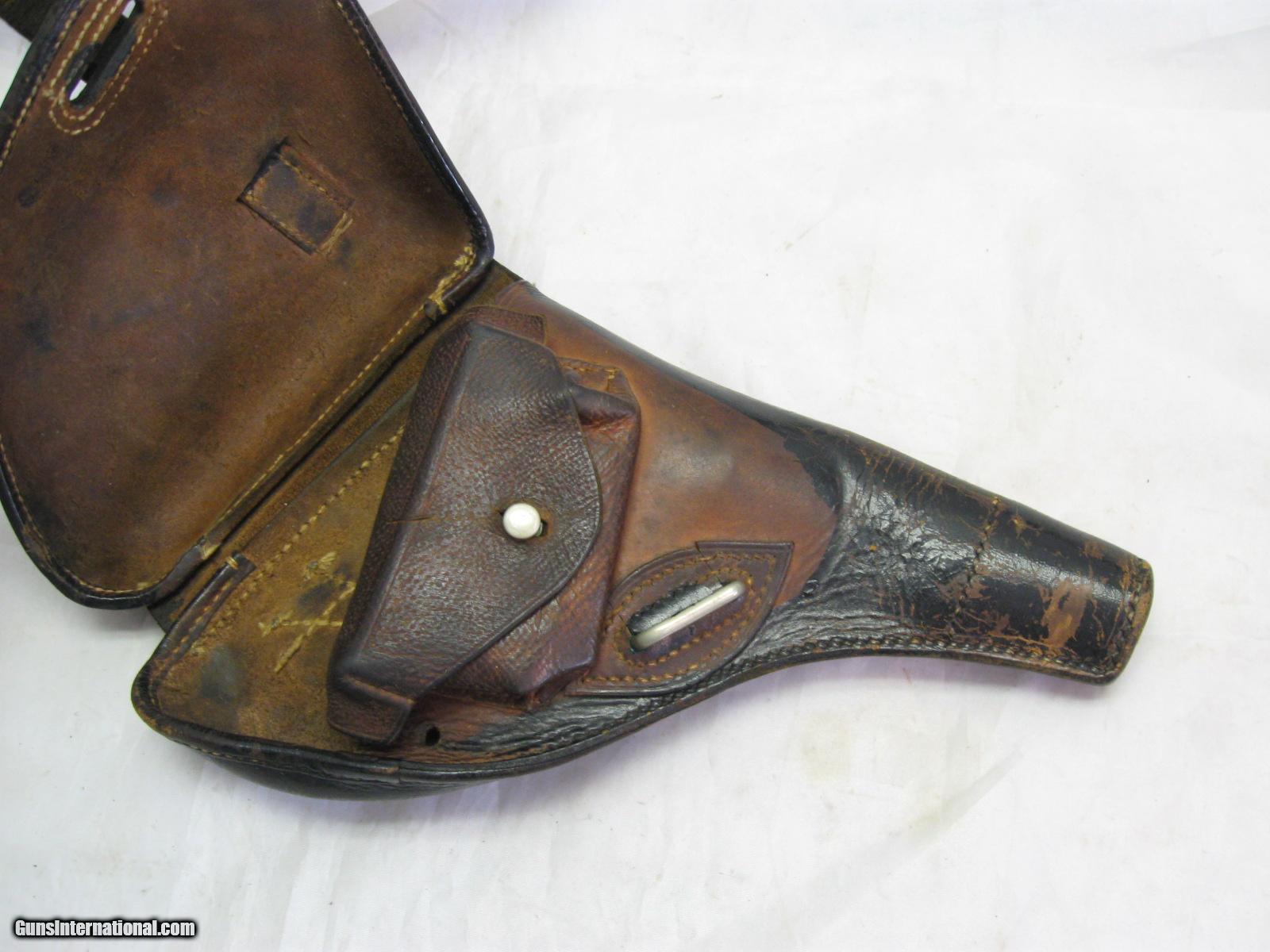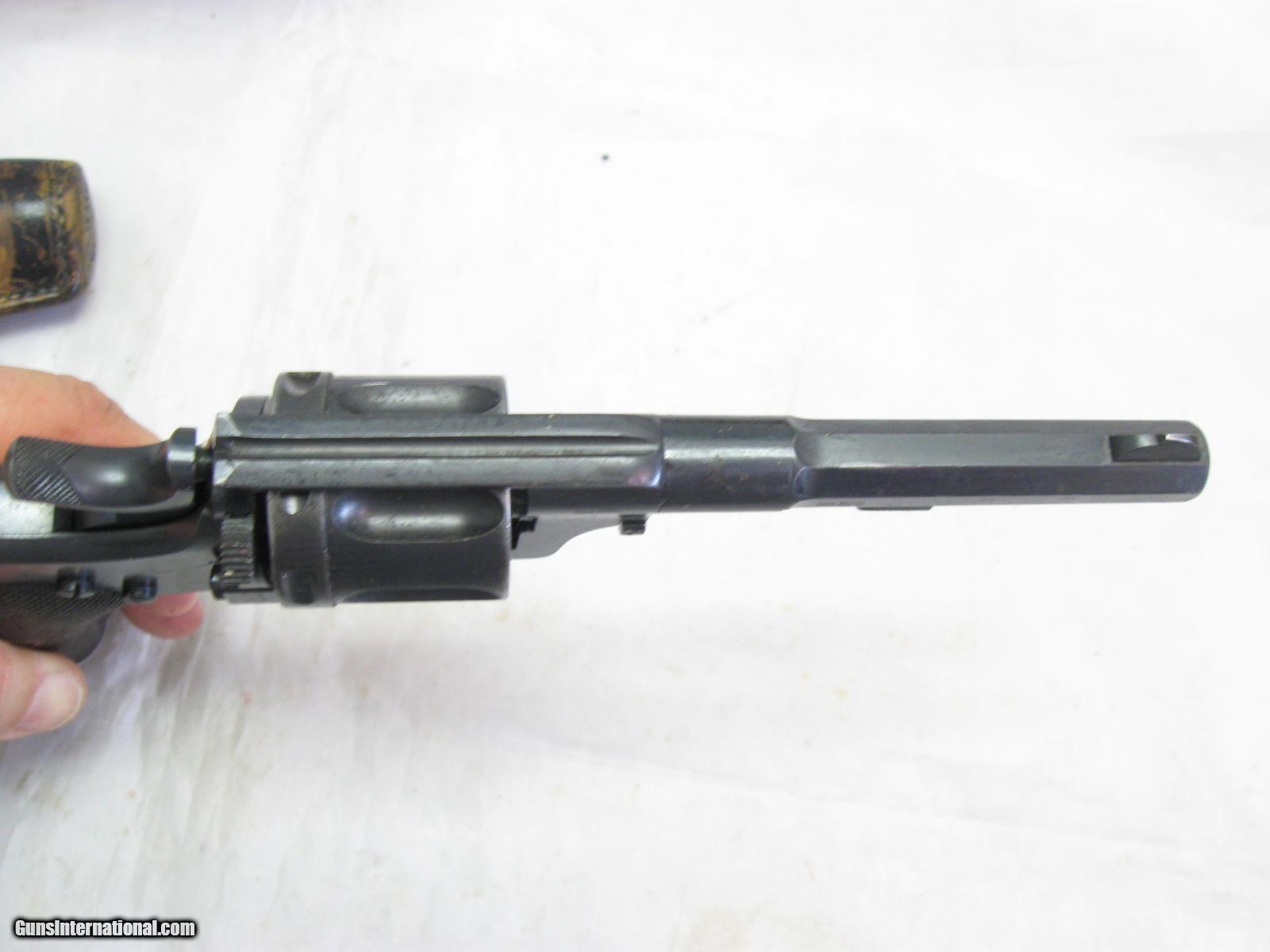 Description: This is a very rarely seen Norwegian contract Nagant revolver, in very good original condition, with an original holster. The gun is an antique and was made before 1898. It shows some holster wear with most of the blueing intact, showing some patination here and there as per pictures. It is an all matching gun, and carries, both, the Belgian proofmarks and the Norwegian acceptance marks, including the Norwegian Lion on the right tang. It still had fireblue visible on the small parts. Grips are in very good condition without defects, and the bore is excellent. Lock-up is great, as well. Cylinder advances perfectly in single and double action mode. The holster is in great shape as well and is marked with KNA for Norwegian Royal Artillery and dated 1895 on the belt loop. It also has a unit mark IFAK, for 1st Field Artillery Corps. The holster is even rarer than the gun, and has no defects, other than from normal field use. It also had a layer of dark color weatherproofing applied at one point while serving in the Norwegian Army. A great original rig that would be a wondeful addition to a military revolver collection. As this is an antique, no FFL(only a proof of age-21) - is necessary, where allowed. In certain states, such as California, New Jersey and others, this firearm must be transferred through an FFL or C&R license. $30 insured shipping in CONUS. Please, see my other listings as well. SOLD Antique: Yes |