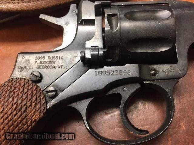 Description: Russian Nagant Madel 1895 Pistol in 7.62×38mmR, with original holster, cleaning rod and lanyard. CAI import. See photos for condition. $30 Insured shipping. Credit Card payment incurs a 3% charge. Retuns not the fault of PATAK-PHILLIPS FINE ARMS incurs a 20% restocking fee. PATAK-PHILLIPS FINE ARMS. SOLD |