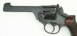 Enfield No.2 MKI .38 S&W caliber revolver. Beautiful Enfield revolver. Gun has the “one star” mark indicating modifications. They are double action only, no hammer spur, and grooved wood thumberest grips. Excellent condition, dated 1941 with 98-99% original matte finish. No import marks. Comes with open top commando style holster with cleaning rod. Very fine outfit.