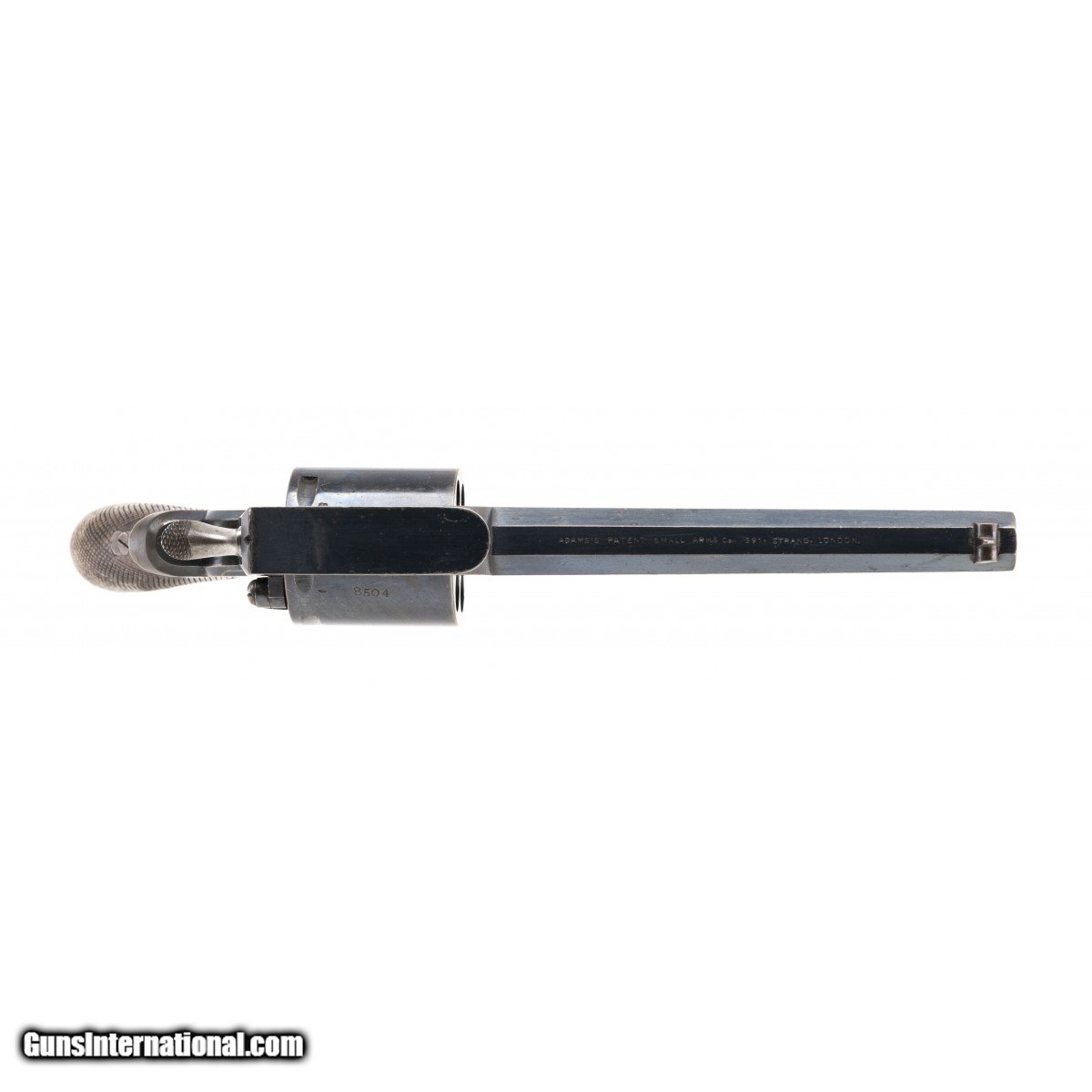 Six-shot double action revolver with 6"" barrel. The revolver has 95% of its original blue. The bore is excellent. The cylinder is not matching. The grips are very good. Overall a very good condition Adams revolver.