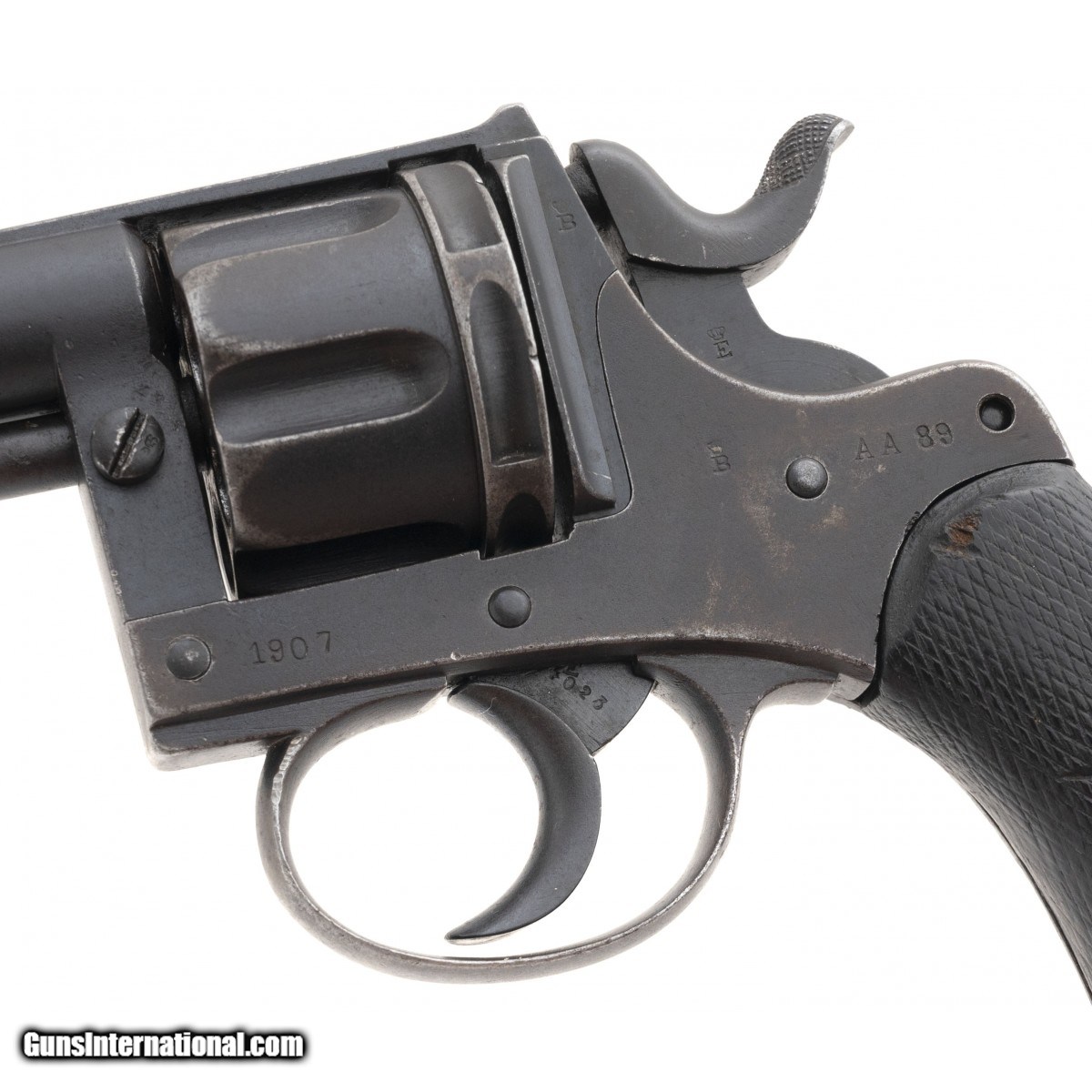 Description: " SN:AA89. Manufactured in 1907, 9.4mm Dutch, 4.45"" barrel. Bore is in fair condition with some visible pitting & frosting but overall condition is good. Comes with original checkered wood grips. SOLD Curio/Relic: Yes |