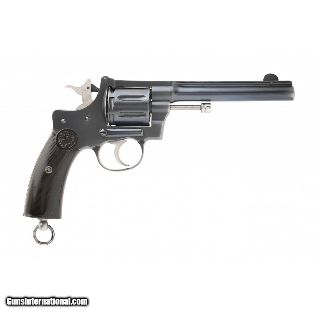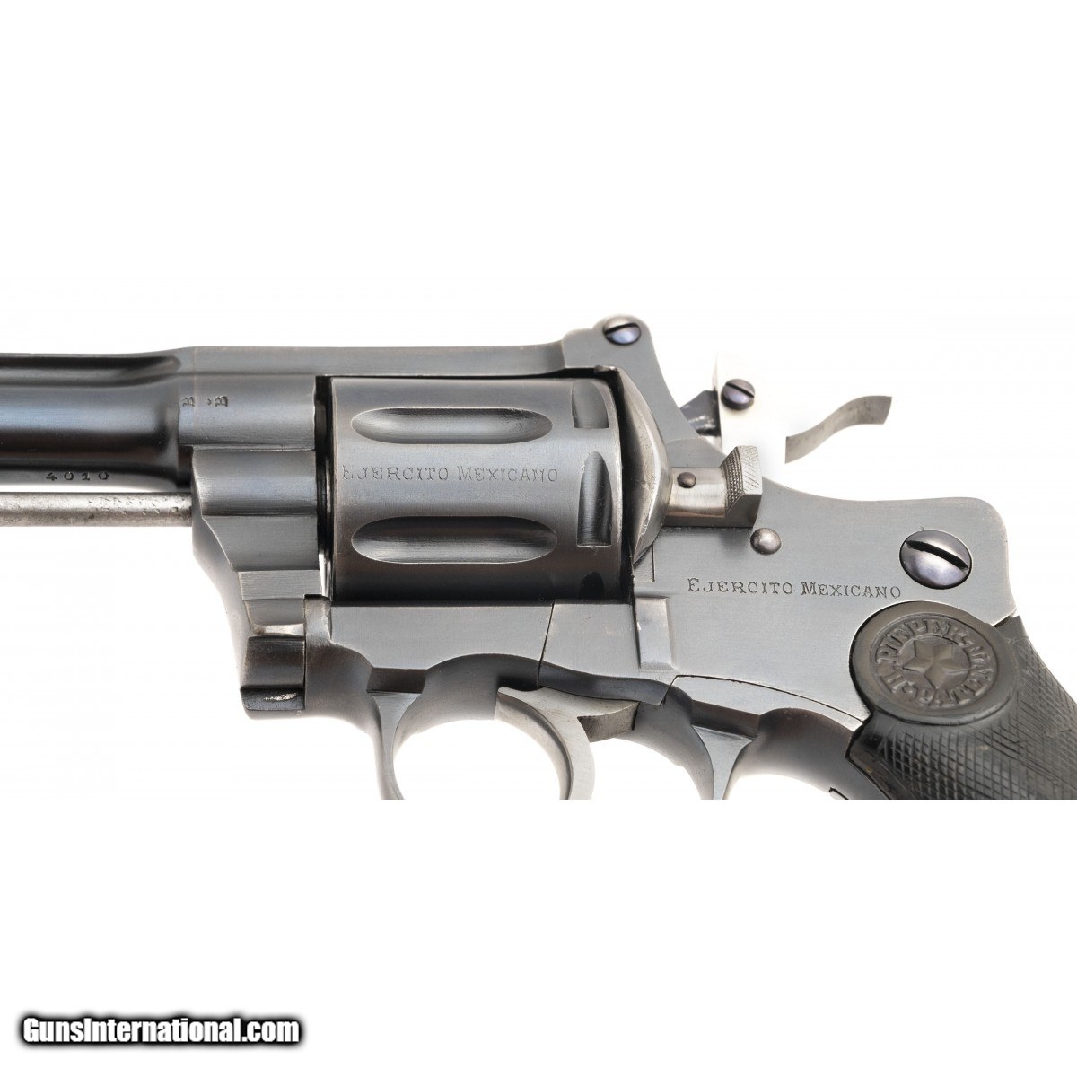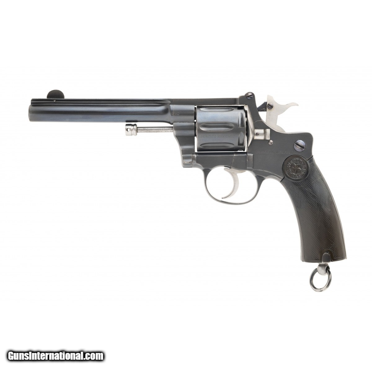 Contract revolver for the Mexican Army with 5.5"" barrel. Left sideplate is marked ""Ejercito Mexicano"" The barrel top strap over the cylinder is marked exactly the same. The contract was for 5000 revolvers for special or elite troops. The Pieper Revolver was made as an official issue gun in 1893 by presidential decree. Grips are marked ""Pieper Patent."" Grips show handling wear but no cracks, chips or abuse. This is a seven-shot gas seal revolver. The cocking hammer makes the cylinder move slightly forward to provide a seal with the cylinder and the breech of the barrel so as to not lose pressure when firing. Well made and stunning revolver. Top rib of the barrel has some army issue marks. Overall excellent condition for a scarce model.