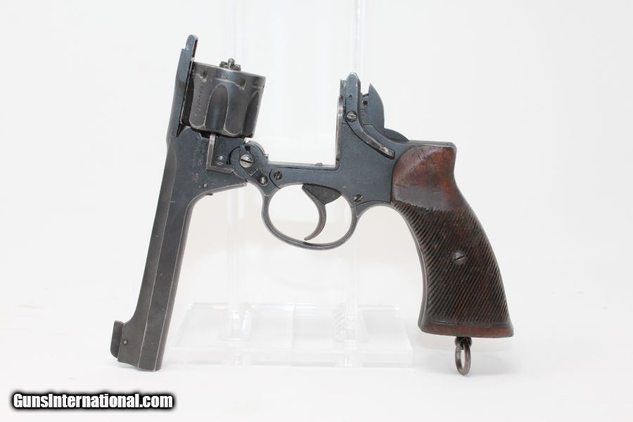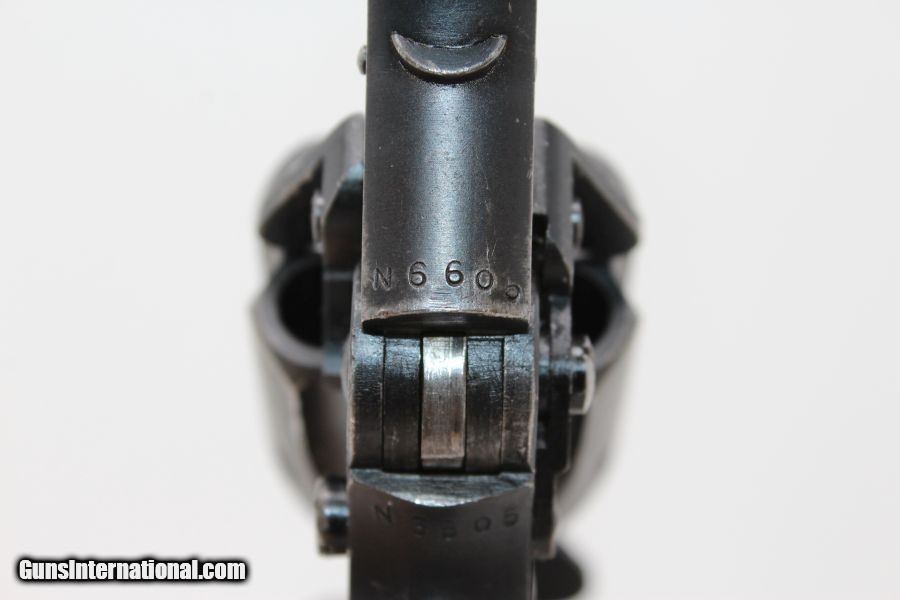 Description: 1941 Dated WWII British ENFIELD MK I* .38 Revolver Standard Sidearm for British Forces in WWII Here we present a World War II British Enfield No. 2 MK I* Top Break Revolver in .38 S&W, made circa 1941 in England. The No. 2 was the most prevalent sidearm amongst British officers, NCOs and tankers during World War II. The original design came from Webley & Scott around the end of World War I, though initially, production was given to the Royal Small Arms Factory at Enfield. Essentially, the British government tried to steal W&S’s design and make them in-house until Enfield couldn’t keep up and Webley & Scott was contracted to produce as well. Those produced by Enfield were known as the No. 2 MK I. In about 1938 thACe MK I* was introduced and these were built from the ground up as double action only revolvers with no hammer spur, and most of the original MK Is were converted as they rotated through the armory. This change was to prevent hammer spurs from snagging on clothing when soldiers needed them most. This example was made in 1941. It features wooden grips, the Enfield marking on the right side of the frame as well as a 1941 date. This was one of those made from the ground up as a MK I*. It is littered with British proof and acceptance marks. The cylinder is marked “E.S.C. 321” which is for the English Steel Company and the batch number. The overall condition is fine. The original finish is 85% complete. The markings are clear and legible. The grips are in good shape with the wear you would expect. The bore is excellent: bright and shiny with strong rifling. The action is excellent. Here is a fantastic piece of British WWII history! These are something not often seen on the US market! This firearm is classified as a Curio & Relic. Barrel is 5 inches. Caliber: .38 S&W Overall condition as seen in photos. Very Fast. Very Safe. FREE SHIPPING. Will need to be sent to your local FFL or C&R licensee. This firearm is classified as a Curio & Relic. Guaranteed AUTHENTIC & Includes CERTIFICATE OF AUTHENTICITY. ancestryguns $800 #8713 SOLD Curio/Relic: Yes |