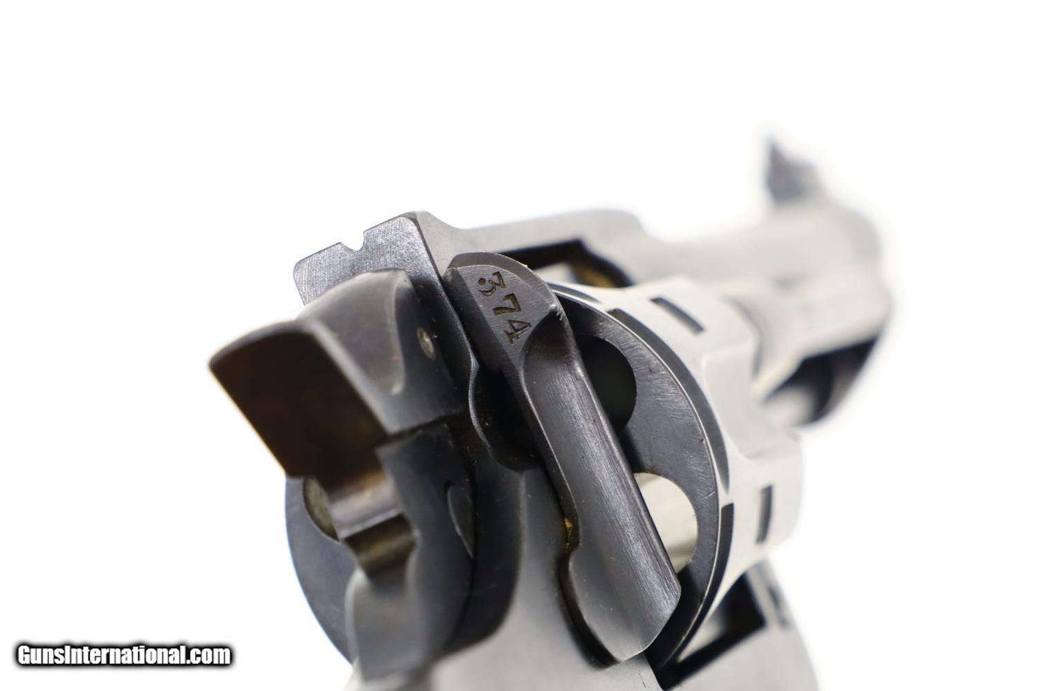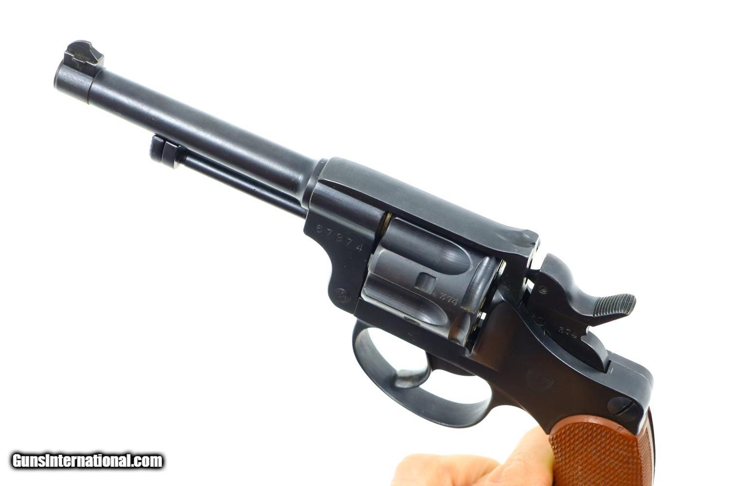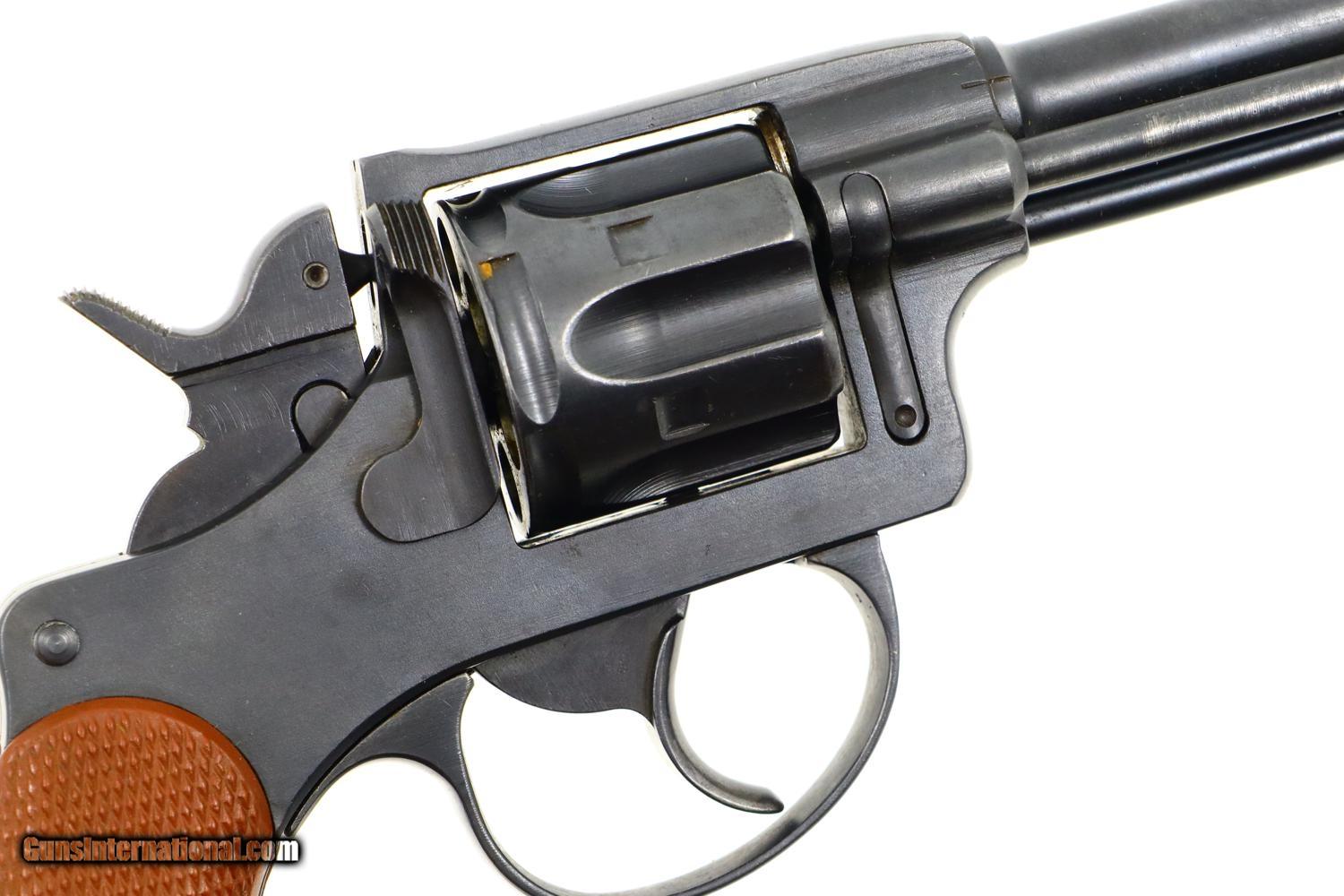 Description: Synopsis: Bern, 1929, Swiss Military Revolver, #67374, I-352 Description: Standard configuration 1929 Military revolver with 4.5” barrel having a drift adjustable front sight and a fixed rear sight. “W/F” logo on left frame in front of trigger guard. Prominent cross in shield just above the grip. “P” release on front of trigger guard. Salt blue finish, all matching parts including the cylinder, cylinder pin, hammer and loading gate. Checkered red grips. Lanyard ring present. Condition: Excellent, 98-99+% original salt blue with minimal holster wear. Mirror bore. Perfect manual mechanics, each cylinder indexing properly with tight lock-up. SOLD Manufacturer: Bern Model: 1929 Serial Number: 67374 Caliber Info: 7.5mm Condition: EXC |