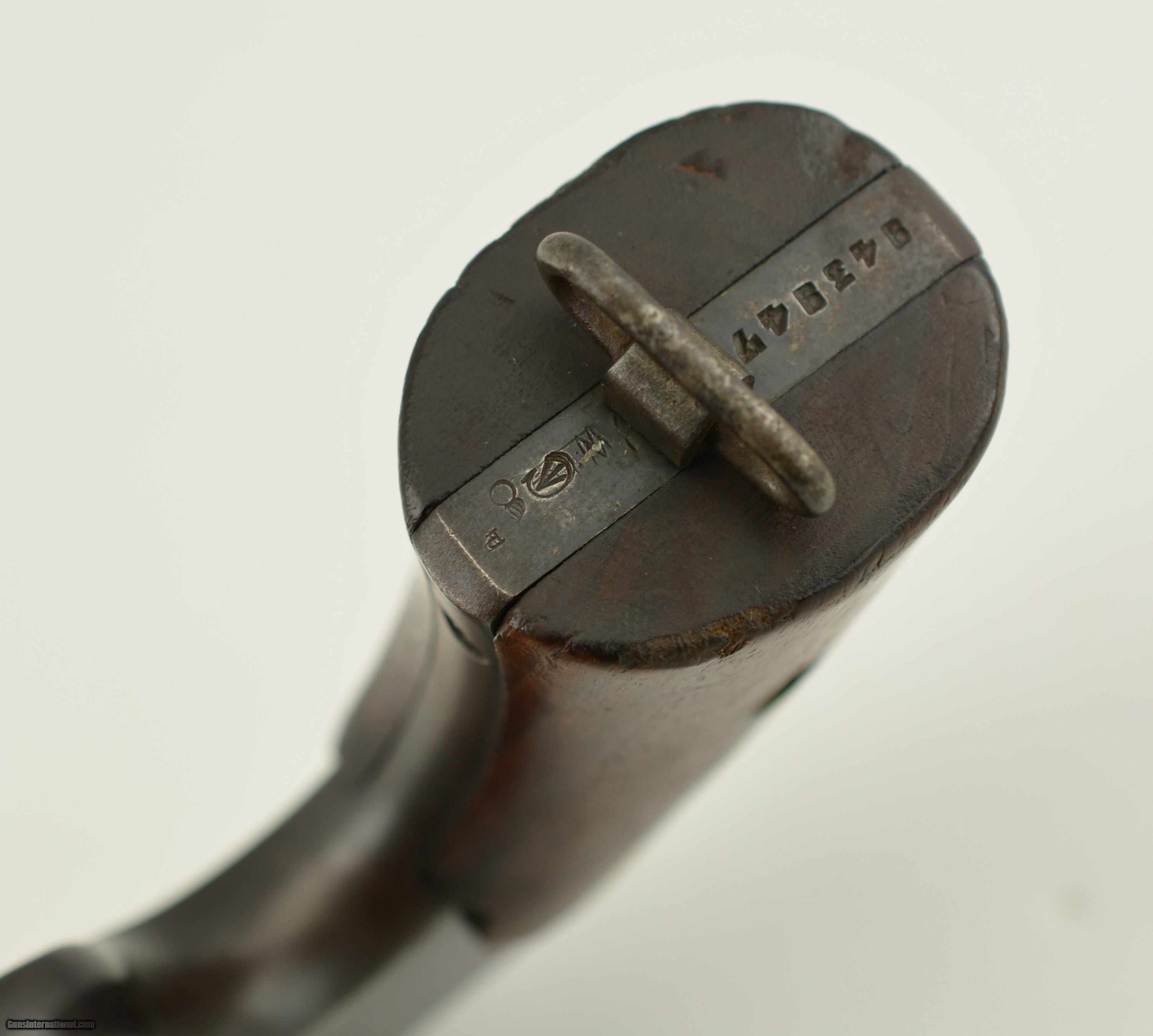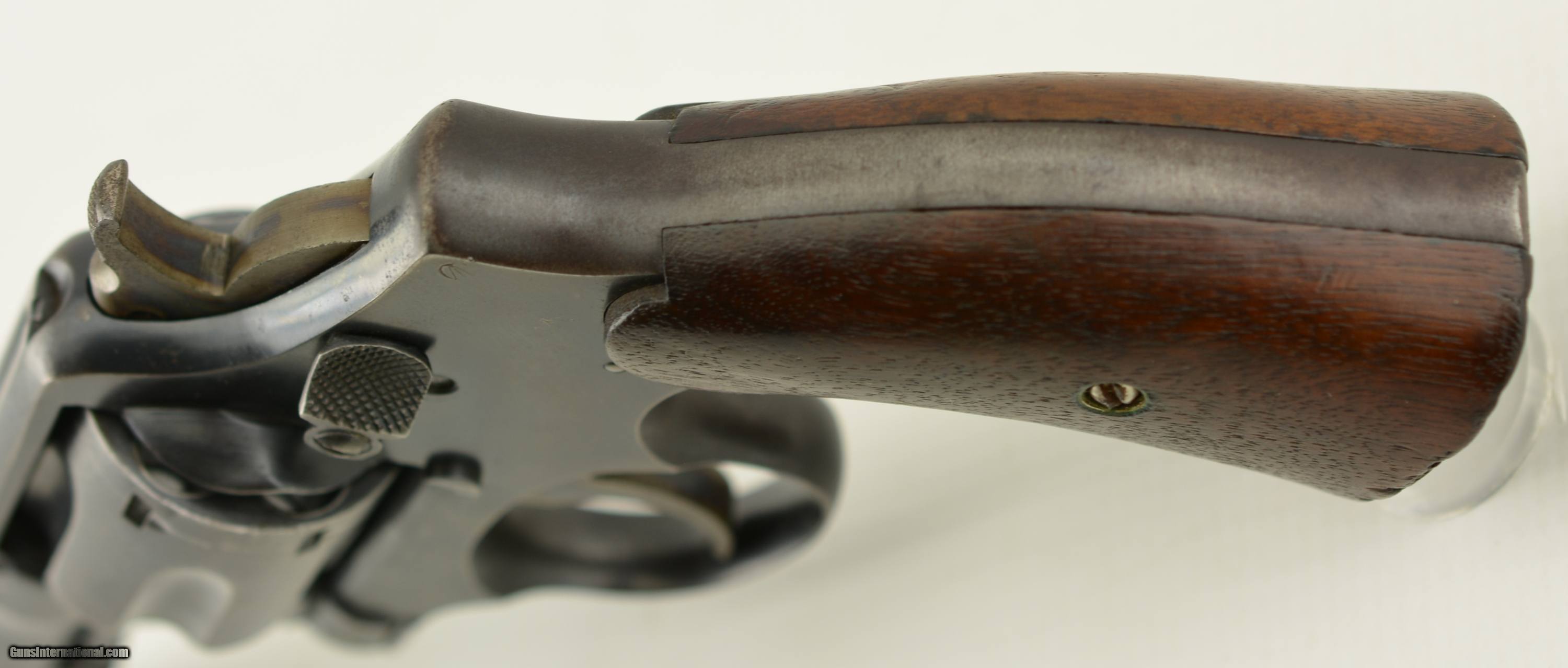 Description: Serial #943947, .38 S&W (.380/200), 6" barrel with an excellent, bright bore. This nice revolver has matching numbers on the frame, cylinder, yoke, extractor, and barrel with the metal retaining 90-95% of the original brush blued finish that has faded at the muzzle and along the projecting edges and surfaces. There is a noticeable turn-ring on the cylinder and the trigger and hammer have about 60-70% of the original bright color case-hardening remaining with freckled gray fading on the balance. The revolver has a US Ordnance “Flaming Bomb" on the butt with a deeply struck “C (Broad Arrow)" Canadian property stamp just behind, as well as on the left side of the frame at the knuckle just behind the hammer. The smooth walnut grips are numbered on the interior: “94347"; and have light-moderate wear and handling marks on either side, with some short, with-the-grain cracks at the top of the right panel. The grip screw is an incorrect replacement. The lock-up is still tight and the mechanism functions flawlessly. This is a great Canadian .38 hand ejector in fine-near excellent condition, and would make a fantastic addition to any collection. FFL or C&R SOLD Curio/Relic: Yes Manufacturer: S&W Model: 1905 Serial Number: 943947 Caliber Info: .38 S&W Gauge Info: .38 S&W |