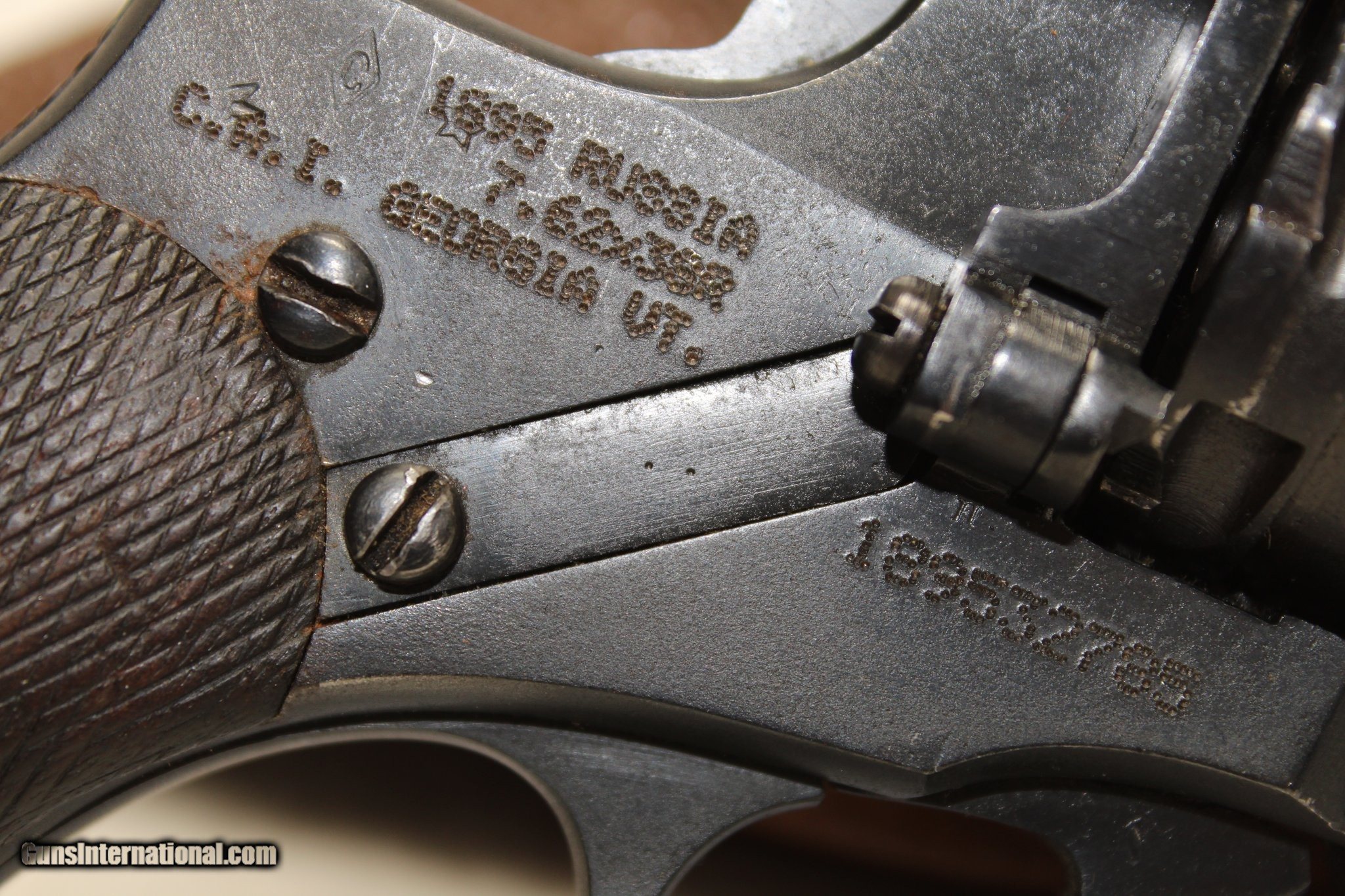 Description: Guns Listing ID: 603579 Description: The Nagant M1895 is a seven-shot, gas-seal revolver designed and produced by Belgian industrialist Léon Nagant for the Russian Empire. The Nagant M1895 was chambered for a proprietary cartridge, 7.62×38mmR, and features a gas-seal system, in which the cylinder moves forward when the gun is cocked, to close the gap between the cylinder and the barrel, providing a boost to the muzzle velocity of the bullet and allowing the weapon to be suppressed. Manufacturer/Importer: Mosin Nagant/ C.A.I Model: 1895 Russia Type: Revolver Caliber: 7.62x38R Action: Bolt Capacity: 7rnd Barrel Length: 4.5in Frame Material: Metal Frame Sights: Iron Sights Manufacturer: MOSIN-NAGANT Model: 1895 RUSSIA Caliber Info: 7.62X38MMR Condition: Used - Non-Certified Barrels: 4.5" BARREL Action: REVOLVER Finish: black Price: $599.99 Contact Seller |