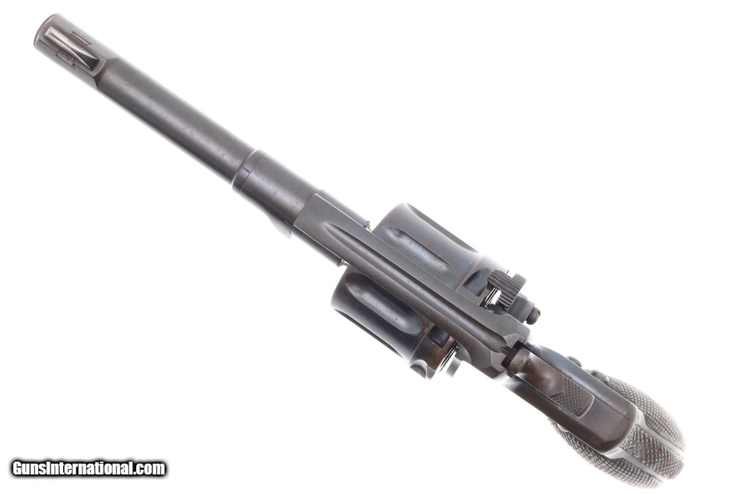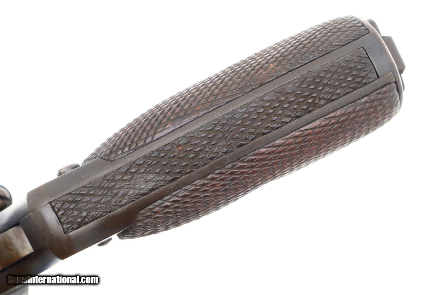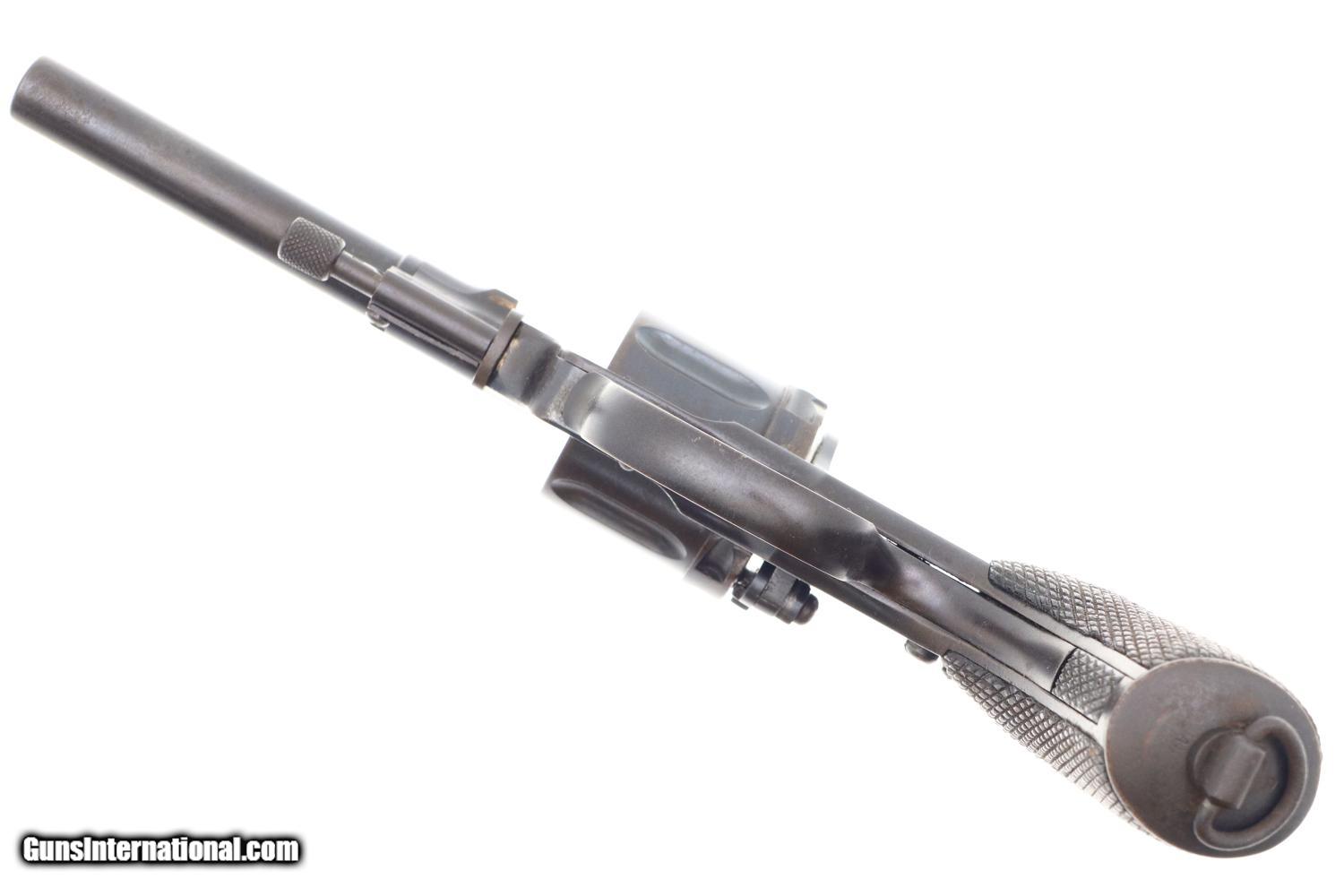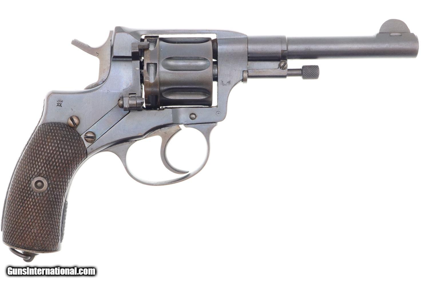 Description: Synopsis: High condition and all matching Russian Nagant 1895 Revolver, Dated 1913, 4138, FB01414 Description: Original 1895 Nagant Revolver, this example having been made in 1913. Standard 4.5" barrel with drift adjustable front sight and fixed rear sight. Full serial number on left side of frame, front of the cylinder, left side of the frame and left side of trigger guard. Right side of frame with Imperial Eagle/XX as applied from 1909-1917. Main components rust blued with separately treated hammer and trigger. Fitted with coarsely checkered wooden grips and butt cap with rotatable lanyard ring. Condition: VG rust blue with toning on muzzle and over most wear areas on cylinder. Comparable condition hammer and trigger. Darkly oiled grips with blunted checkering. Dull bore with easily discernible rifling. Perfect manual mechanics with each cylinder locking into place. An extremely attractive, all matching, no-excuse Russian Nagant from 1913! ~~Insured shipping fee of $55; most packages shipped using FedEx 2nd Day.~~ SOLD Curio/Relic: Yes Manufacturer: Leon Nagant Serial Number: B135681 Caliber Info: 7.62x38mmR |