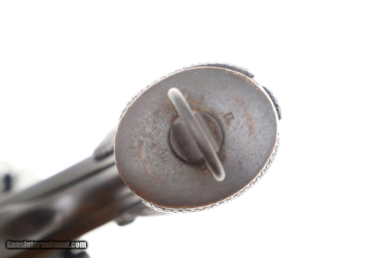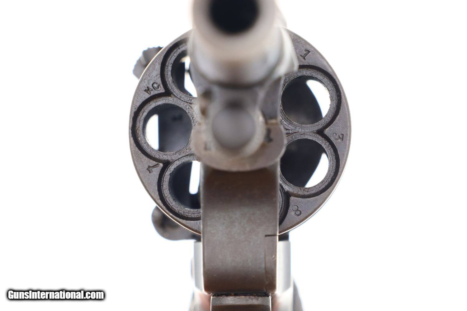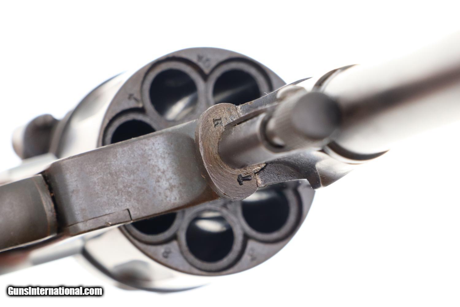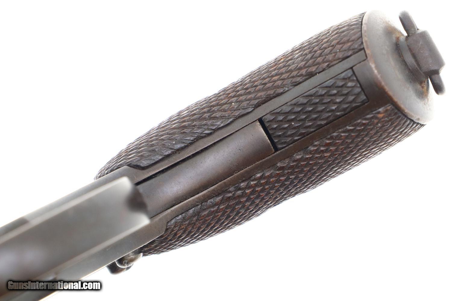 Description: Synopsis: High condition and all matching Russian Nagant 1895 Revolver, Dated 1913, 4138, FB01414 Description: Original 1895 Nagant Revolver, this example having been made in 1913. Standard 4.5" barrel with drift adjustable front sight and fixed rear sight. Full serial number on left side of frame, front of the cylinder, left side of the frame and left side of trigger guard. Right side of frame with Imperial Eagle/XX as applied from 1909-1917. Main components rust blued with separately treated hammer and trigger. Fitted with coarsely checkered wooden grips and butt cap with rotatable lanyard ring. Condition: VG rust blue with toning on muzzle and over most wear areas on cylinder. Comparable condition hammer and trigger. Darkly oiled grips with blunted checkering. Dull bore with easily discernible rifling. Perfect manual mechanics with each cylinder locking into place. An extremely attractive, all matching, no-excuse Russian Nagant from 1913! ~~Insured shipping fee of $55; most packages shipped using FedEx 2nd Day.~~ SOLD Curio/Relic: Yes Manufacturer: Leon Nagant Serial Number: B135681 Caliber Info: 7.62x38mmR |