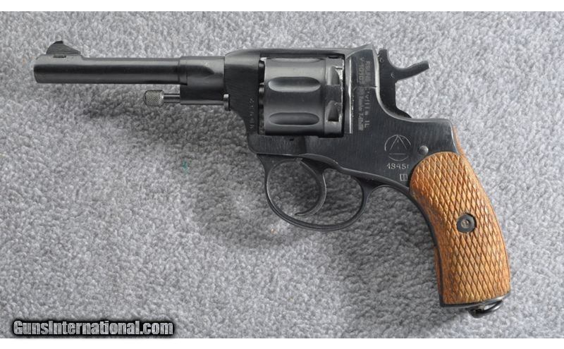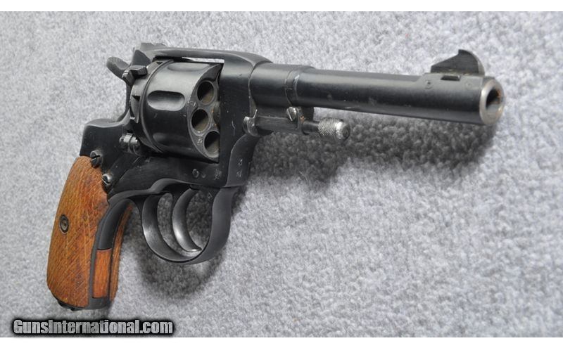 Description: This seven shot revolver was designed and produced by Belgian Leon Nagant for the Russian Empire near the turn of the 19th Century. The unique gas-seal system and cartridge allowed for increased velocity of the projectile. Ammunition is still available. 7.62x38R SOLD Curio/Relic: Yes Chambers: Seven round revolving cylinder Metal Condition: Very good with a few small handling marks Wood Condition: Very good Bore Condition: Bright & Crisp Barrels: 4.5 Triggers: Single/Double Action Weight: 28 oz. Sights: Fixed rear, drift adjustable front blade Item Location: Grand Junction, CO |