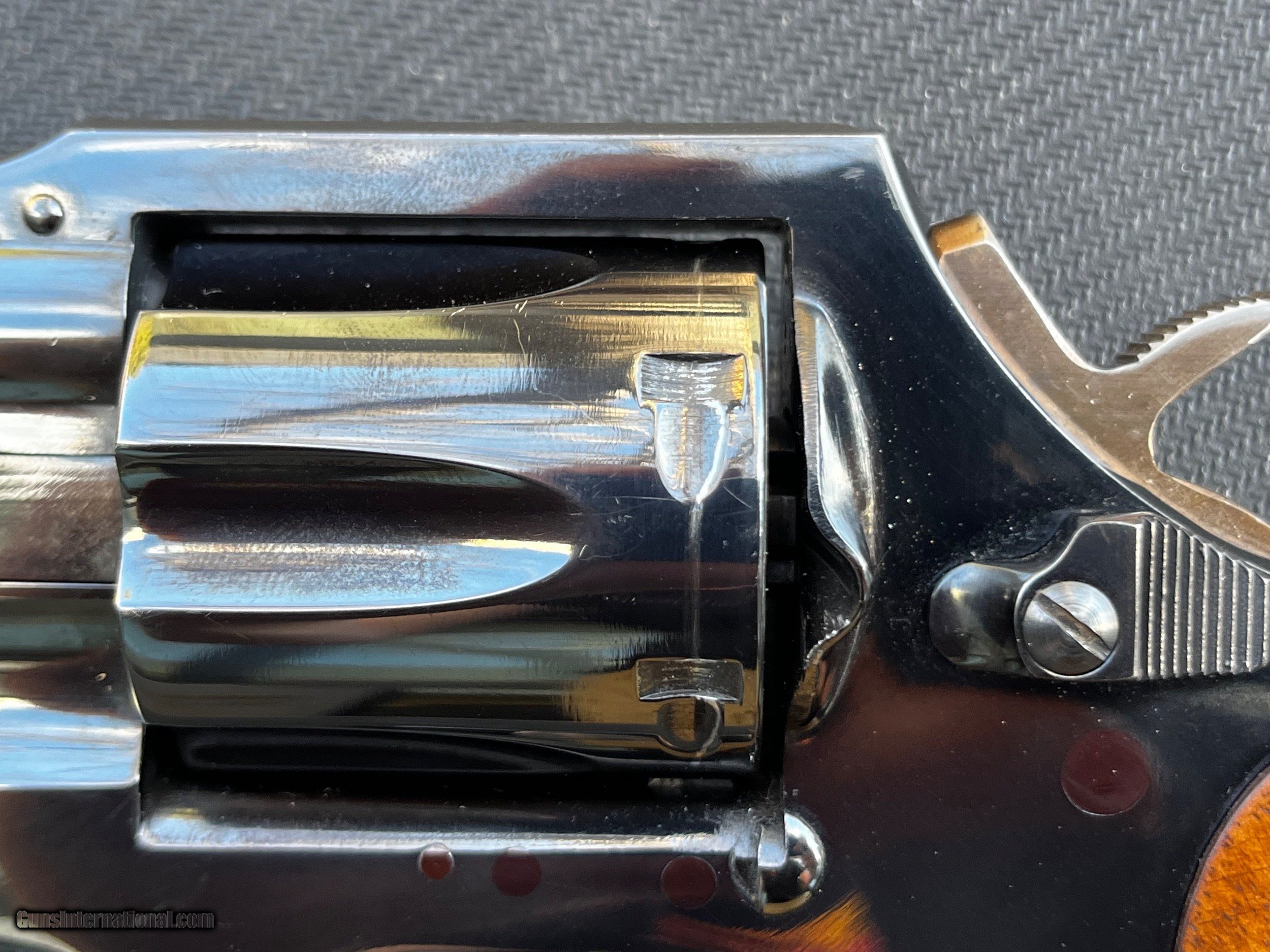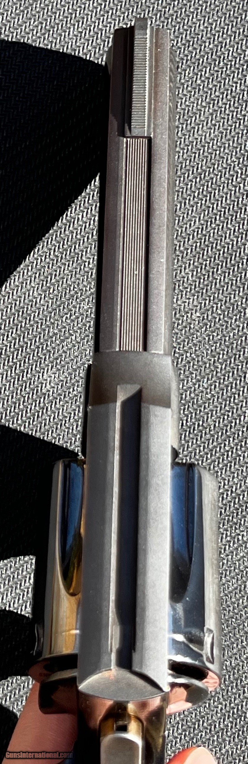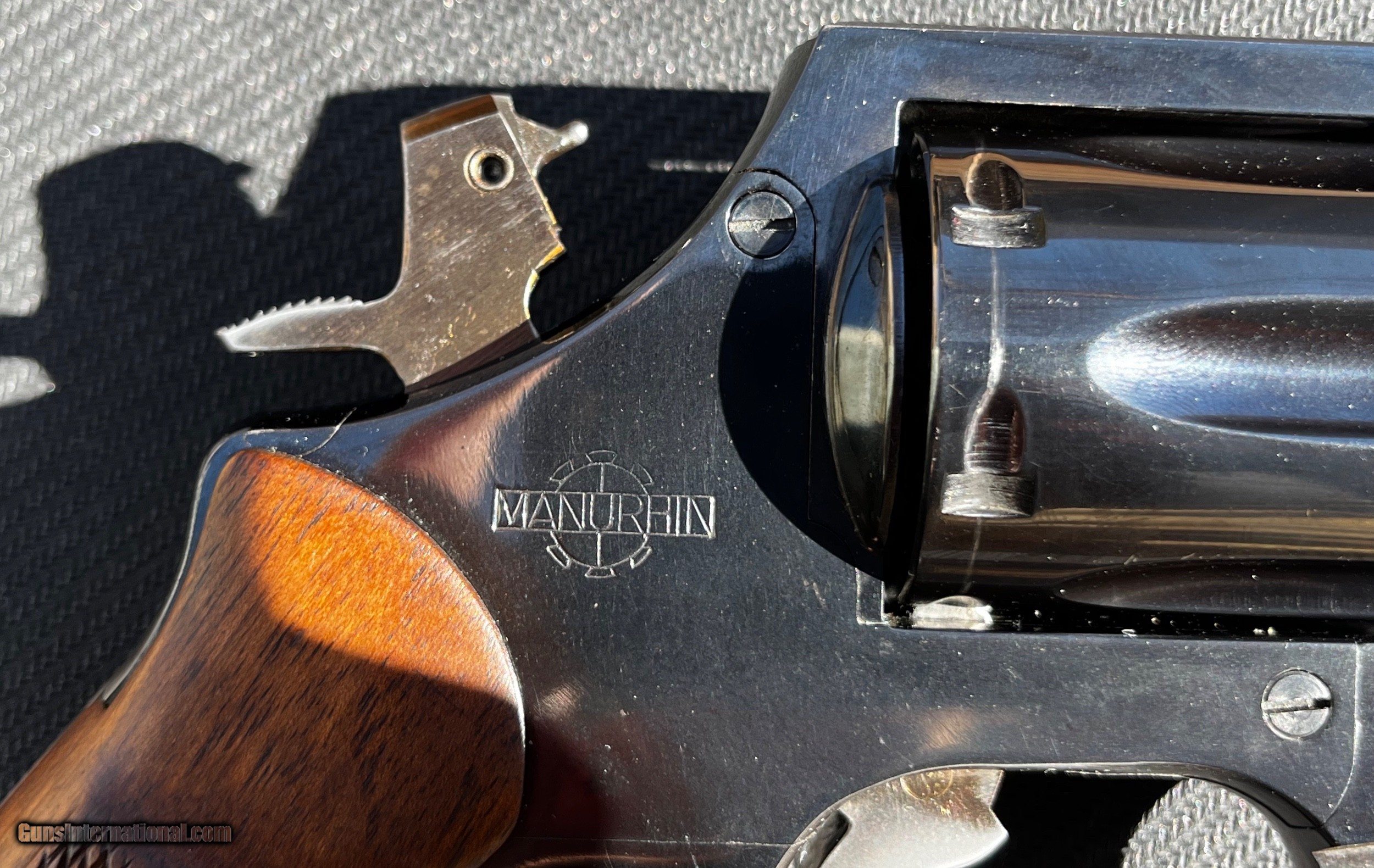 Description: Selling a 4in Manurhin MR73 police with slim wood "service" style grips. It has "MR73 Cal .357 Magnum'' marked on the right side (rather than the left), the serial number is on the bottom of the grip (rather than above the cylinder) and a texture is machined into the metal portion of the grip (normally this part is smooth) indicating this is an early production example made in Mulhouse (rather than Saint-Bonnet-le-Château where all production is currently done). This "Police'' model has been discontinued for 30 something years and was never imported into the US in an official manner. What makes it different from other models of the MR73 is that It has fixed "gutter" style sights with an anti snag low profile front sight post and a lanyard loop. These features are exclusive to this model of the MR73 making it a rather interesting collectors piece. Considering that this gun was a police trade-in, it remains in remarkably good condition. Although with that being said it is no safe queen, showing wear around the cylinder and on the trigger's strawing. It also has a few scratches with a prominent one located in front of the ejector rod. However the internals of the gun are in near perfect working condition, the pictures speak for themselves. This was made before Beretta started importing MR73s and is thus discretely marked "TEXIMP FORNEY TX" on the bottom of the frame next to the trigger. Insured shipping to the lower 48 $100, Alaska and Hawaii may be more, no sales to California. SOLD Handgun Caliber: .38 Special, .357 Magnum Manufacturer: Manurhin Model: MR73 Police Serial Number: C9151 Barrel Length: 4in Condition: Very good |