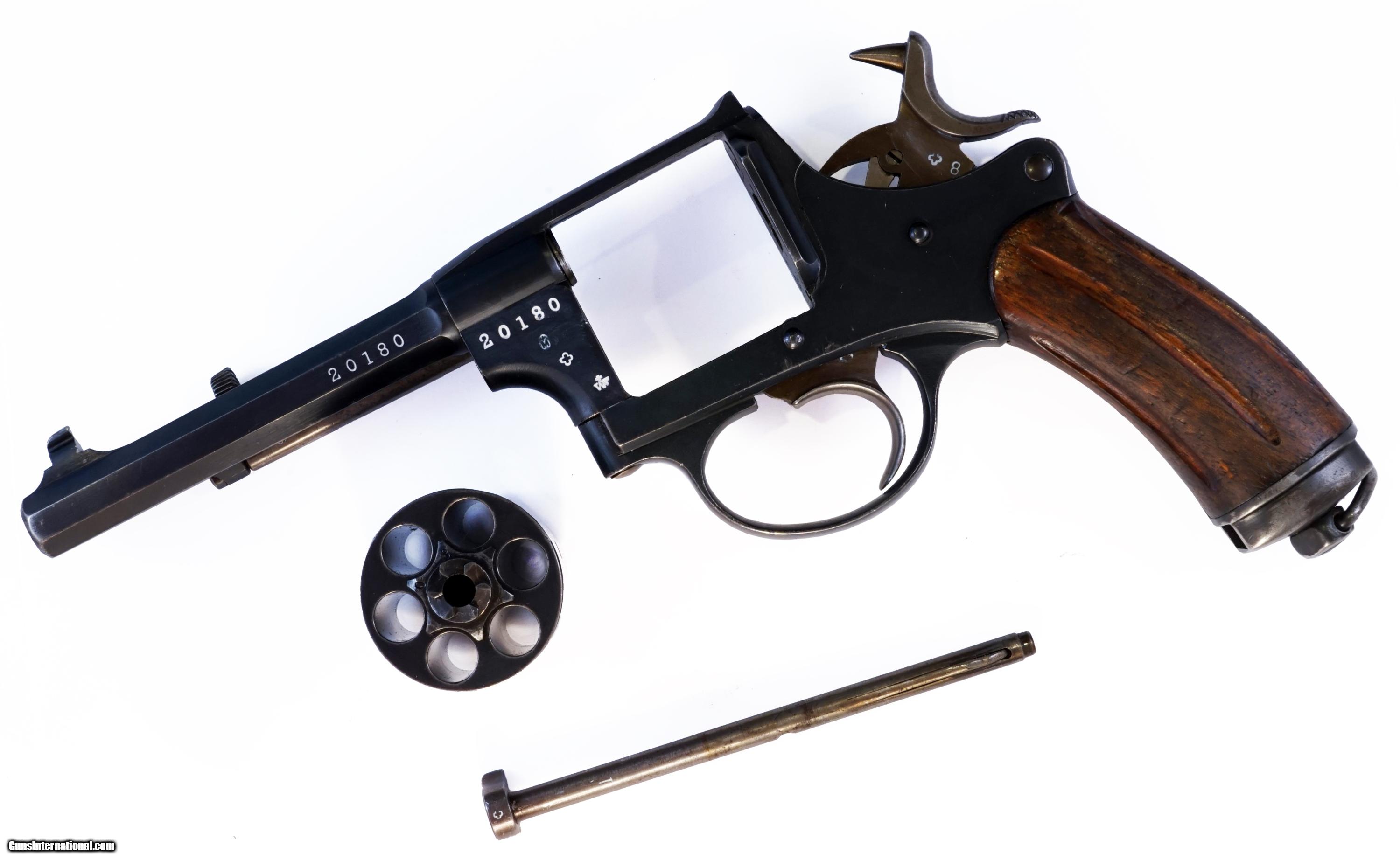 Description: Inv. 5806 Swiss (Schmidt) Mdl. 1882/1929 Ordinance Revolver. Cal. 7.5mm, Ser. 201XX. Magnificent condition, with intricate Swiss engineering and machining. This beauty retains about 90-95% of the original factory matte blue finish.. The bulk of the loss is the usual muzzle and sharp edge silvering. There is no rust, pits, flaking or scratches anywhere on the gun. Other than the unavoidable hairline cylinder drag ring. The strawed parts are also 95+%. Be advised that this gun is not marked with the usual "P" stamp, meaning it was never designated for private sale and therefore less common. All numbers match, with the exception of the cylinder pin, which may indeed be an assembly number. The wooden grips found only on the later models are in great condition with more than 85% of the original finish. They have no chips dents or splits. The recoil shield and force cone show very minimal use. The chambers are bright and the bore likewise. The rifling is razor sharp with just the vaguest hint of graying. A really beautiful example of Swiss design and machining and a real asset to a military pistol collection...***REDUCED***$795***REDUCED*** To purchase this firearm or if you want to request more information contact us at: Email ckgunsymail Phone 201-512-0002 Cell 201-575-6838 FAX 201-215-4759 We accept most major credit cards. Prices shown are Discounted 3% for Cash or Check. The buyer must be familiar with all the laws governing the purchase and the ownership of firearms in their own city and state. The Yankee Armorer, Inc is not responsible for any failure to comply with or observe these laws. The Yankee Armorer, Inc will only ship after full payment and receipt of all required documents. Shipping: Add $35.00 for handguns, $45.00 for long guns. New Jersey buyers are subject to a 7% sales tax. The Yankee Armorer, Inc offers a 3 day inspection period with full refund upon return of intact firearm and in the original condition. The Yankee Armorer, Inc offers a no interest lay away program - 25% down; 25% in 30 days; 25% in 60 days; and full payment in 90 days. Any violation of this policy is subject to restocking and forfeiture of all payments. Any variation from this policy must be agreed to in advance. Unshipped Cancelled sales are subject to a 20% restocking fee. Be advised that all firearms sold by The Yankee Armorer, Inc. or the Gun Exchange, LLC (SELLER) are sold as collector’s items. They have not been fired or tested for safety and must be examined by a license gunsmith prior to use. By purchasing any item from the (SELLER), you are agreeing to hold the (SELLER) free from any damages or lawsuits of any nature. Any item left for transfer or storage will be charged to $25.00 per month, per item from the day of its receipt. Any variation from this policy must be agreed to in advance. Store hours 10:00 am to 5:00 pm Tuesday -Saturday. It's always best to call for appointment. Store 201-512-0002, cell 201-575-6838. SOLD Curio/Relic: Yes Manufacturer: Waffefabriken Bern Model: Swiss Mdl 1882 / 1924 Serial Number: 201XX Caliber Info: 7.5mm |