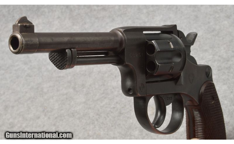 Description: This Model 1929 revolver was manufactured in the Eidgenossische Waffenfabrik Bern (E.W. Bern) Swiss federal armory and remains in good condition, overall. The Model 1929 is an improved version of the Model 1882 and was designed by Colonel Rudolph Schmidt for the Swiss military. It has better ergonomics and was manufactured with a higher grade of steel. 7.5mm SOLD Metal Condition: Shows good factory finish with minor marks and age-appropriate brown patina. Bore Condition: Very Good Barrels: 4 1/2 Triggers: Factory Blue Curved SA/DA Stock Dimensions: LOP 3 1/2 Weight: 27 oz. Sights: Factory blade front; Fixed rear Item Location: West Chester, OH |